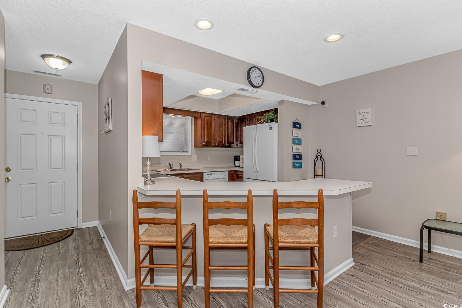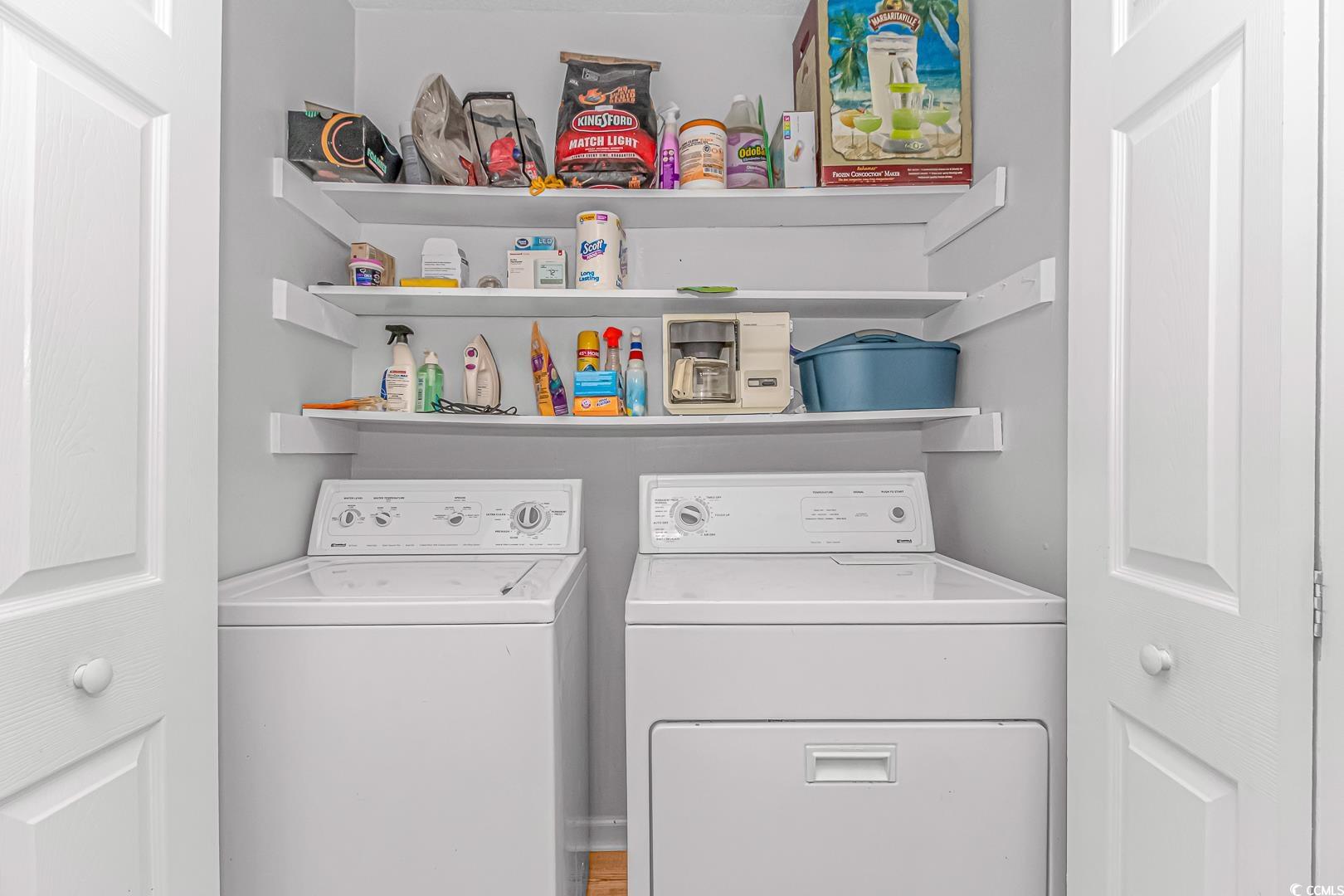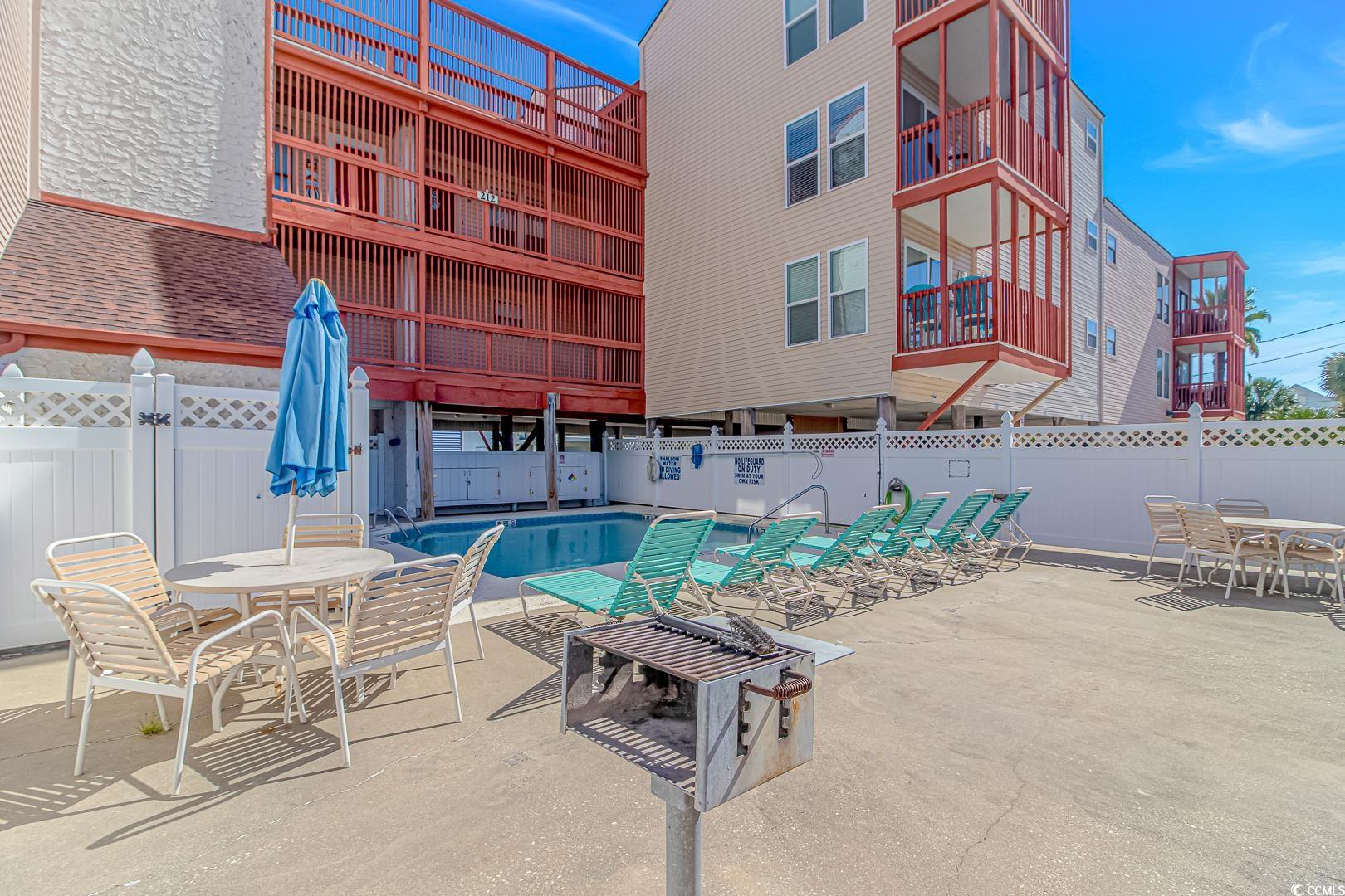 Location location location! Welcome home to this two bedroom, two bath beauty just one block from the beach in Cherry Grove. Sit on your screened balcony and listen to the ocean while you sip your morning coffee. This is an end unit in an elevator building - no hauling groceries and luggage upstairs! This home is move in ready; it comes fully furnished so just bring your sunscreen and flip flops It even includes the washer and dryer. Easy care LVP flooring throughout. HVAC just replaced in 2023. There's an exterior storage closet for all your sandy beach toys and also a private, gated pool and grilling area on the property. Don't miss this opportunity to be this close to the beach, schedule your private showing today!
