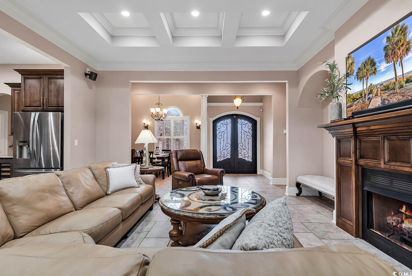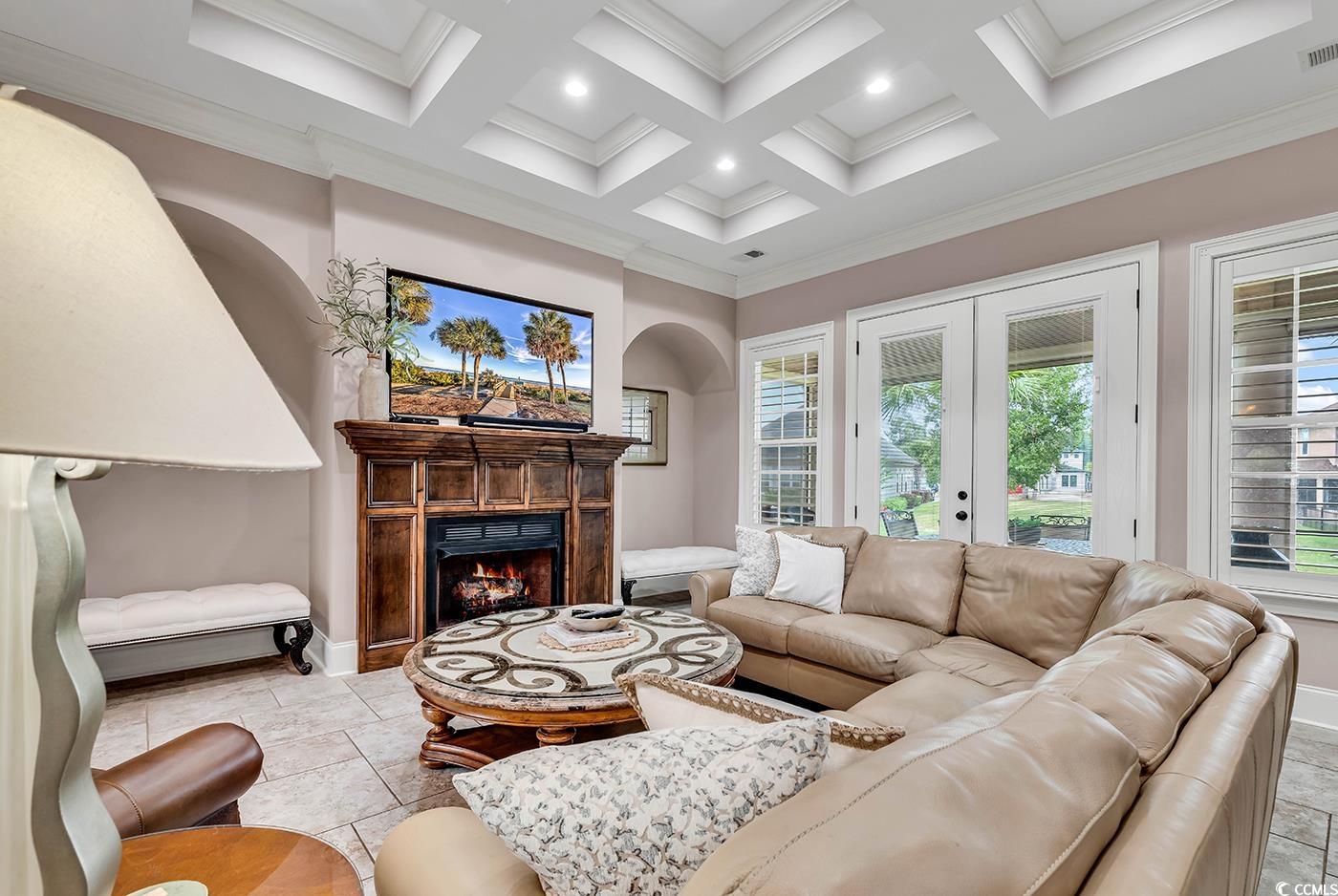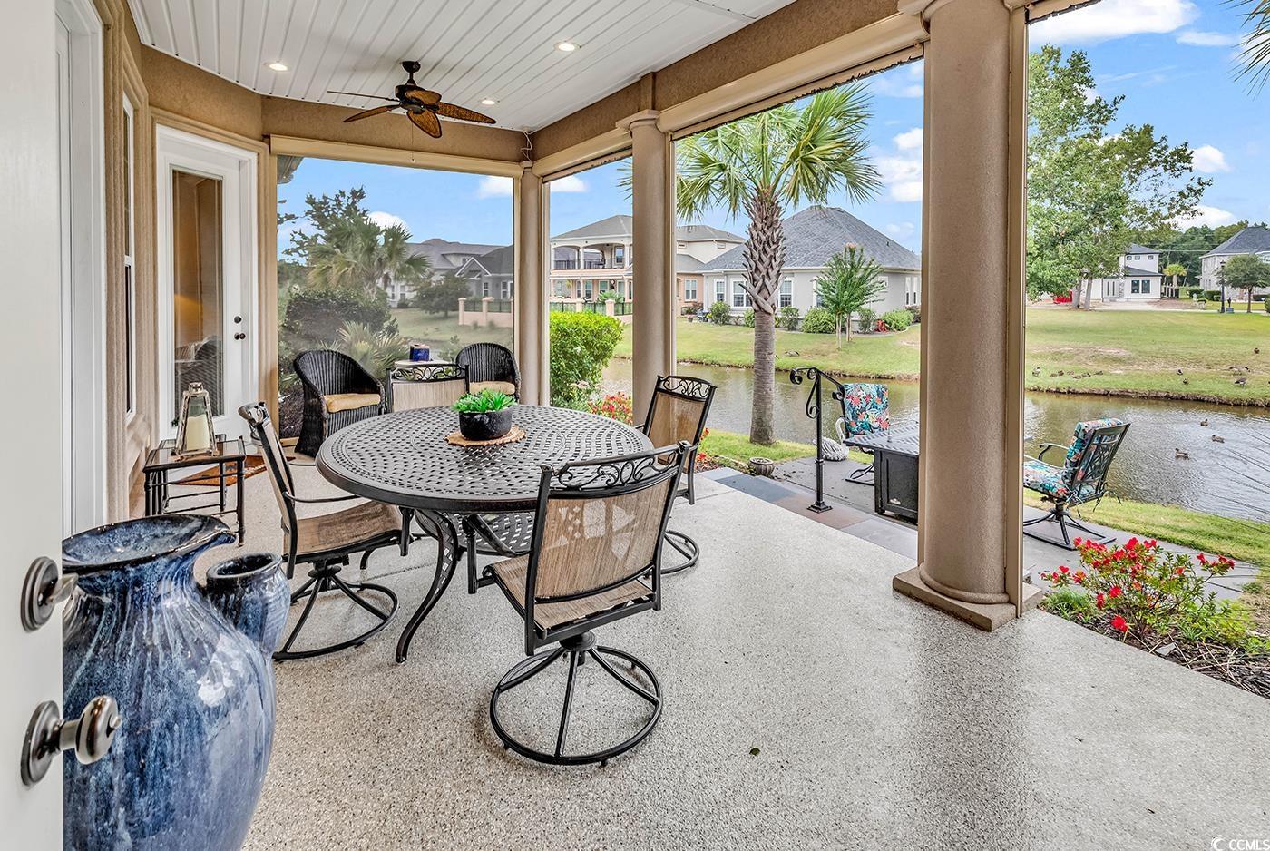 Welcome to this stunning, custom built four bedroom home with an additional home office, located in the highly sought after gated community of Carolina Waterway Plantation. With over 2500 ft. of luxurious living space this residence is thoughtfully designed to offer both style and comfort. As your approach, youll be greeted by a grand entry featuring custom double doors that set the stage for the elegance that awaits inside. Step into a spacious open concept layout where warmth meets luxury. The living room features a beautiful coffered ceiling, creating an air of sophistication while the gas fireplace offers a cozy ambience for relaxing evenings. The seamless flow from the living room area to the kitchen and dining room is perfect for entertaining. The gourmet kitchen is a highlight and was recently renovated featuring gorgeous rich granite countertops, custom cabinetry, offering plenty of storage, a large island perfect for gathering and the kitchen nook with expensive windows overlooking the serene water views. The first floor includes three generously size bedrooms, and a home office providing plenty of space for family and guests. Each bedroom is crafted with attention to detail, ensuring comfort and style. The main level luxurious master suite serves as a personal retreat, boasting, ample space, water views, and a spa like en-suite bath, complete with granite counters, custom cabinetry, and high-end finishes. Outdoors, a screen porch with retractable screens provides the perfect setting for enjoying the scenic, water views, and comfort and privacy, whether youre hosting guests or simply enjoying a peaceful morning coffee. This space adds a relaxing extension of the home. This property also features temperature controlled side load garage with custom epoxy floors, and garage door screens The well design, laundry room complete with additional storage, granite counters, and a wash sink provides functionality without compromising style. Every detail in this home has been carefully crafted from the luxury tile and wood flooring to the high-end fixtures and finishes throughout. Located in prestigious Carolina Waterway Plantation, the community offers an array of exclusive amenities-a well appointed clubhouse, Intracoastal Waterway boat access and storage as well as a dock and gazebo for enjoying the waterway lifestyle. With its prime location near dining and top rated schools, this home offers the perfect blend of luxury convenience and waterfront living.