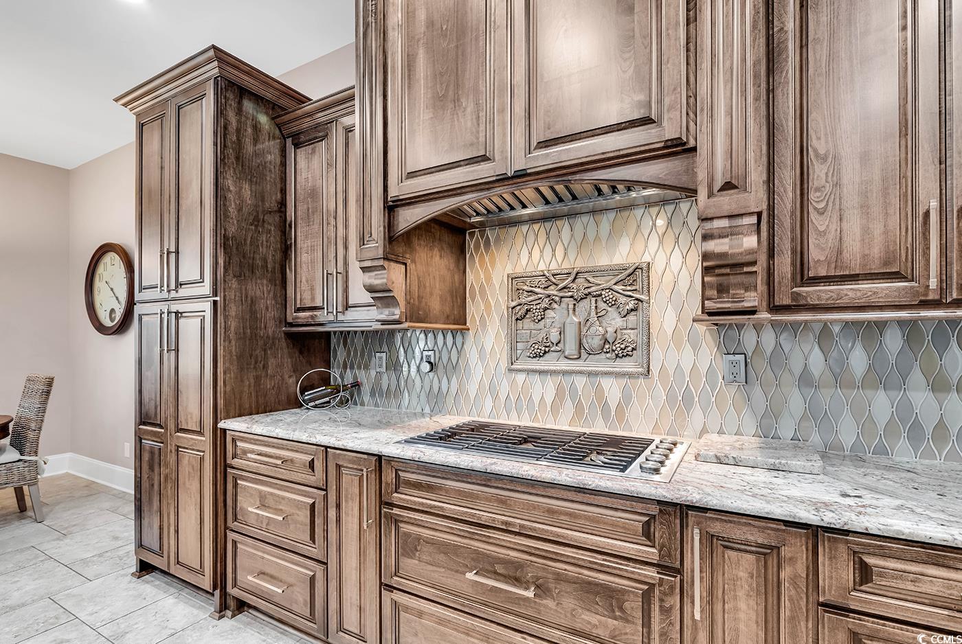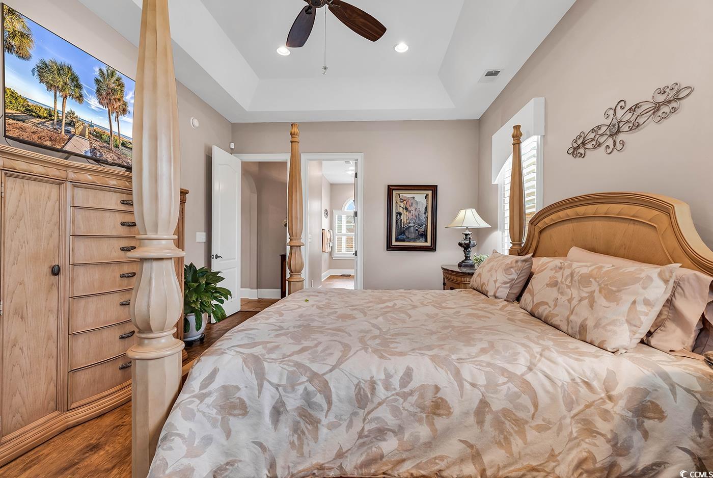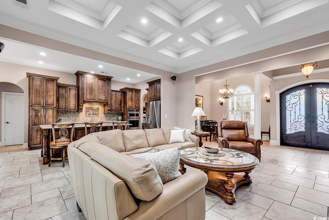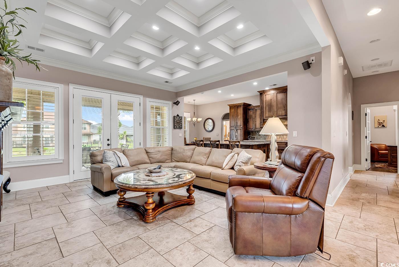 Welcome to this stunning, custom built four bedroom home with an additional home office, located in the highly sought after gated community of Carolina Waterway Plantation. With over 2500 ft. of luxurious living space this residence is thoughtfully designed to offer both style and comfort. As your approach, youll be greeted by a grand entry featuring custom double doors that set the stage for the elegance that awaits inside. Step into a spacious open concept layout where warmth meets luxury. The living room features a beautiful coffered ceiling, creating an air of sophistication while the gas fireplace offers a cozy ambience for relaxing evenings. The seamless flow from the living room area to the kitchen and dining room is perfect for entertaining. The gourmet kitchen is a highlight and was recently renovated featuring gorgeous rich granite countertops, custom cabinetry, offering plenty of storage, a large island perfect for gathering and the kitchen nook with expensive windows overlooking the serene water views. The first floor includes three generously size bedrooms, and a home office providing plenty of space for family and guests. Each bedroom is crafted with attention to detail, ensuring comfort and style. The main level luxurious master suite serves as a personal retreat, boasting, ample space, water views, and a spa like en-suite bath, complete with granite counters, custom cabinetry, and high-end finishes. Outdoors, a screen porch with retractable screens provides the perfect setting for enjoying the scenic, water views, and comfort and privacy, whether youre hosting guests or simply enjoying a peaceful morning coffee. This space adds a relaxing extension of the home. This property also features temperature controlled side load garage with custom epoxy floors, and garage door screens The well design, laundry room complete with additional storage, granite counters, and a wash sink provides functionality without compromising style. Every detail in this home has been carefully crafted from the luxury tile and wood flooring to the high-end fixtures and finishes throughout. Located in prestigious Carolina Waterway Plantation, the community offers an array of exclusive amenities-a well appointed clubhouse, Intracoastal Waterway boat access and storage as well as a dock and gazebo for enjoying the waterway lifestyle. With its prime location near dining and top rated schools, this home offers the perfect blend of luxury convenience and waterfront living.