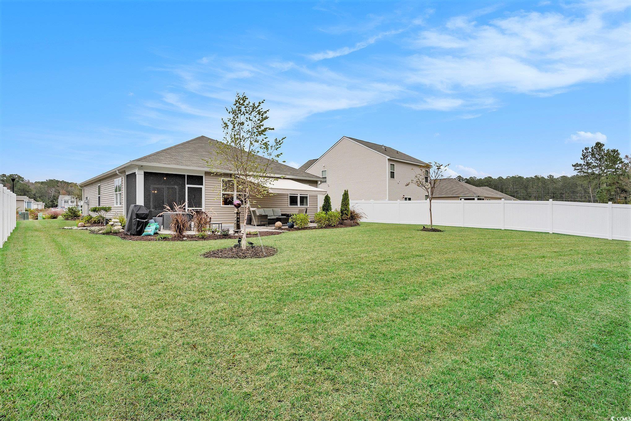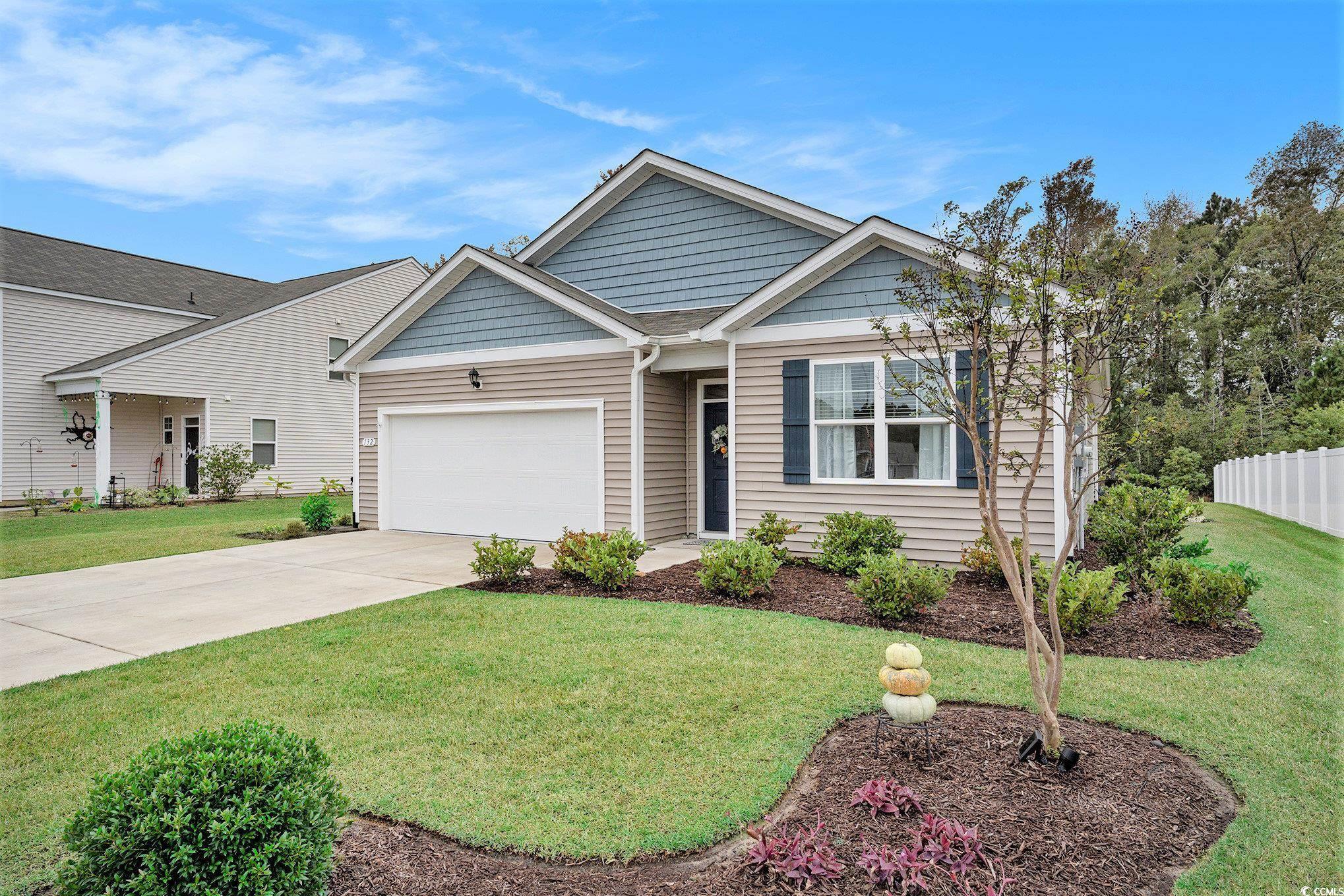 This beautiful 4-bedroom, 2-bath home offers over 1,700 sq ft of open and inviting living space. Built in 2023, it features a bright, airy floor plan with 9-foot ceilings and large windows that fill the home with natural light. The kitchen is a showstopper, showcasing granite countertops, stainless steel appliances, a spacious island, and upgraded maple cabinetry with custom built-in pull-out shelves for added convenience and storage. The dining area is enhanced with extra lighting and windows, creating the perfect space for family gatherings or entertaining. Custom wood beam accents and board-and-batten detailing add warmth and farmhouse charm throughout. The private owners suite includes a walk-in closet and a beautifully designed ensuite bath. Enjoy peaceful wooded views from the extended patio perfect for relaxing or hosting outdoors. Additional upgrades include a full irrigation system, pet-safe porch screening, oversized gutters, painted garage walls and floor, a painted garage door, and natural gas appliances throughout. Move-in ready and better than new! Ideally located just minutes from Hwy 90, 22 & 31, shopping, dining, and the beach.