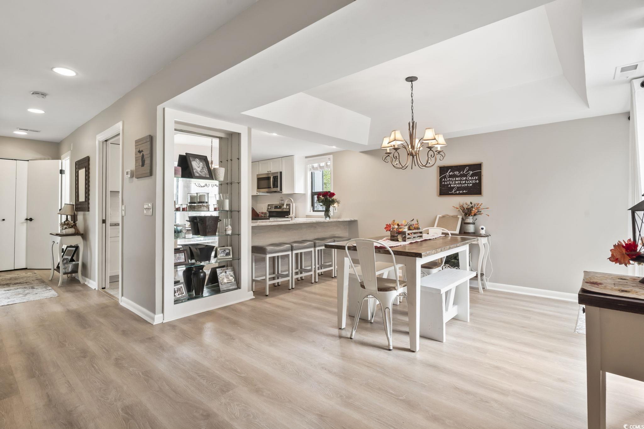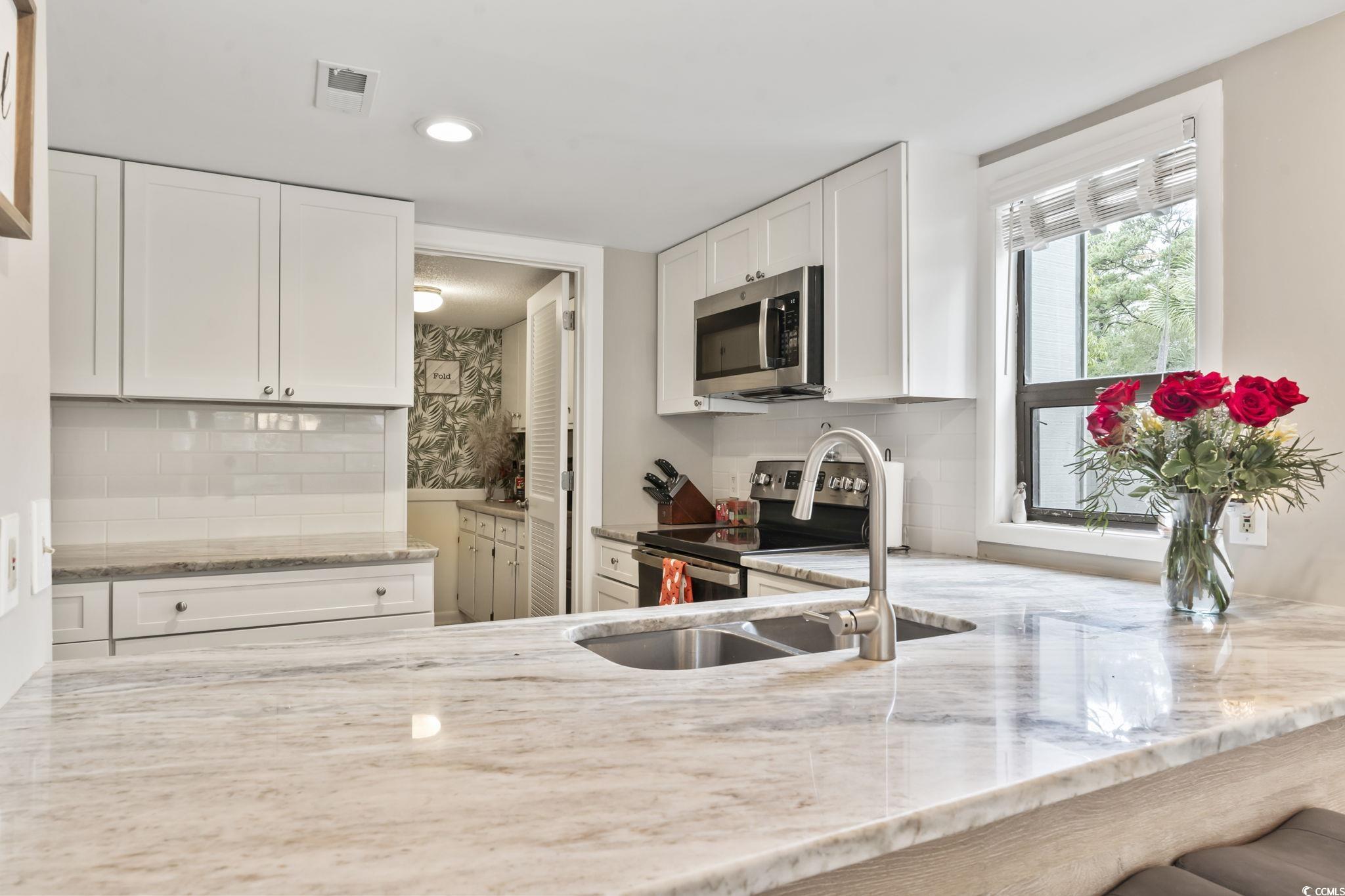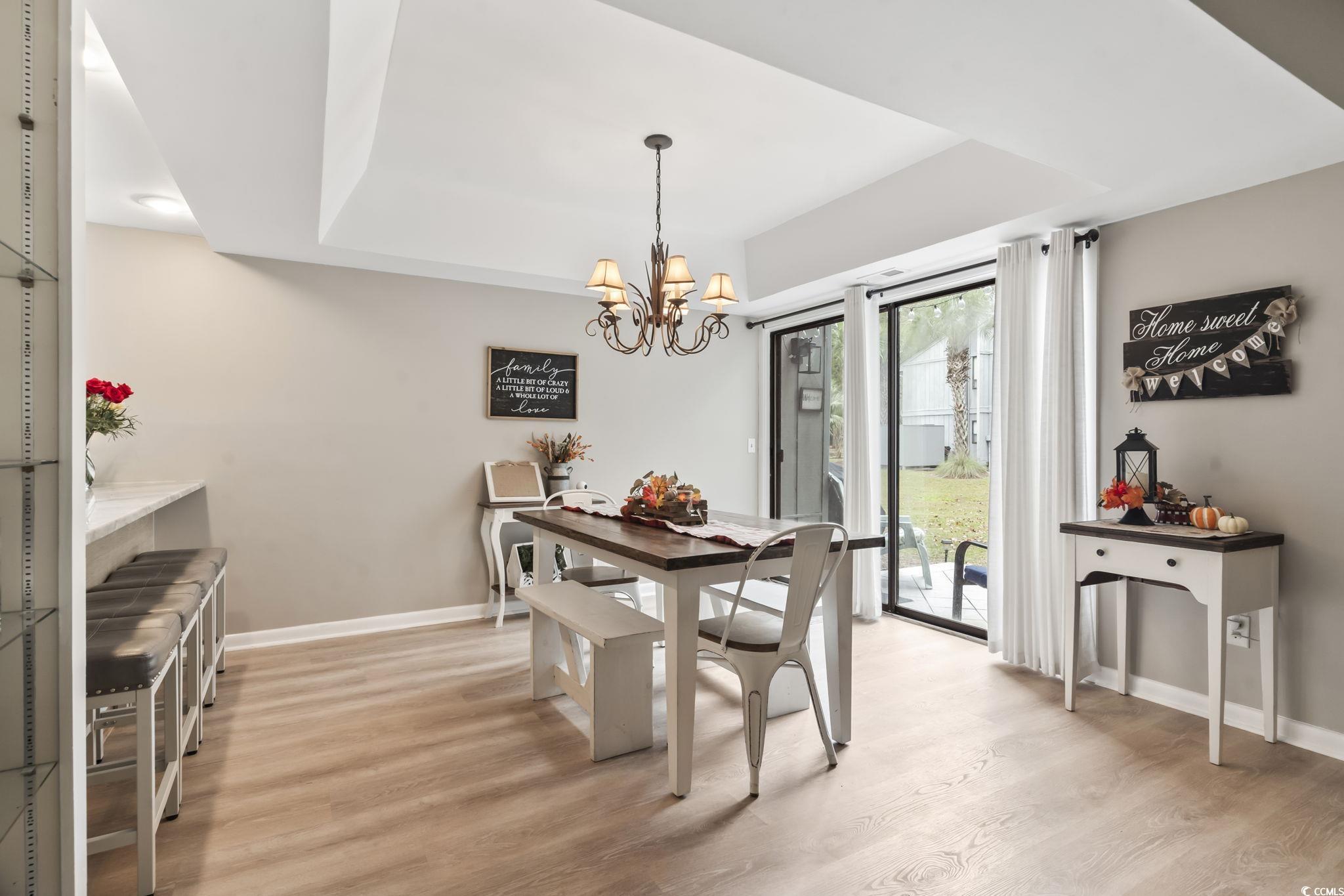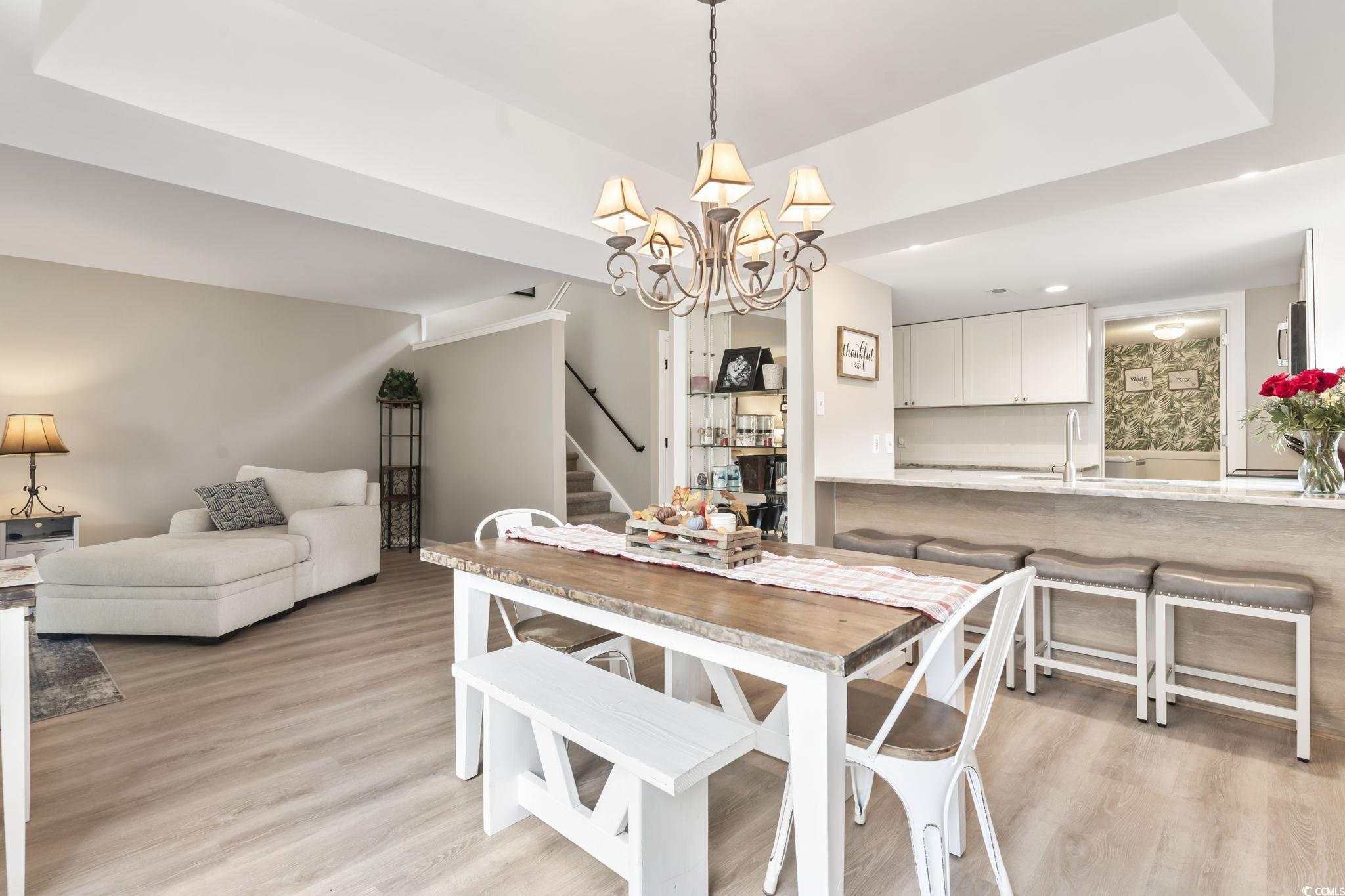 Nestled in the welcoming Salt Marsh Cove community, this beautifully refreshed three-bedroom end unit offers the ultimate Lowcountry retreat where marsh life living meets coastal elegance. Freshly painted throughout, the home features an inviting open-concept main level flooded with natural light from two large sliding glass doors that seamlessly connect to your private patioyour front-row seat to marsh wildlife; perfect for morning coffee or evening relaxation. The bright, updated kitchen boasts white cabinetry, tile backsplash, and solid countertops, while a charming wallpapered laundry area and convenient half bath round out the first floor. Ascend to the upper level where the generous primary suite awaits with its own balcony and a spa-like en-suite bathroom featuring a walk-in shower. Two additional bedrooms and a full bath provide plenty of space for friends and family to visit and enjoy the coastal lifestyle alongside you. Recent enhancements including new upper-level and stair flooring, updated mirrors, fixtures, and hardware throughout, blend seamlessly with ample storage to create a home that's both stylish and supremely functional. Brand new windows and doors are set to be replaced in 2027 (already paid for!) As a Salt Marsh Cove resident, you'll enjoy resort-style amenities including a community pool, clubhouse, (2026) creek dock for paddling and fishing adventures, and boat storage for exploring the waterways. Best of all, you're mere moments from Pawleys Island's sugar-sand beaches, award-winning restaurants, world-class golf courses, and abundant outdoor recreation. This is your chance to live where the marsh meets the oceanschedule your showing today and discover your coastal haven!