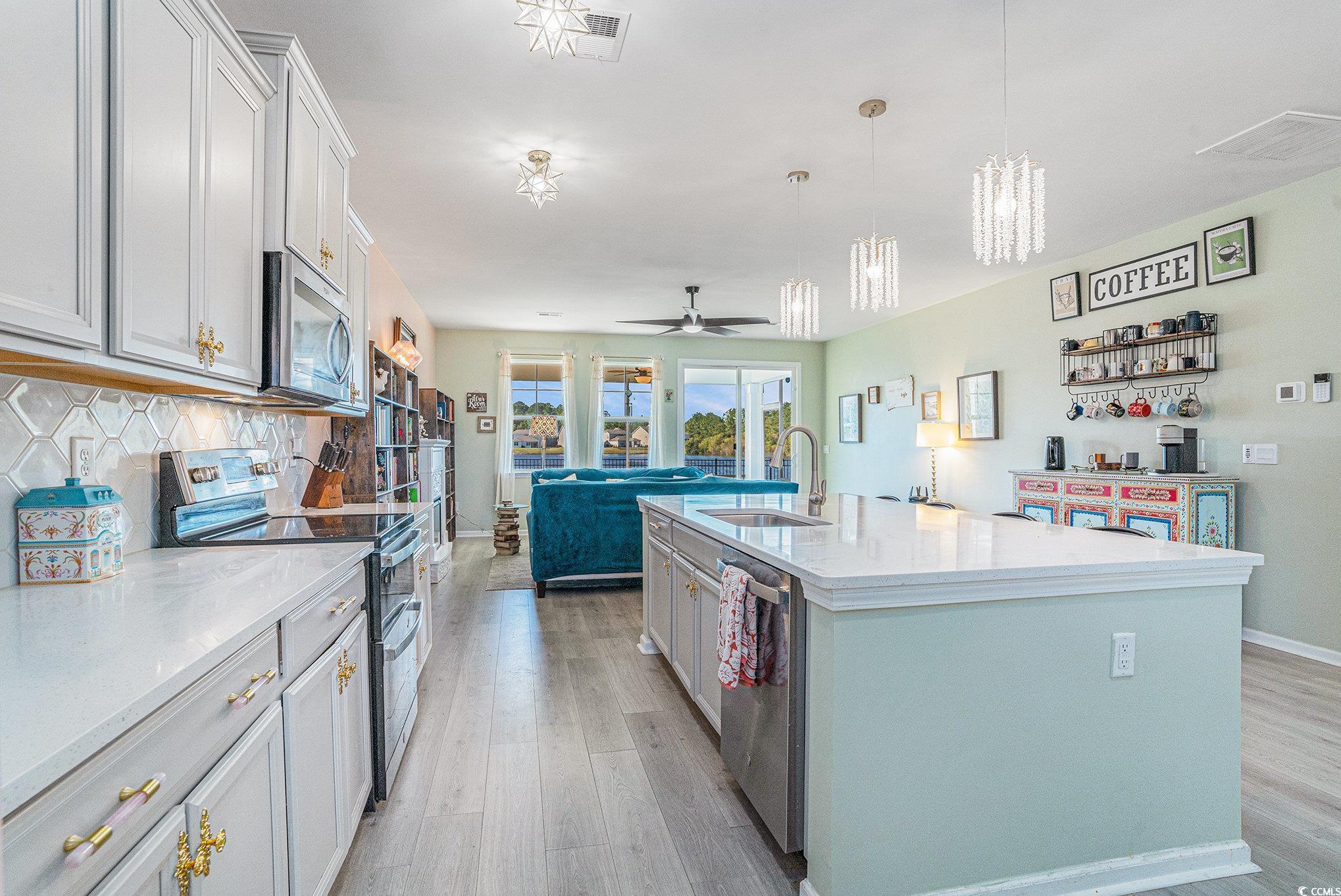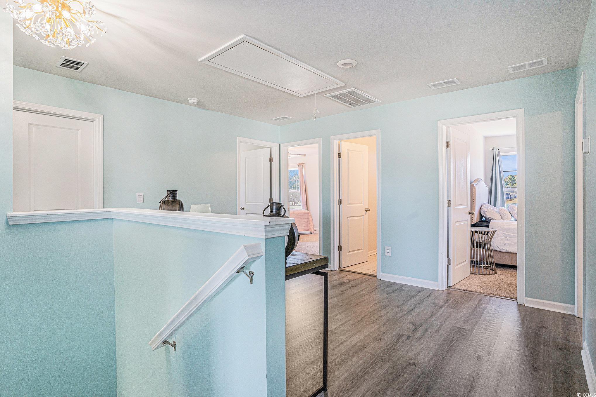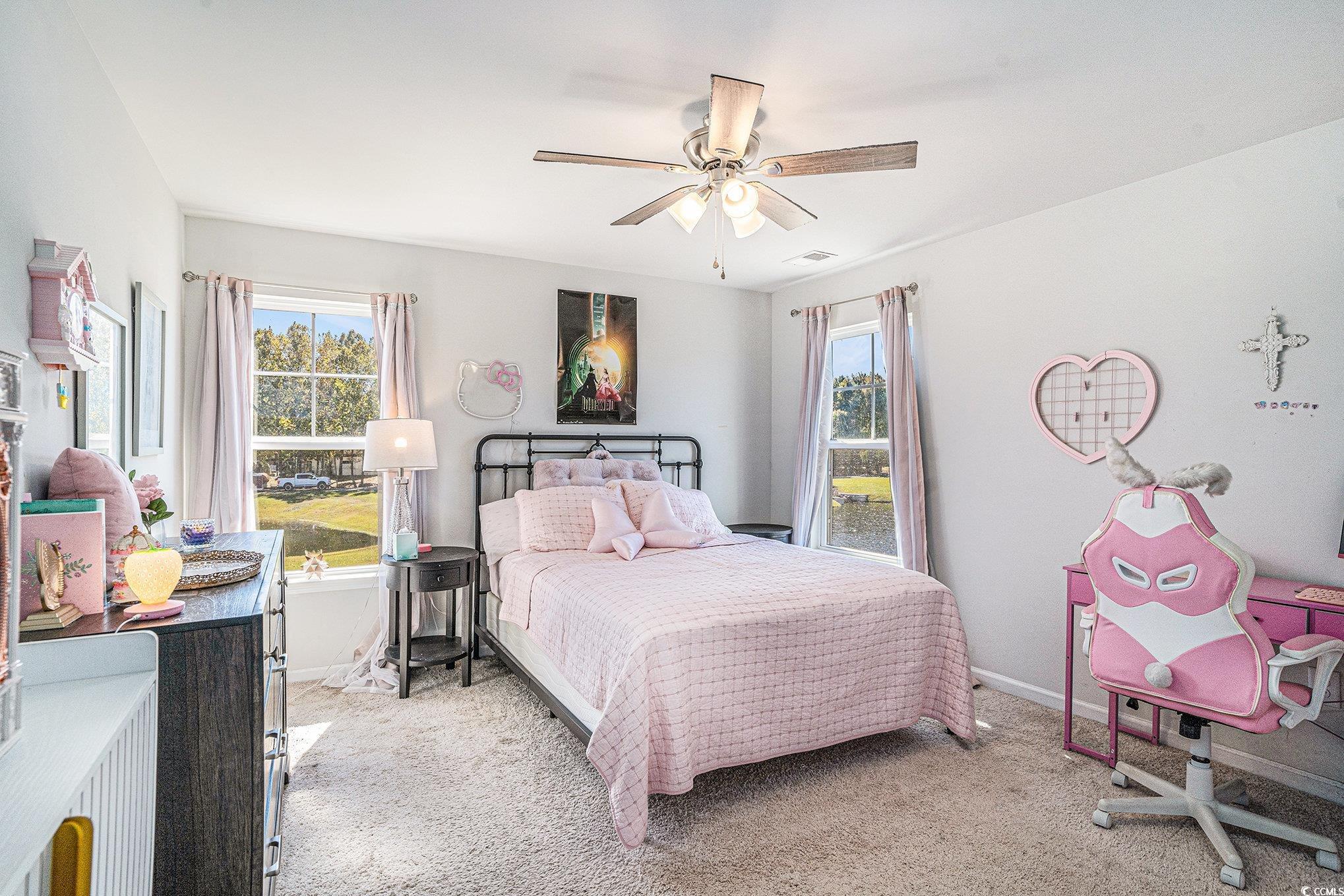 Welcome home to 599 Pier Ct, nestled in the vibrant Little River community just 8 minutes from North Myrtle Beach, main street, and NMB shopping, dining, sports complex and more. This spacious residence offers a comfortable blend of open-living and private retreats, with over 3,000 sq ft of thoughtfully styled living space. Step inside to find a large, welcoming foyer that flows into a generous great room, anchored by an expansive kitchen featuring a central island and plenty of cabinet and counter space ideal for both everyday living and entertaining. The adjacent formal dining area invites lively gatherings or quiet dinners at home. The first-floor primary suite offers a sizeable walk-in closet and an en-suite bath, providing a peaceful sanctuary away from the main living zones. Upstairs youll discover 4 additional bedrooms, 2 full bathrooms, and a loft area perfect for a TV lounge, play space, or home-office. Out back, a screened porch and fenced backyard set the stage for relaxed weekend afternoons and barbeques with friends. Backing up to a pond, you can fish from the yard. A community walking trail and golf cart trail allow route to Barefoot Landing. There have been a lot of upgrades made to the house, including the addition of solar panels. The home also comes with a two-car garage and convenient laundry on the main level. Located within a thriving neighborhood, this is the kind of place where memories are made, and life simply unfolds with ease. Come experience it for yourself.
