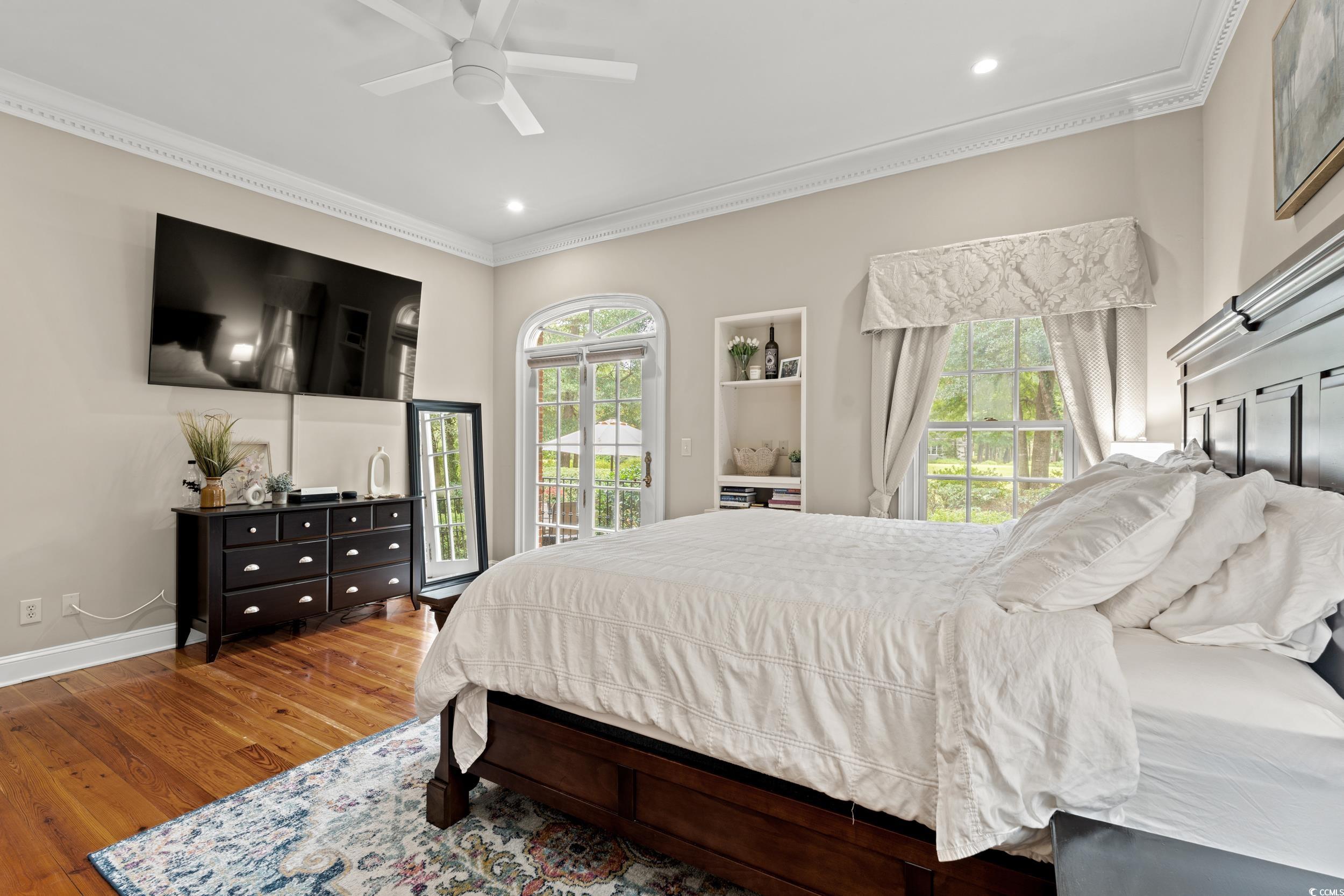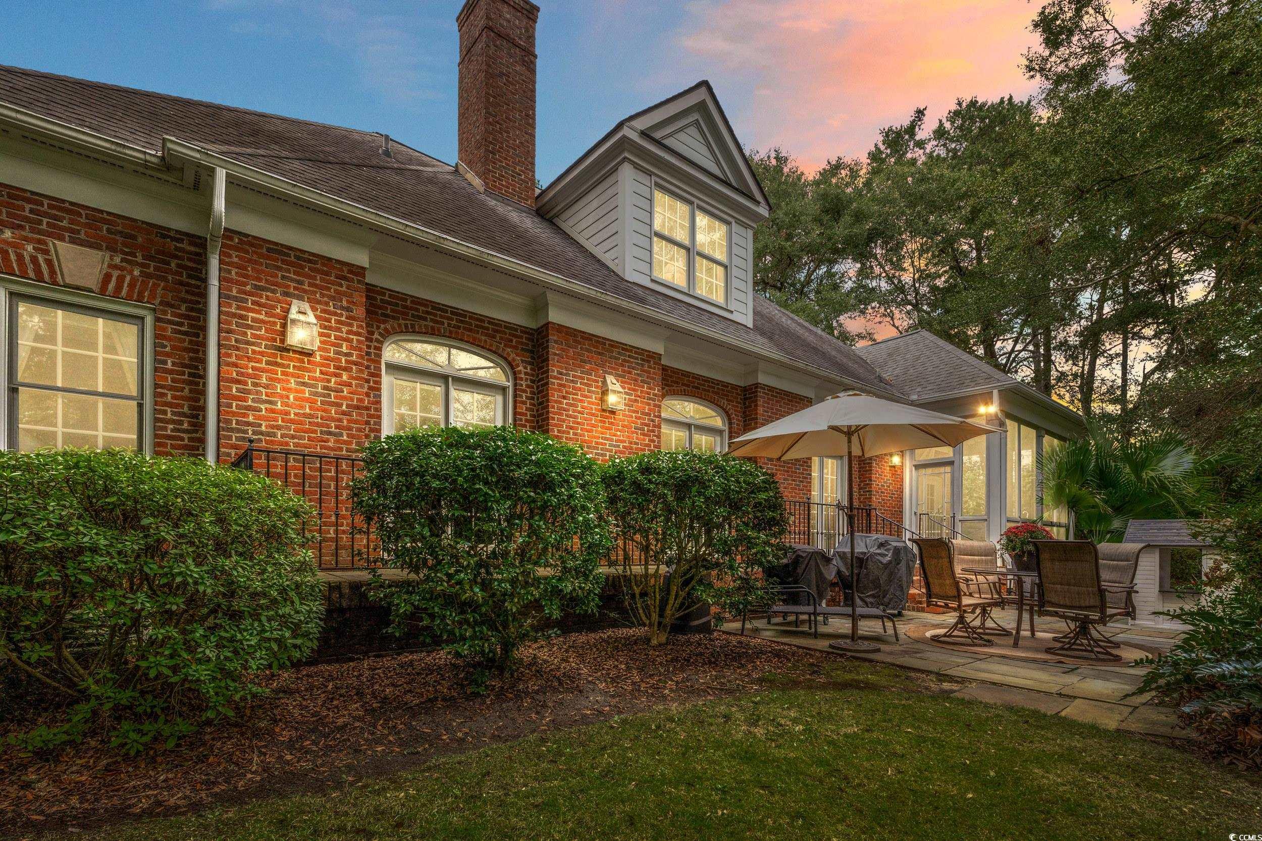 Tucked at the end of a quiet cul-de-sac in the renowned Richmond Hill section of Wachesaw Plantation, this all-brick home offers timeless design, thoughtful updates, and a prime setting overlooking the 11th tee of Wachesaw Plantation Golf Course. It's a rare opportunity to own in one of the area's most desirable gated communities! Inside, you'll find heart pine floors, high ceilings with crown molding, and fully renovated bathrooms. The main level features a spacious primary suite with a walk-in closet and a spa-like bath complete with a walk-in shower and standalone tub. You'll also find an inviting living room, a formal dining room, and a versatile flex room with custom built-insperfect for an office, playroom, or additional bedroom. The kitchen, finished with high-end details and generous workspace, is designed for both everyday living and entertaining, with a breakfast area that opens to the screened porch. Just off the kitchen is a spacious laundry room with a pantry and a storage closetideal for bulk groceries, cleaning supplies, and more. The oversized two-car garage has been converted into heated living spaceperfect for a gym, studio, or second family room. You won't miss the garage thanks to three large walk-in attic areas upstairs, providing exceptional storage. Also upstairs is an expansive guest suite with its own en-suite bath, creating the benefit of dual bedroom suitesone on each levelfor added privacy and flexibility for guests or multigenerational living. Another versatile room across the hall can serve as a bedroom, media room, or bonus space. Outdoor living is equally inviting, with a screened porch overlooking the beautifully landscaped backyard, complete with a fountain and fish pond, and plenty of space should you wish to add a pool. Whether enjoying morning coffee or hosting friends, it's a peaceful outdoor retreat. All of this is set within Wachesaw Plantation, a gated community known for its historic live oaks, championship golf course, and array of amenities. This unique home combines location, space, and qualitymaking it a true standout and a place you'll love to call home. Schedule your private showing today! Listing agent is related to the seller.