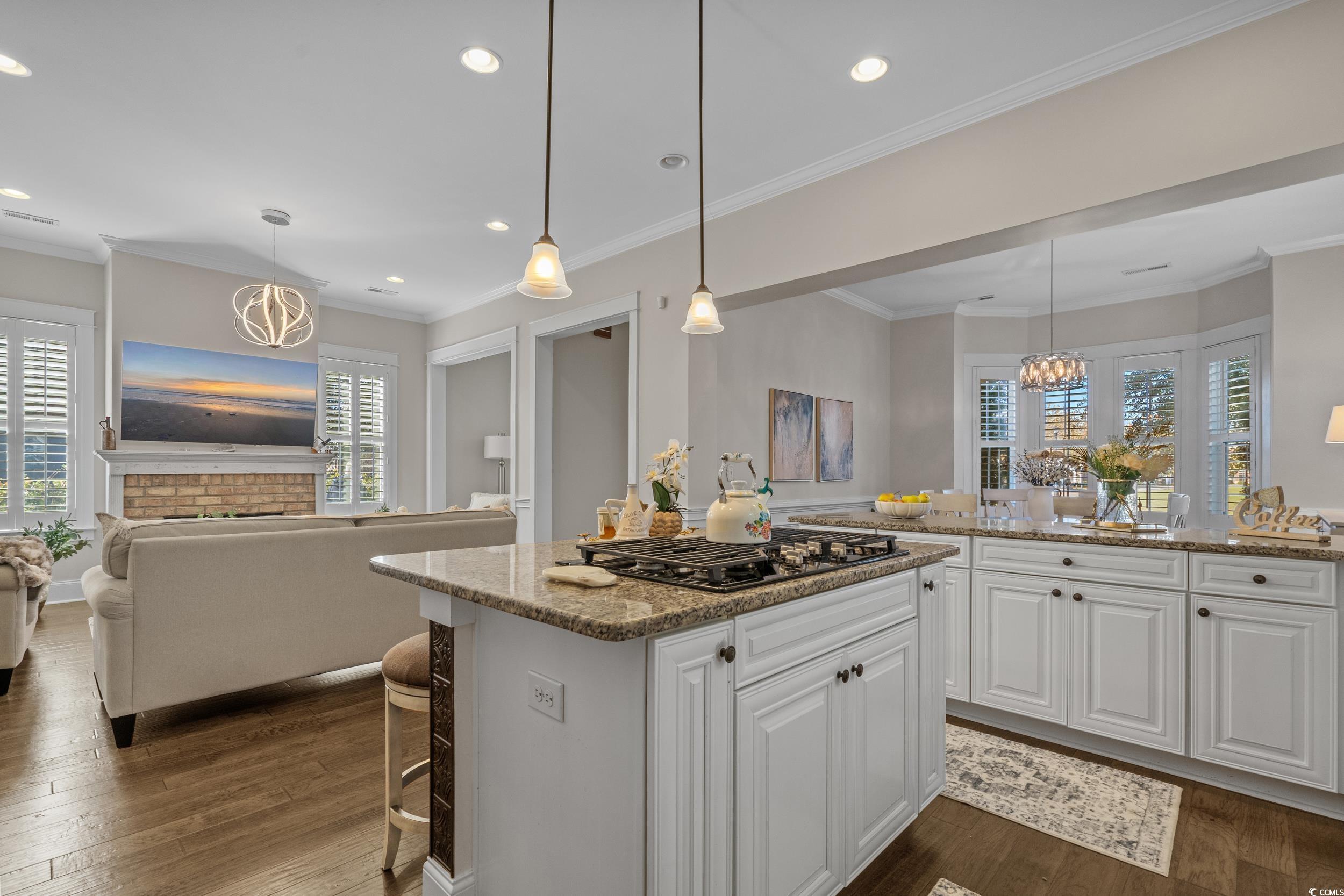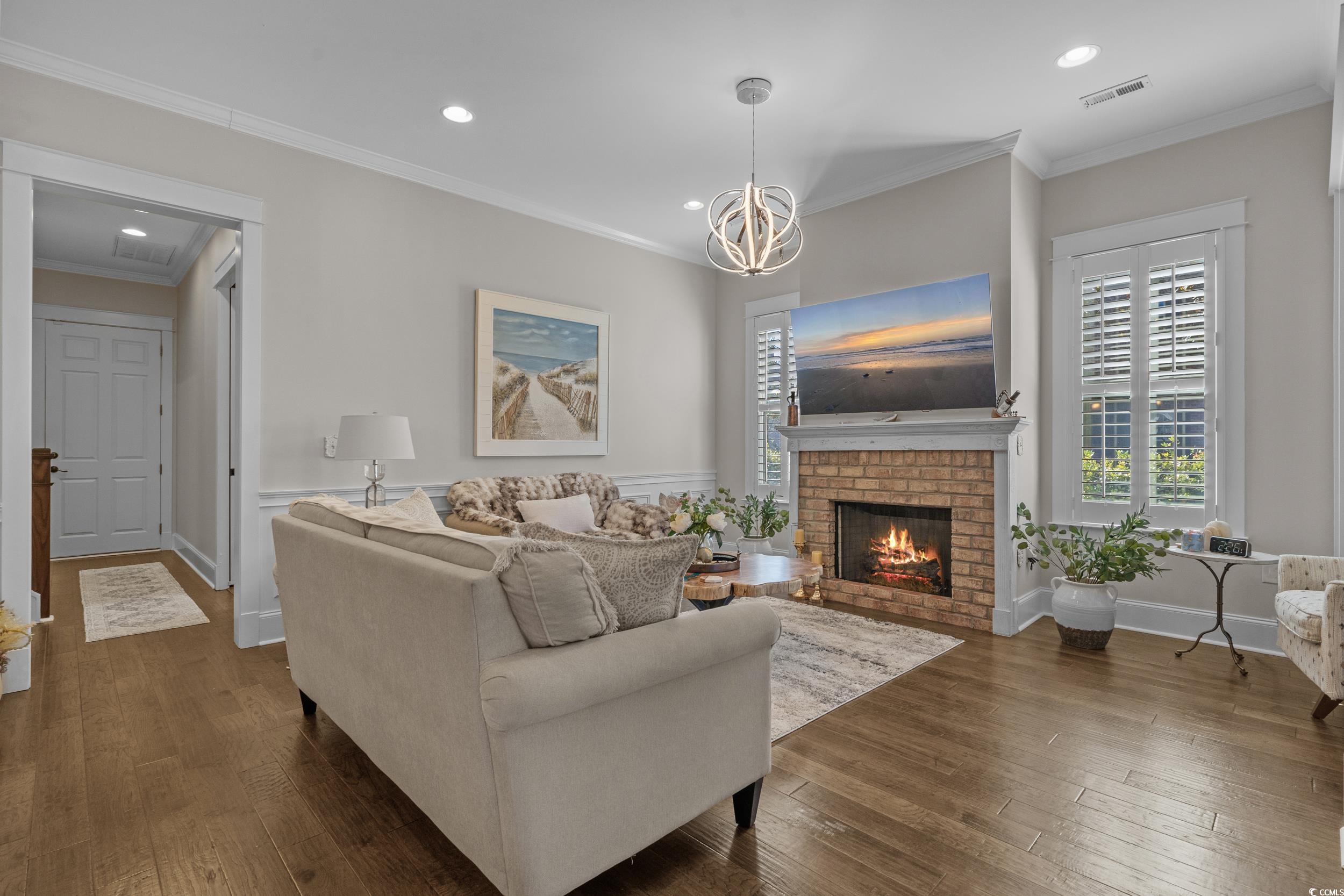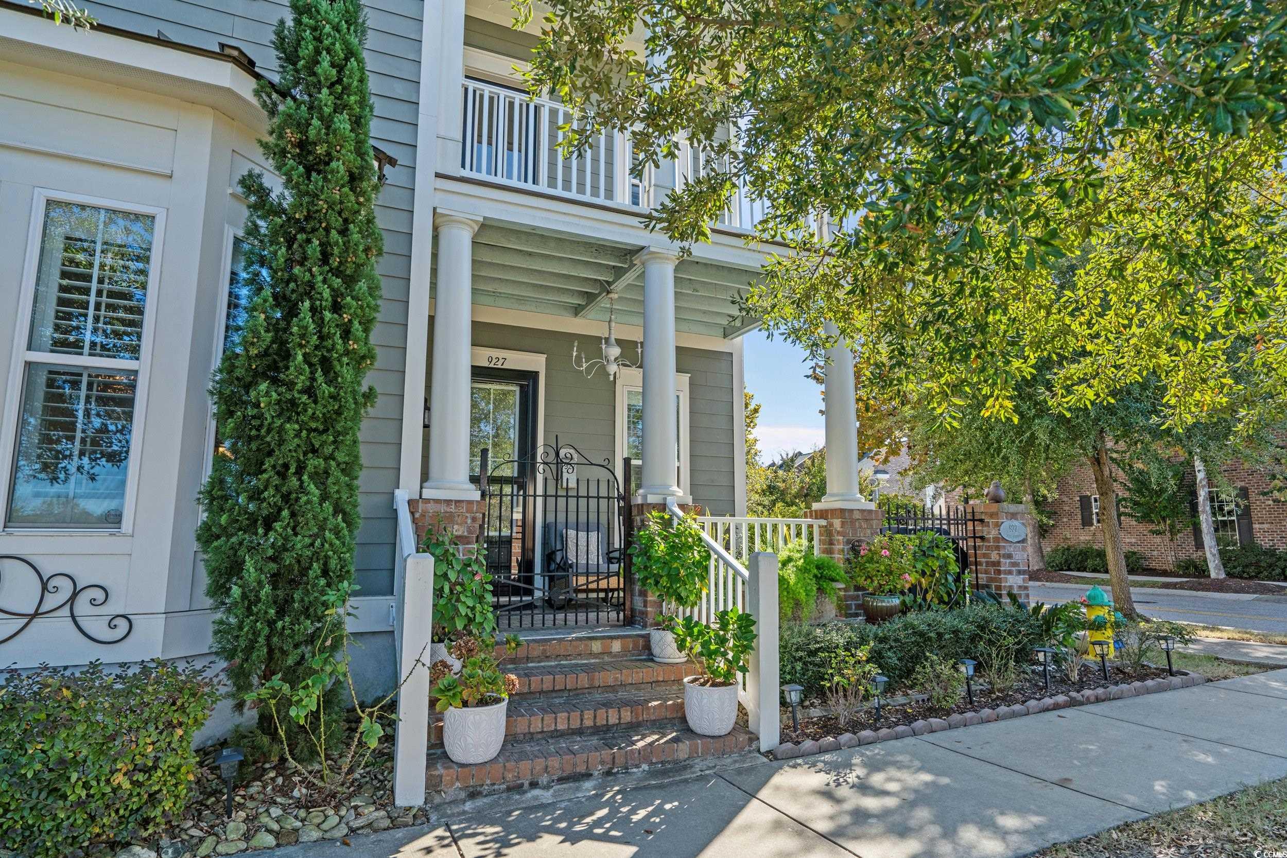 Welcome to the desirable Market Common district in Myrtle Beach! This stunning low country home boasts 5 bedrooms, one of which could be a dedicated office space, 3.5 bathrooms, a first floor bedroom ensuite and a primary bedroom on the second floor with its own balcony. The home also features a gas fireplace, high ceilings with crown molding, custom plantation blinds, wood floors, stainless steel kitchen appliances, 2 washer and dryer connections, a fenced in patio with pavers and a 2 car garage to showcase just part of its appeal. This home sitting in prime location, is just a short walk from parks, shopping, dining, and entertainment the Market Common has to offer. Some photos have been virtually staged. Don't wait, schedule your showing today!