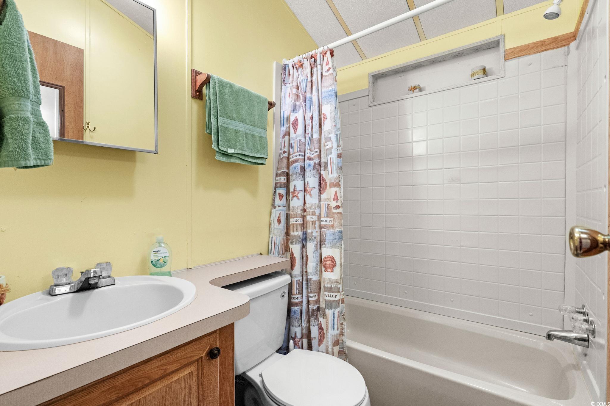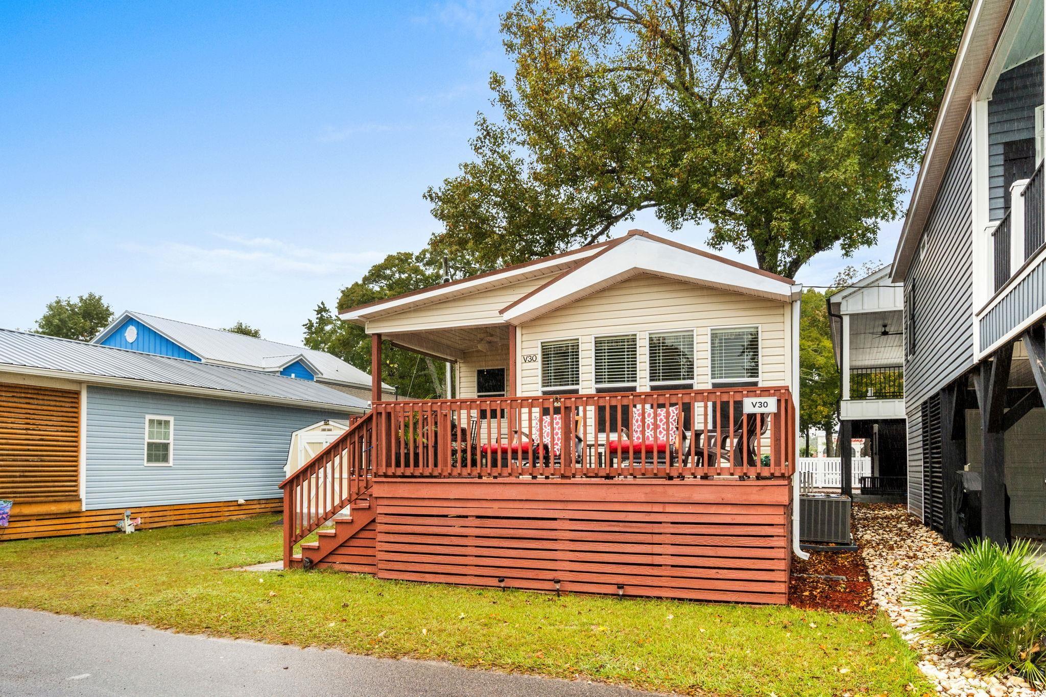 Welcome to your beach retreat located in the highly sought-after Ocean Lakes Family Campground. This well-maintained 2-bedroom, 2-bath home features a new roof and HVAC system installed in 2019. Enjoy the coastal lifestyle from the covered front porch, or relax on the open deck after a day at the beach. The home offers ample parking and is ideally situated on a quiet dead-end road, providing added privacy and peace. Just a short golf cart ride to the ocean, this property offers convenient access to all of Ocean Lakes award-winning amenities including indoor and outdoor pools, a lazy river, water park, mini golf, arcade, and 24-hour gated security. Ideal as a primary residence, vacation home, or rental investment.
