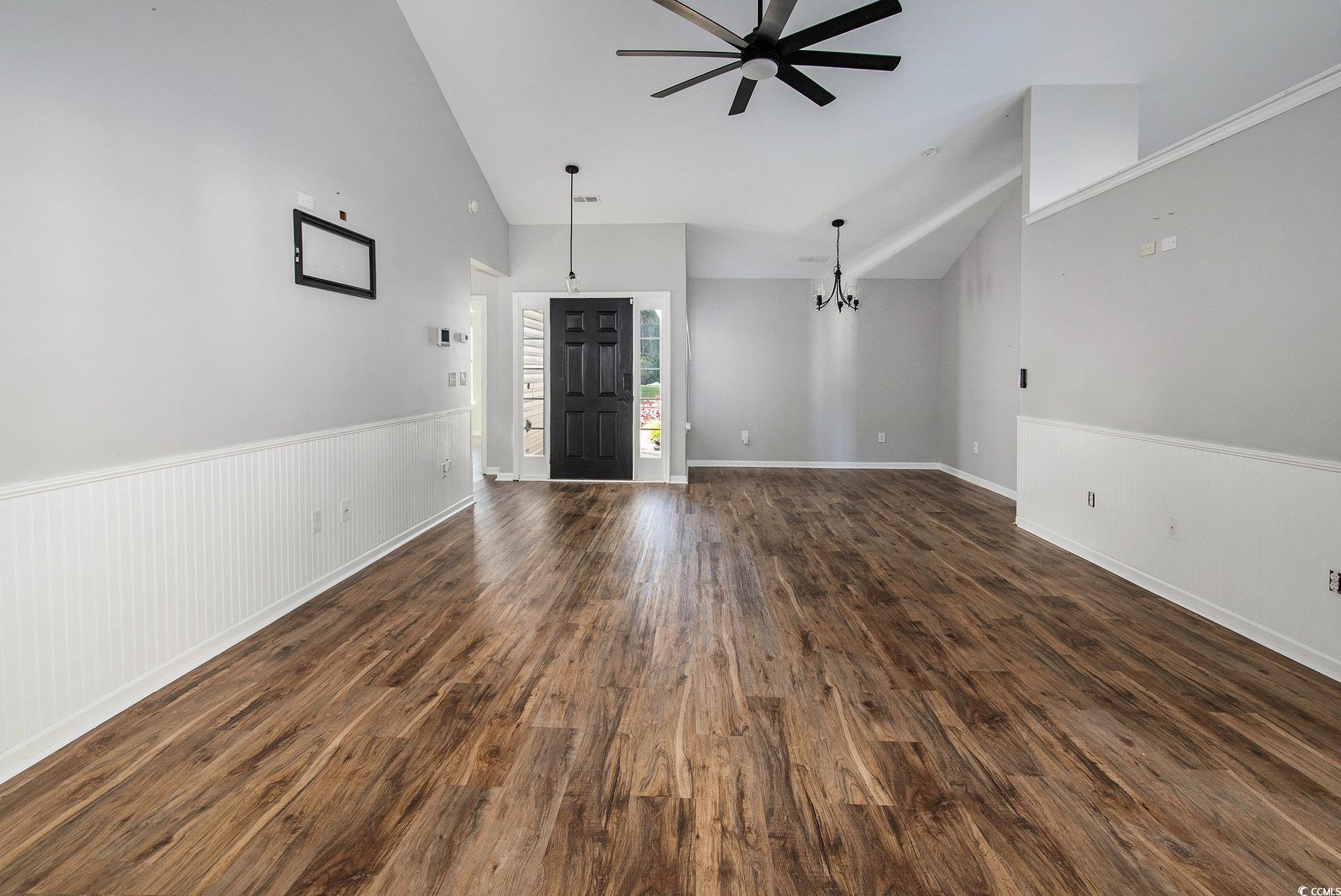 Welcome to this stunning 3 bedroom, 2 bath home in the sought-after Carolina Woods subdivision of Myrtle Beach! Thoughtfully updated throughout, this home blends modern comfort with stylish coastal charm. Step inside to find vaulted ceilings that create an airy, open feel across the main living area, complemented by updated lighting and fixtures that add a touch of sophistication. The kitchen is sure to impress with stainless steel appliances, a custom tiled backsplash, and contrasting cabinetry that perfectly balances warmth and elegance. The primary suite offers a relaxing retreat with decorative wainscoting details, adding texture and character to the space. Youll also enjoy a large walk-in closet and a private en suite bath featuring a walk-in shower and modern vanity. Two additional bedrooms and another full bath provide ample space for family, guests, or a home office. A light-filled Carolina room extends your living area, ideal for morning coffee or evening gatherings. Outside, a stone patio overlooks the spacious fenced-in backyard, perfect for entertaining or enjoying quiet coastal evenings. Nestled in a friendly, well-established neighborhood, Carolina Woods offers convenience and charm just minutes from great restaurants, shops, and Highway 31, providing easy access to everything along the Grand Strand. Also conveniently close to Murrells Inlet, this updated home is the perfect blend of comfort, style, and locationready for you to move in and enjoy the Myrtle Beach lifestyle.