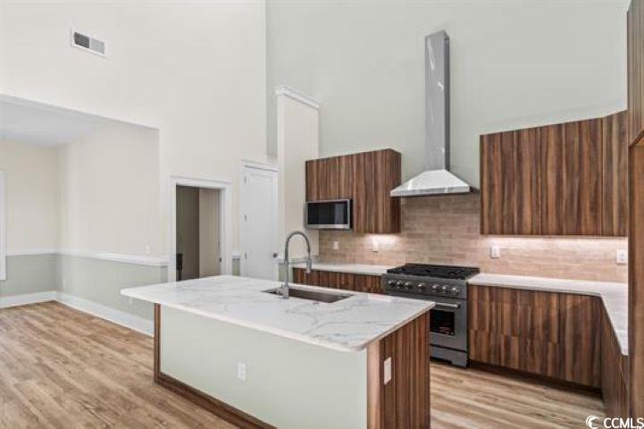 Step into a home that feels like it was made just for youwhere modern design meets old-world charm. From the moment you pull up, the stunning rooflines and stone entryway framed by Italian cypress trees set the tone. You can almost picture quiet mornings here, coffee in hand, taking in the peaceful view of the lake that wraps around the property. Inside, natural light floods the open spaces, highlighting a dramatic floor-to-ceiling fireplace and custom woodwork that shows true craftsmanship. The gourmet kitchen is the heart of the homeZLINE six-burner gas range, Italian quartz counters, and a textured stone backsplash that ties it all together. Cooking here feels effortless and elegant all at once. The primary suite is your private getaway, with big, bright windows that frame the lake and fountain. The spa-style bath offers a tiled walk-in shower with custom glass, Italian quartz finishes, and two generous walk-in closets. Every detail, from the lighting to the fixtures, has been carefully chosen to blend luxury with comfort. Step outside and youll find an oversized garage, extra driveway space, and a wide wraparound lotperfect for an RV, boat, or even your dream garden. Youre just three miles from Coastal Carolina University, ten minutes to a public boat ramp on the Intracoastal Waterway, and steps away from over 2,000 acres of protected wildlife preserve. This isnt just a houseits a lifestyle. All thats missing is you. Some Photos AI Enhanced.