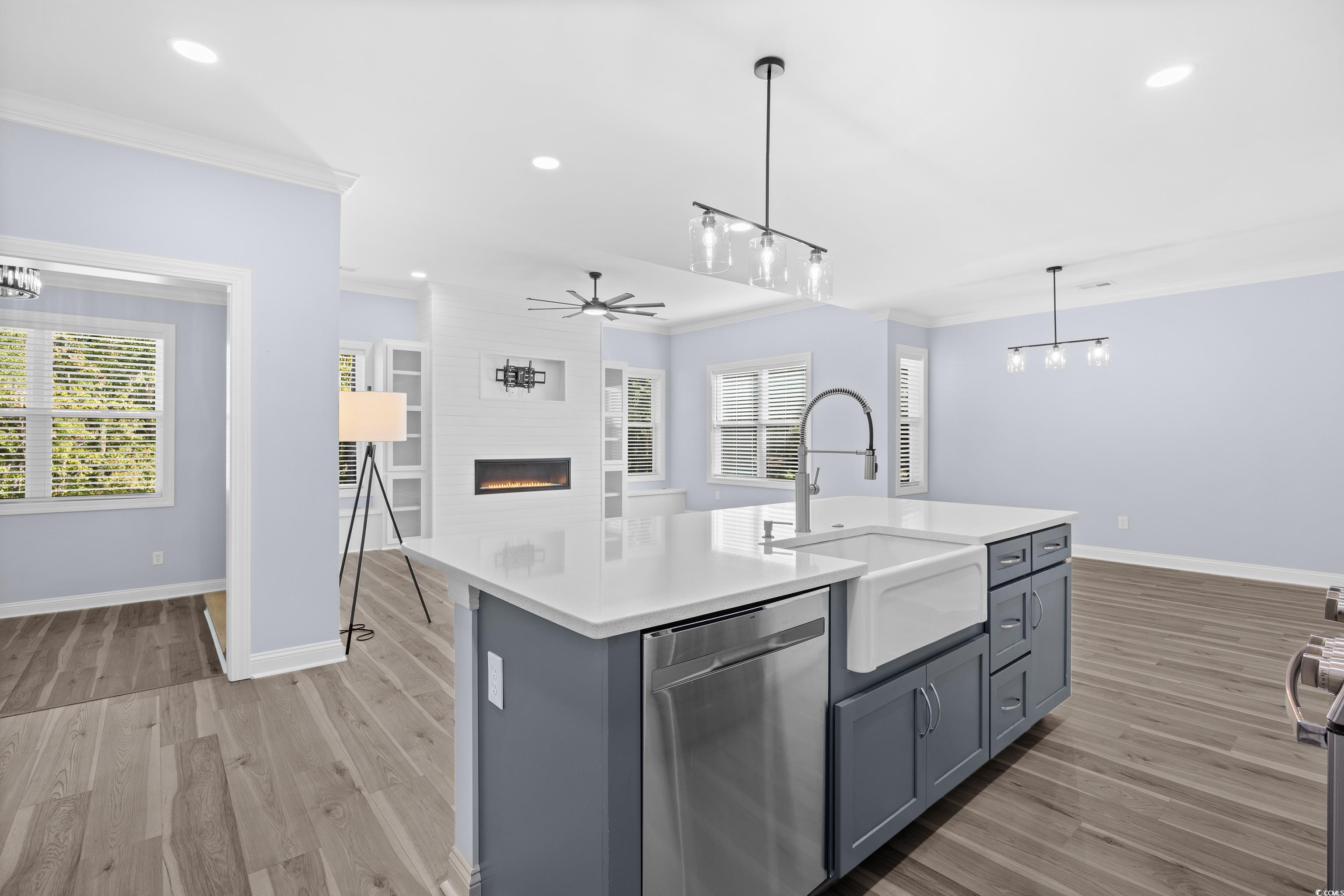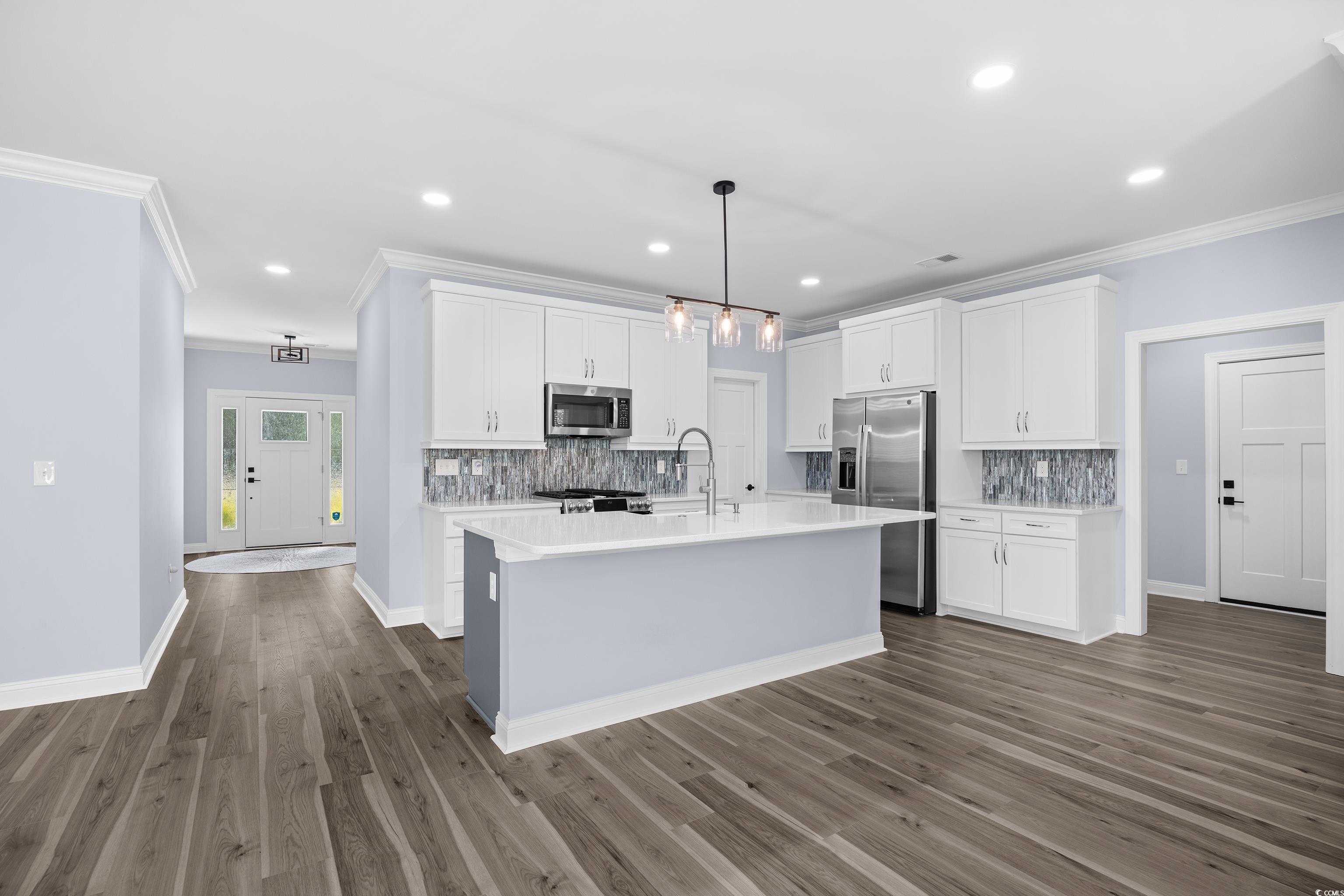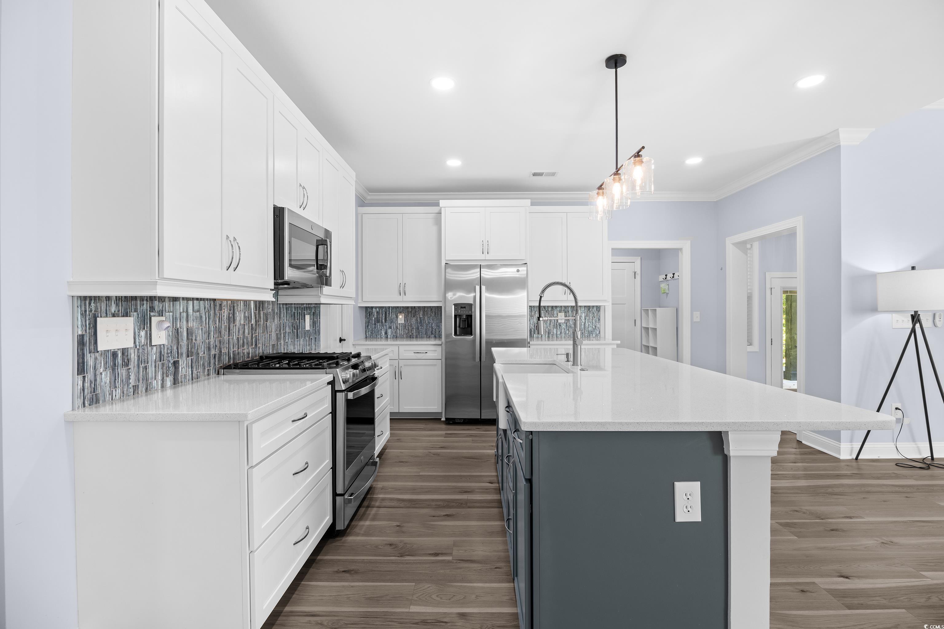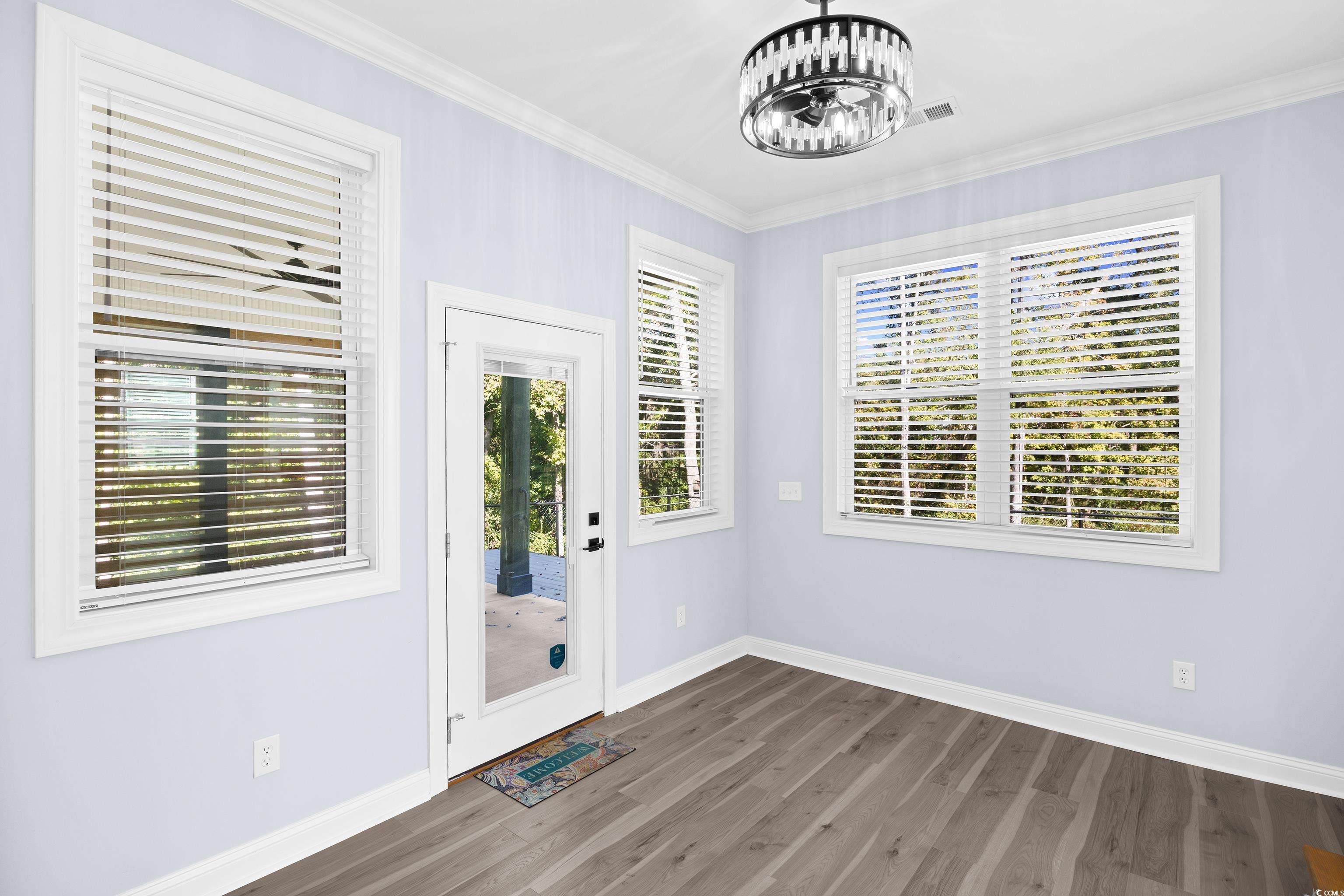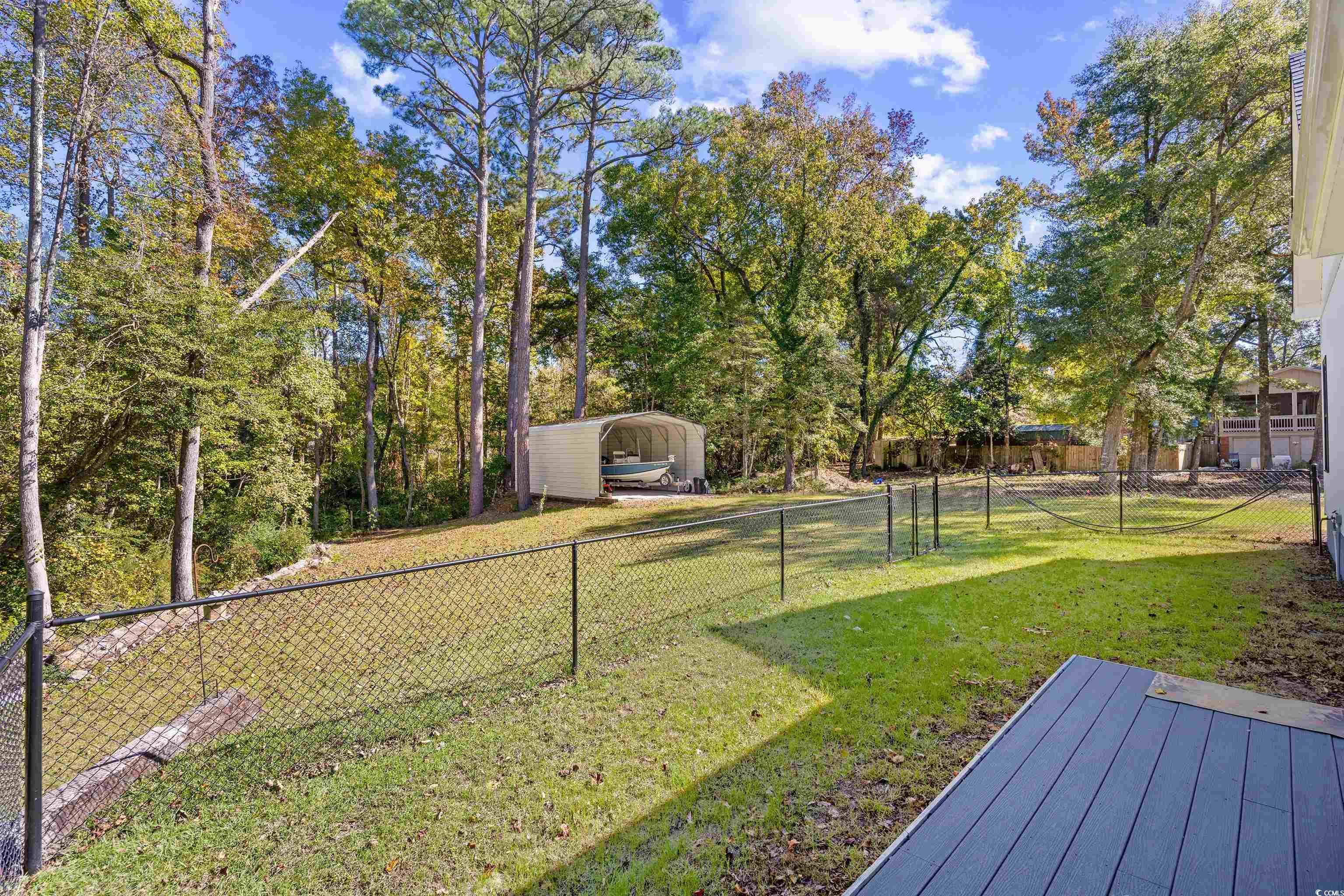 Almost new home in Little River, on a large lot with wooded left and back property lines, is ready for a new owner. Walk into an open foyer leading to the living/dining/kitchen area. Check out the crown molding, and LVP flooring throughout the home - seamless and beautiful! Kitchen features a 42 cabinets with light rail, farm sink, quartz counters, tile backsplash, breakfast counter, LP Gas top range with electric oven, and is loaded with drawers and cabinets for your storage needs and a pantry too. The dining area is open and overlooks the living room with a gas fireplace, decorative cabinets and 2 window seats. Beautiful covered porch with wood slat wall is accessed thru a special sitting area off living room. This space can be used as an office, playroom, or any space you desire. Porch has an extended deck for grilling, and an area of the yard is fenced. Beyond this area there is a covered parking area for your boat, RV, or other. A mud room with drop zone and storage are off the oversized 2 car garage. Back at the front of the home you will find two bedrooms, a full bath and laundry room with sink, linen, cabinets, and washer and dryer are included with the sale. And the Master Bedroom with 2 closets, a shower with handheld and 2 body sprays, a full soaking tub, 2 sinks and vanity along with a water closet complete the living areas. Home is adorned with special features like sea glass panels in front door, 36 shaker style doors, plantation shutters across the front of the home, recessed lighting and more. Partially fenced yard, and a large storage shelter is in the back yard. Great for your boat and more. This home is a special find in Little River near the waterway and close to shopping, dining, and entertainment for your enjoyment. Property is located in Flood Zone X, see attached photo from FEMA map. Make your appointment to tour today!