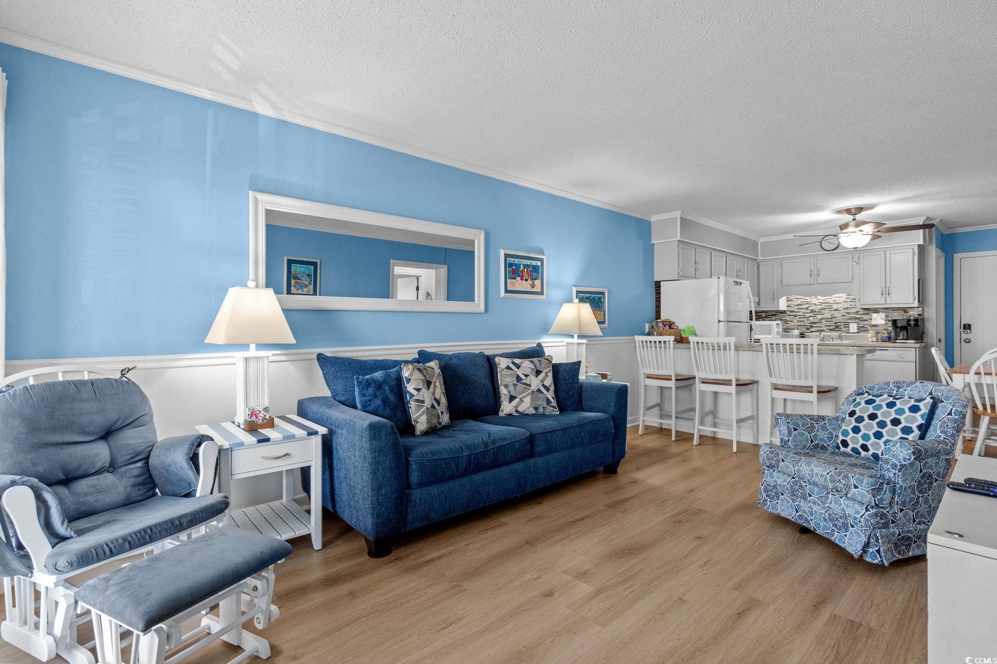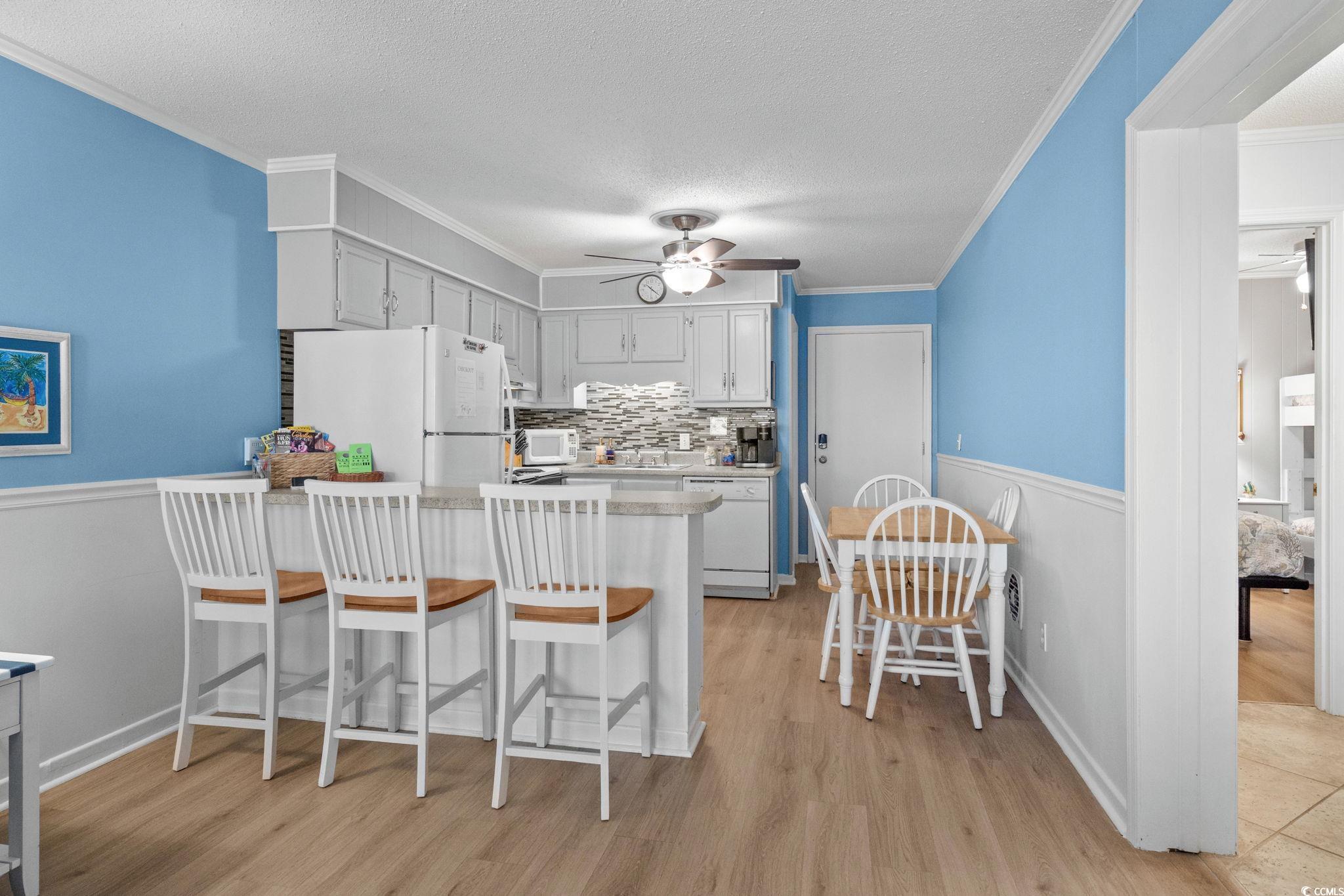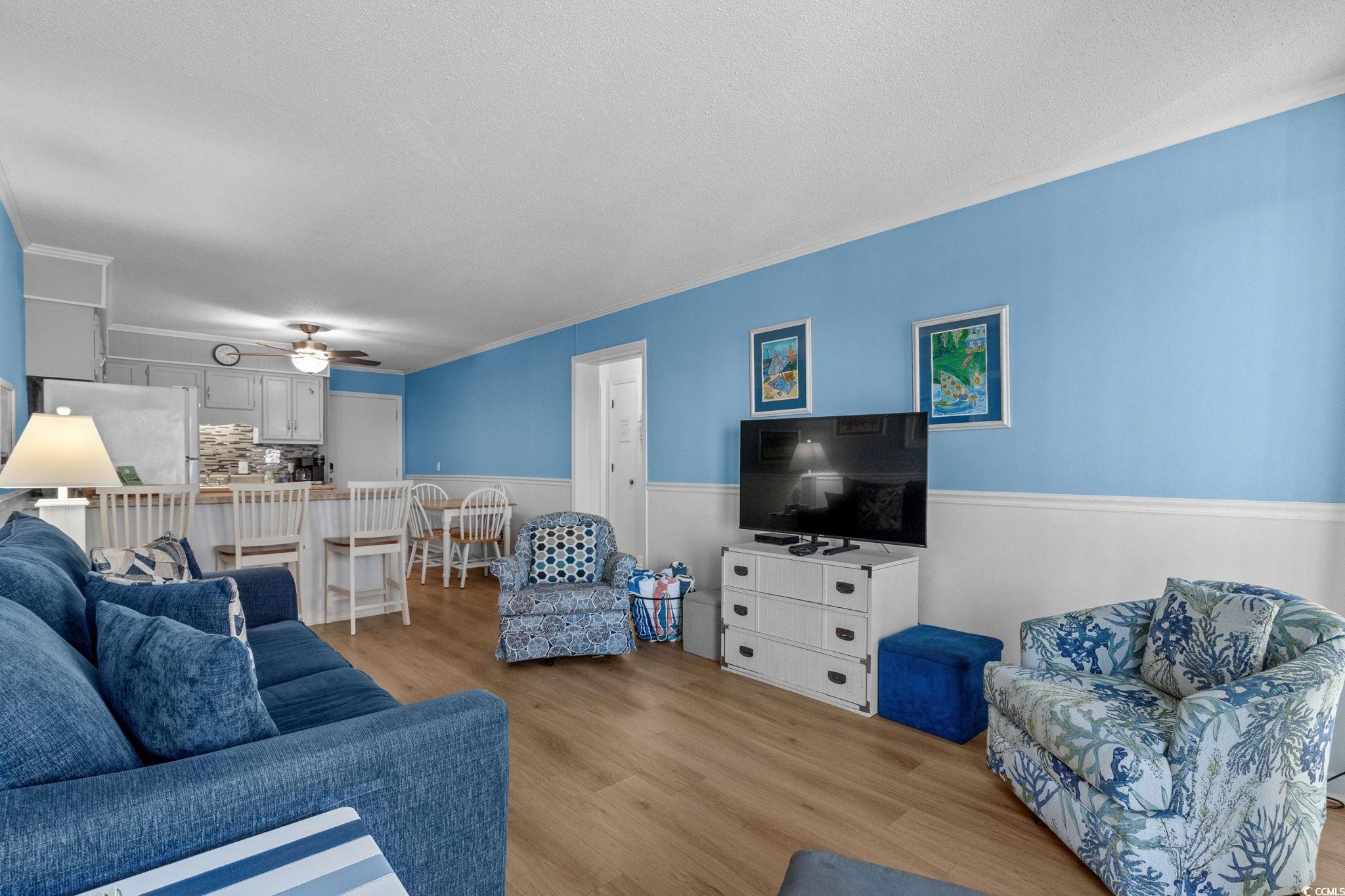 Wake up to the sound of the surf and the smell of salt air at A Place at the Beach IIIwhere coastal living is simple, sunny, and steps from the sand. This fully furnished 2-bedroom, 2-bath condo is perched on the top floor, offering views of the ocean and a perfect perch for morning coffee or evening breezes on the covered balcony. Inside, the open layout feels bright and inviting, with luxury vinyl plank flooring throughout and thoughtful updates that make it move-in ready. The kitchen and baths feature modern finishes including a tiled tub surround, granite countertop vanity, and classic crown molding details that add a touch of polish. This condo makes the most of its space with smart storage options, including a convenient entry closet for beach gear. And when youre not relaxing indoors, youll love the two outdoor pools, picnic and grilling areas, andbest of alldirect beach access just across the dunes. Tucked in the popular Shore Drive area, youre minutes from oceanfront restaurants, golf, entertainment, and shopping, yet the vibe here stays wonderfully relaxed. Whether youre looking for a full-time home, a weekend retreat, or an investment getaway, this one is ready when you are. Arrange a tour today!
