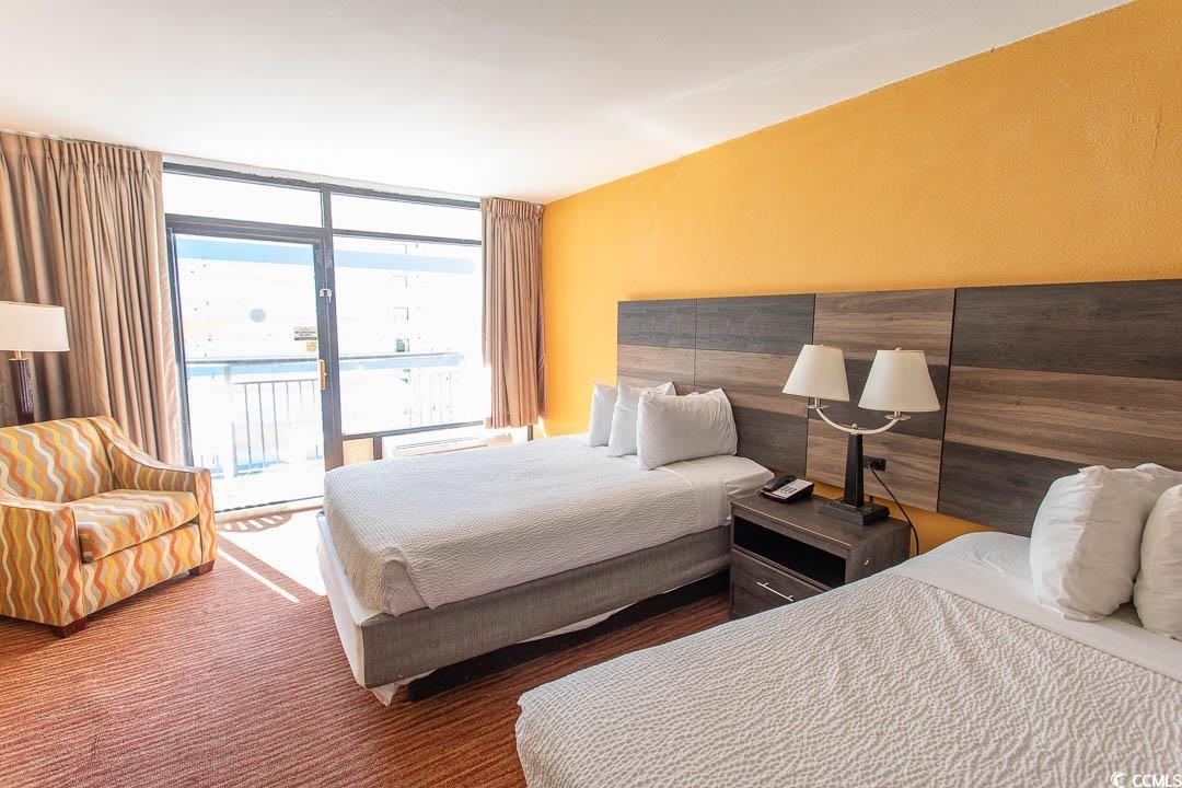Welcome to this stunning efficiency unit at the renowned Landmark Resort in Myrtle Beach! This exquisite unit offers a turn-key opportunity for new owners, as it is being sold fully furnished, ready for immediate enjoyment or rental. Inside, you'll find a well-appointed kitchenette featuring a sleek granite countertop, microwave, and a refrigerator, making it the perfect spot for preparing meals while on vacation. The spacious living and dining area boasts 2 beds and a dining room table, creating a comfortable and inviting atmosphere. For additional guests, a convenient pull-out sofa provides extra sleeping space without compromising comfort. Step out onto your private balcony to experience breathtaking and expansive views of the Atlantic Ocean. a perfect setting for morning coffee or evening relaxation. The Landmark Resort is packed with amenities designed to entertain and delight, including a water park, outdoor pools, indoor pools, lazy river, hot tubs, restaurant, snack bars, fitness center, arcade, onsite laundry, and gift shops. Whether you're in the mood for adventure or relaxation, you'll find it all here. Conveniently situated near Myrtle Beach's dining, shopping, golf, and entertainment options, this unit is perfectly positioned to enjoy everything the area has to offer. Its prime location and array of amenities make it an excellent vacation spot or investment property. Don't miss out on this incredible opportunity to own a piece of paradise. Schedule your showing today and make this beautiful oceanfront unit your own!
