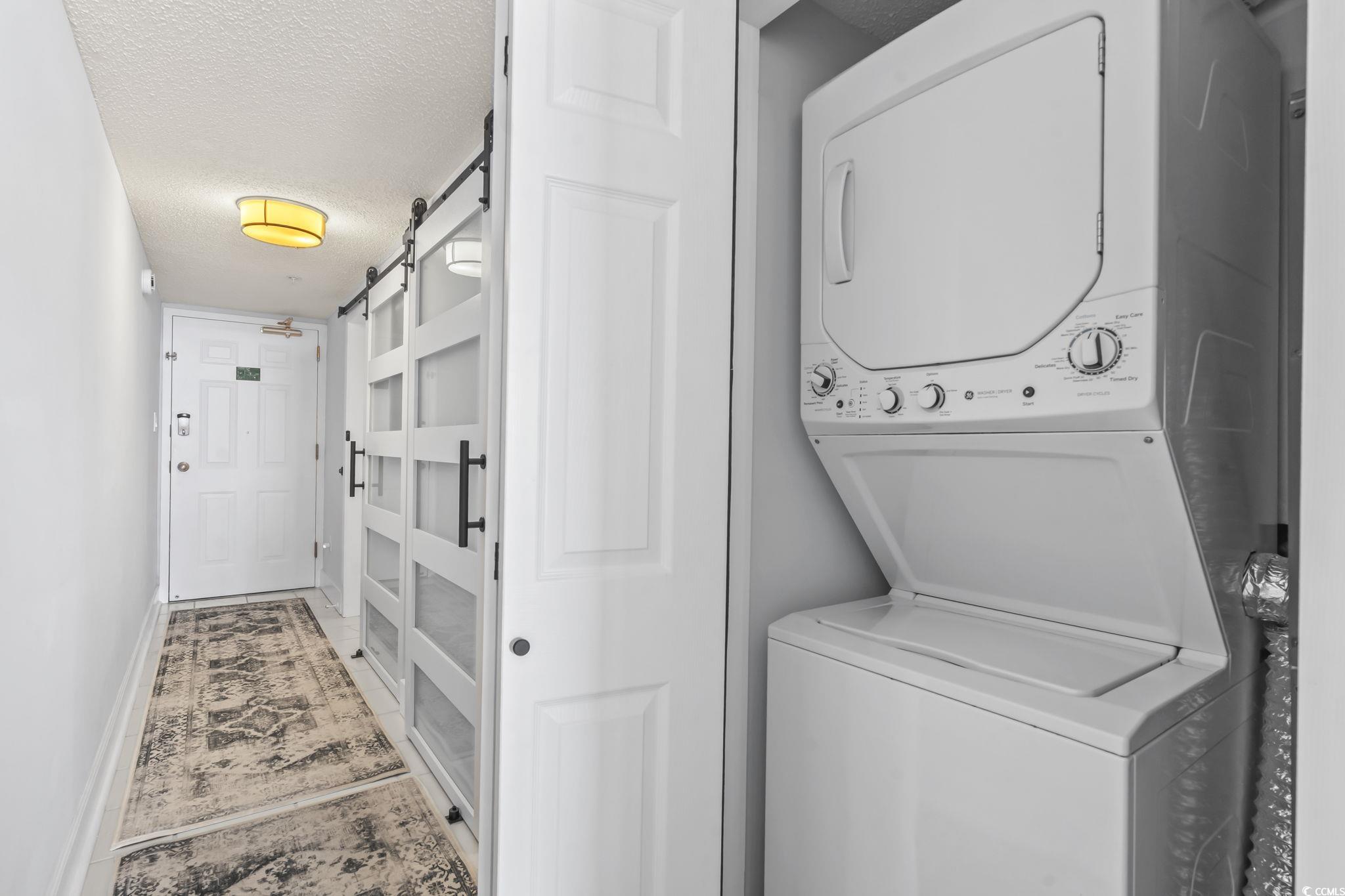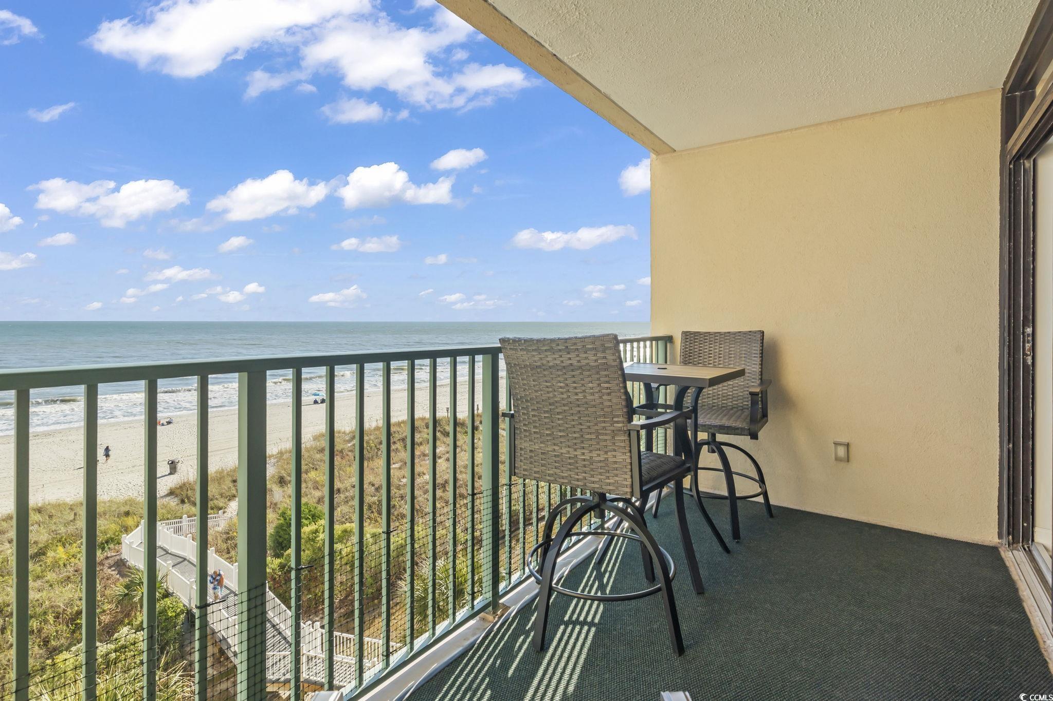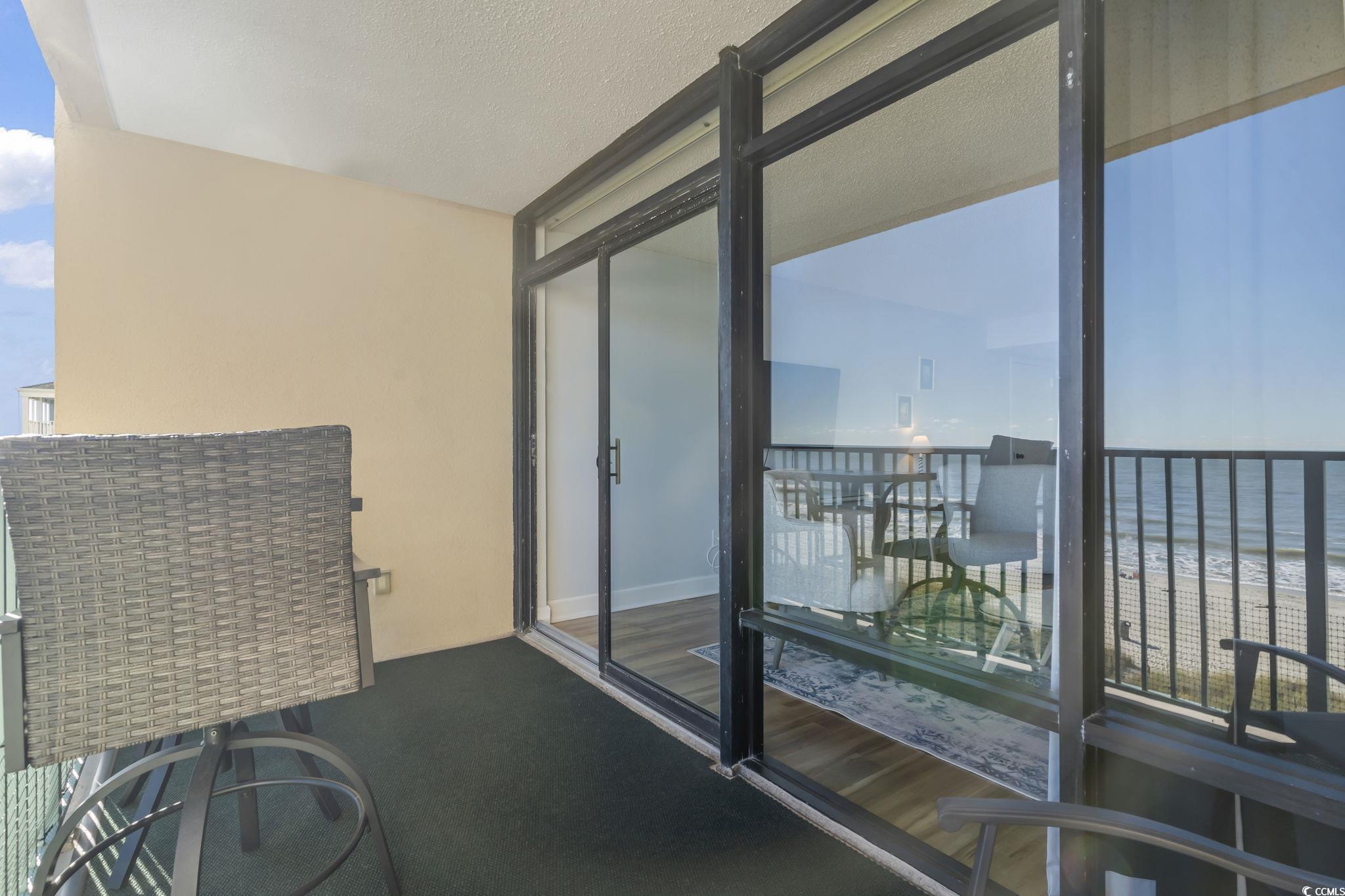 Just reduced and priced to sell! Welcome to your dream oceanfront condo at The Verandas in North Myrtle Beach! This stunning one bedroom, two full bath unit has been completely renovated, showcasing fresh paint, modern appliances, and beautiful quartz countertops in the kitchen. The bathrooms have also been fully renovated to offer a sleek, modern look, both with walk-in showers. The original half bathroom has been converted into a full bathroom for added convenience; a rare update that is unique to this unit! Stylish barn doors, a convenient Murphy bed, and a comfy pull-out sofa make it perfect for up to six guests. Fully furnished and move-in ready, this condo is ideal for both personal use and rental opportunities. Step outside onto the expansive balcony for breathtaking direct ocean views, and enjoy on-site amenities like a lazy river and a seasonally heated outdoor pool. Owners will also appreciate three stories of under-building parking for extra storage, and an in-unit washer and dryer for added convenience. Stylishly decorated with modern, beach-inspired, yet simple accessories, this condo truly is a coastal gem! Ready for a break from the beach? You are conveniently located just minutes to Main Street and all of the amenities that North Myrtle Beach has to offer including Golfing, Shopping, Fishing, Dining, and of course local favorites such as Barefoot Landing and the NMB Park & Sports Complex. Don't miss out on this rare opportunity!