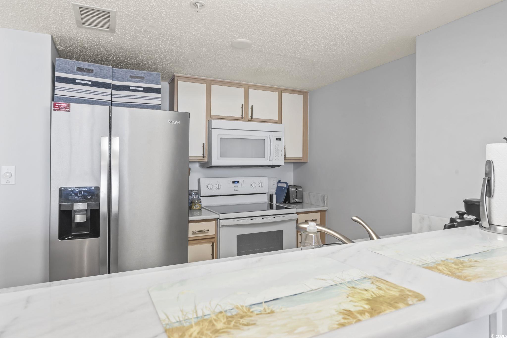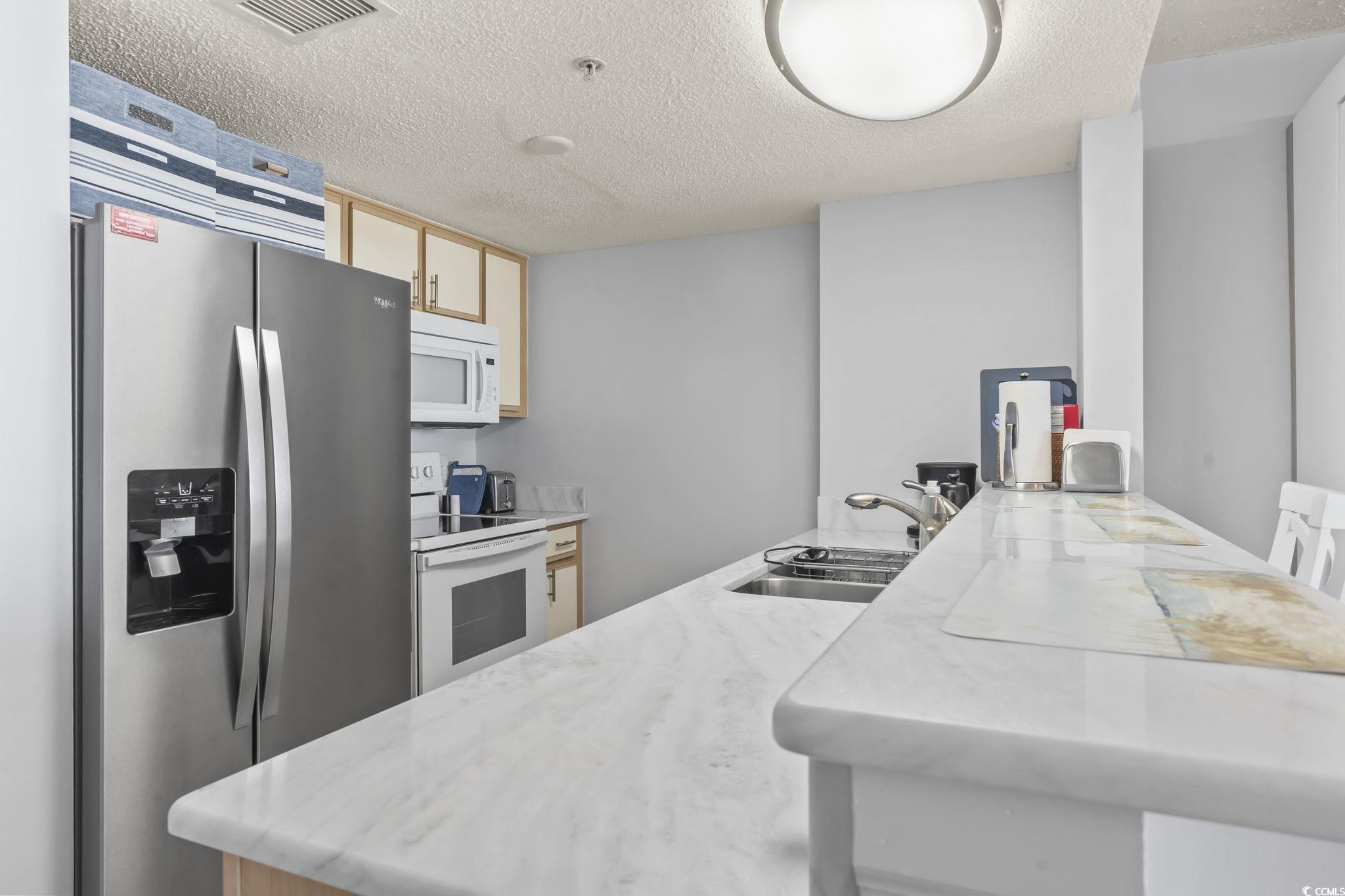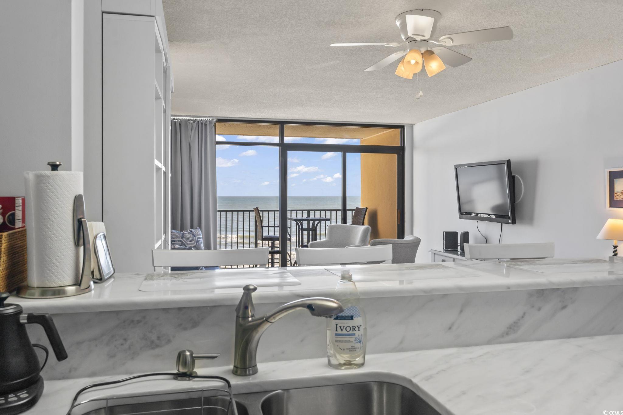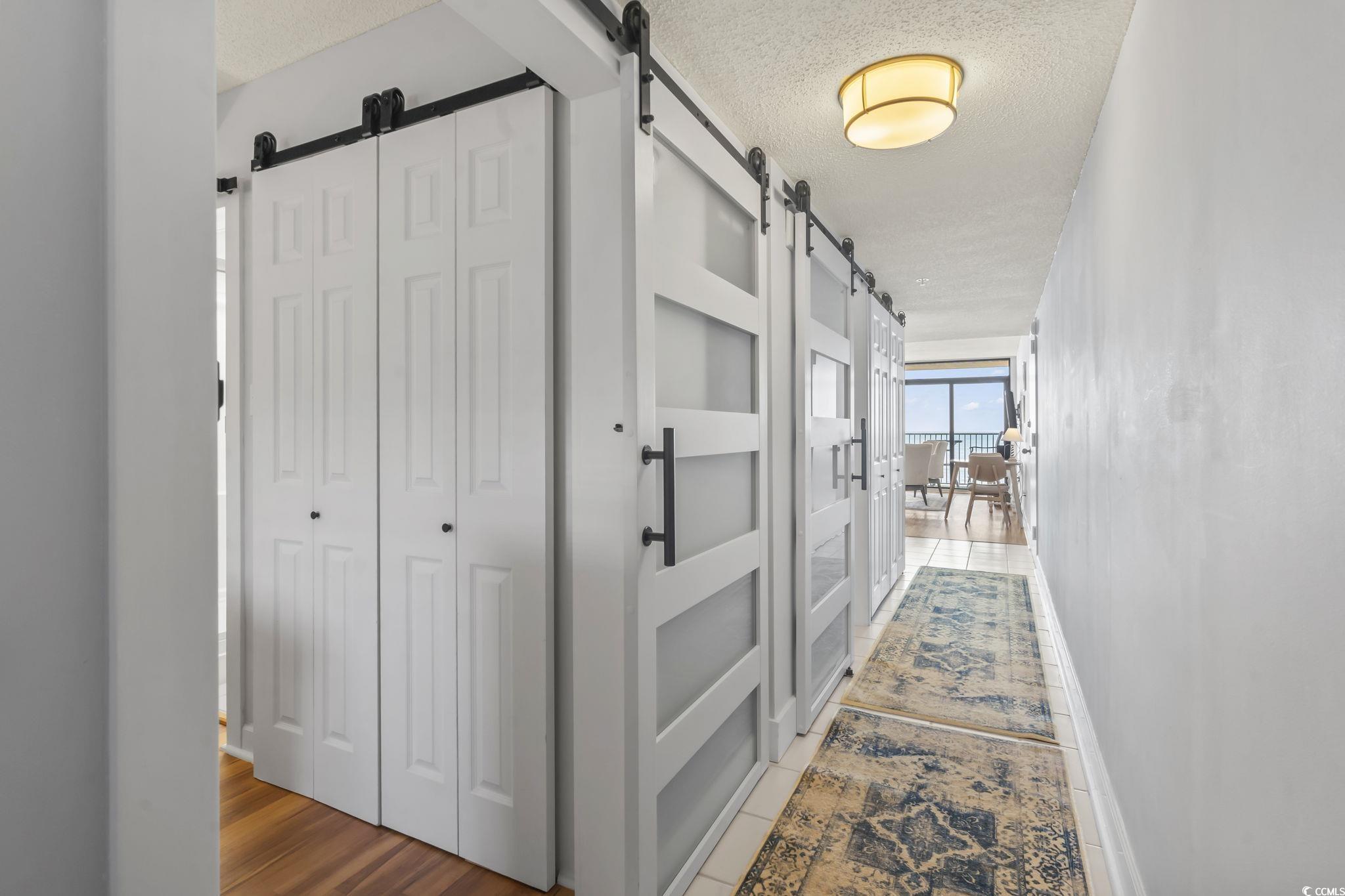 Just reduced and priced to sell! Welcome to your dream oceanfront condo at The Verandas in North Myrtle Beach! This stunning one bedroom, two full bath unit has been completely renovated, showcasing fresh paint, modern appliances, and beautiful quartz countertops in the kitchen. The bathrooms have also been fully renovated to offer a sleek, modern look, both with walk-in showers. The original half bathroom has been converted into a full bathroom for added convenience; a rare update that is unique to this unit! Stylish barn doors, a convenient Murphy bed, and a comfy pull-out sofa make it perfect for up to six guests. Fully furnished and move-in ready, this condo is ideal for both personal use and rental opportunities. Step outside onto the expansive balcony for breathtaking direct ocean views, and enjoy on-site amenities like a lazy river and a seasonally heated outdoor pool. Owners will also appreciate three stories of under-building parking for extra storage, and an in-unit washer and dryer for added convenience. Stylishly decorated with modern, beach-inspired, yet simple accessories, this condo truly is a coastal gem! Ready for a break from the beach? You are conveniently located just minutes to Main Street and all of the amenities that North Myrtle Beach has to offer including Golfing, Shopping, Fishing, Dining, and of course local favorites such as Barefoot Landing and the NMB Park & Sports Complex. Don't miss out on this rare opportunity!