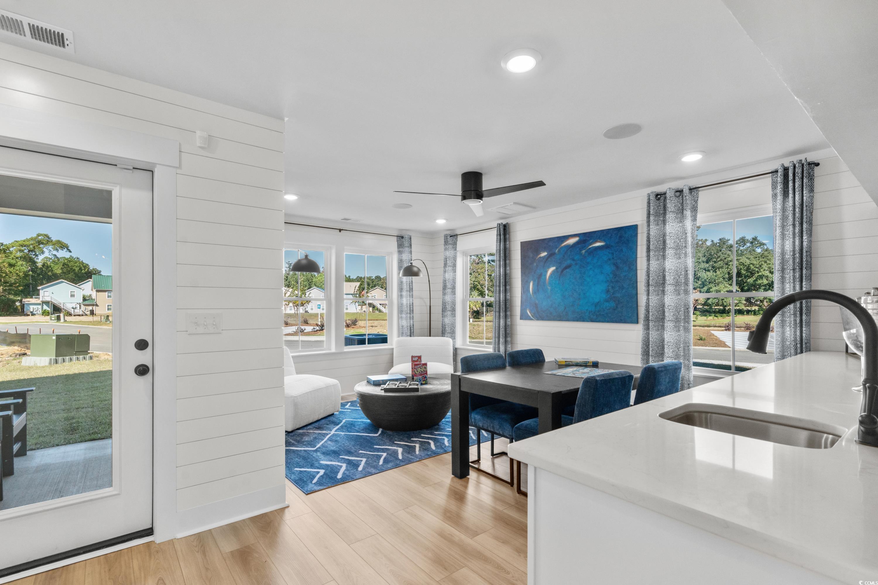 MOVE IN READY! Discover this right end unit Brookgreen model, a modern three-story 4 bedroom multilevel condo designed for flexible living. The main level features an open-concept kitchen with a large quartz countertop island overlooking the breakfast area, flex space, and family room. Added black plumbing fixtures and hardware throughout the home. Upstairs, the primary suite includes two walk-in closets, dual vanities and an oversized tiled shower, with two additional bedrooms nearby. The entry level offers an additional open living space/game room, perfect for entertaining and covered back porch! LOCATION! LOCATION! The only new low maintenance townhome-style condo community in Little River with direct access to marinas, restaurants, and more! Seabreeze Crossing is just steps from the Intracoastal Waterway and only minutes from the beaches of North Myrtle Beach. Featuring 56 beautifully designed homes, Seabreeze Crossing combines coastal charm, low-maintenance living with low condo fee, and an unbeatable locationideal for full-time residents, second-home buyers, or anyone seeking a relaxing beach retreat.