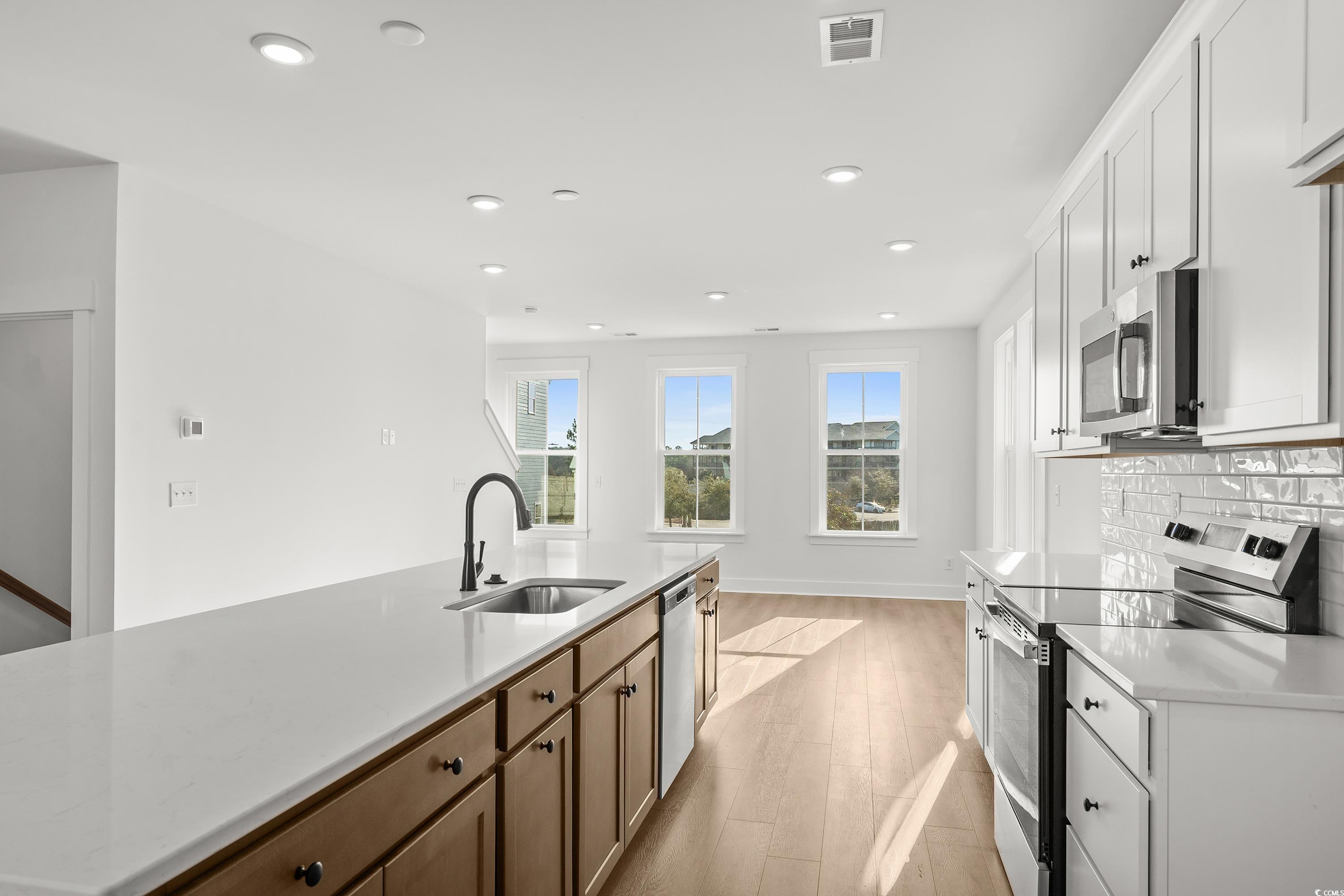 Discover this Brookgreen, a modern three-story 4 bedroom multilevel condo designed for flexible living. The only unit offering a guest suite with walk in tiled shower located on the first level. The main level features an open-concept kitchen with a large island overlooking the breakfast area, flex space, and family room. Upstairs, the primary suite includes two walk-in closets, dual vanities and an oversized tiled shower, with two additional bedrooms nearby. LOCATION! LOCATION! The only new low maintenance multilevel condo community in Little River with direct access to marinas, restaurants, and more! Seabreeze Crossing is just steps from the Intracoastal Waterway and only minutes from the beaches of North Myrtle Beach. Featuring 56 beautifully designed homes, Seabreeze Crossing combines coastal charm, low-maintenance living with low condo fee, and an unbeatable locationideal for full-time residents, second-home buyers, or anyone seeking a relaxing beach retreat. *Photos are of actual home Home and community information, including, without limitation, pricing, included features, specifications, materials, terms, conditions, and availability subject to change without notice. All images are offered as depictions only and individual homes, amenities, features, and views may differ. DRB Group South Carolina, LLC (Contractor# CLG.117647 & RBC.289) (DRB Homes). DRB Homes reserves the right to make changes to speculative homes under construction. Not all elevations or options shown are available in all communities. All dimensions/square footage are approximate; actual dimensions/square footage may vary. Prices may not include lot premiums, upgrades or optional features that may vary per community. Deposit restrictions may apply