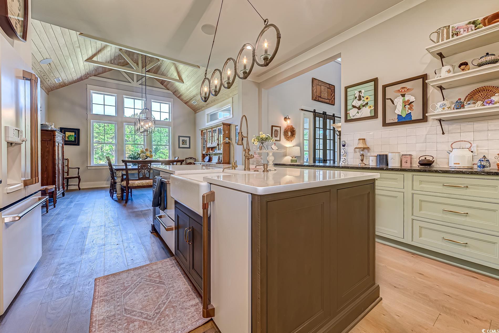 EXTREMELY RARE OPPORTUNITY to own a brand new, fully custom home in the highly coveted Debordieu Colony! This 5 (or 6!) bedroom 4.5 bath estate features soaring ceilings in the living room with exposed beams, a large fireplace, vaulted dining room adjoining your chef's kitchen, complete with a massive center island. Also on the main level, you will find 2 secondary bedrooms, each with their own private bath, the office/4th bedroom, and the spacious primary suite with his and her walk-in closets, stand-alone soaker tub, tiled shower, and separate vanities with loads of built-in storage! As you head down the hall you will see the half bath, an extra large pantry, and a dedicated laundry room. Head up the stairs, and you are greeted with ANOTHER bedroom and full bathroom, heated and cooled storage spaces for all your seasonal decorations, and an expansive bonus room that would be perfect for a mother-in-law, theater, or game room, complete with a picture window overlooking the pond! Outside on your .82 acre lot you will find a tree-lined backyard, covered porch, and a large semi-circle driveway leading into your extended 2 car garage and golf cart garage. For those seeking even more space, there is also the option to add an additional 2 car garage with a guest or mother-in-law suite above. The interior pictures are of a recently completed home. Opportunity to customize to your liking if you get in soon! Debordieu has it all! Tennis, pickleball, clubhouse, on-site dining, event venues, golf course, pools, playground, PRIVATE BEACH ACCESS, boating, and so much more! Call today, and be sure to check out the video! Perfect as a primary home, secondary beach getaway, or investment property!