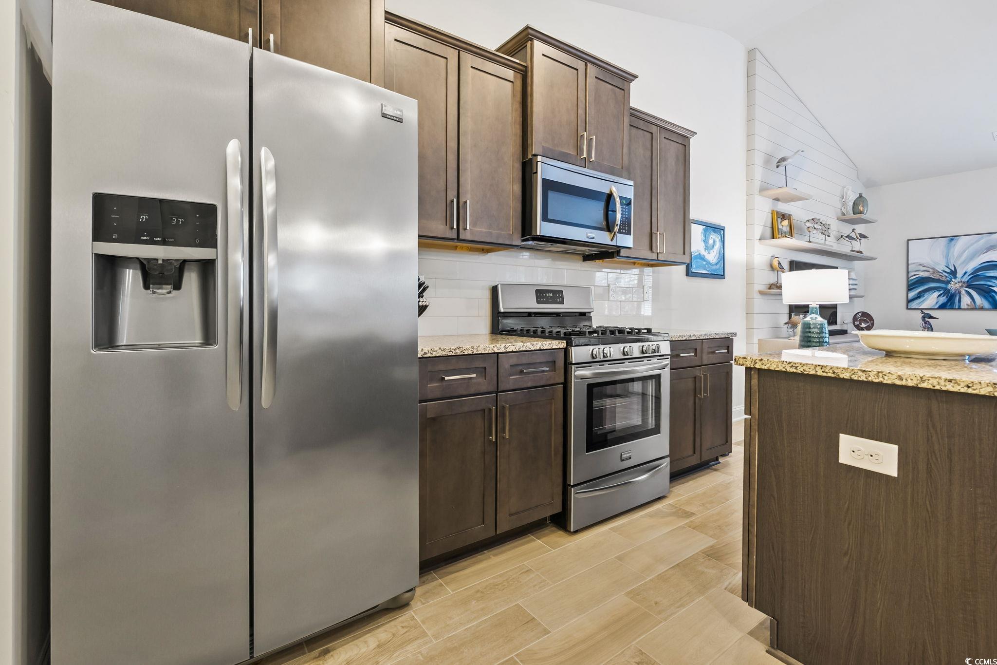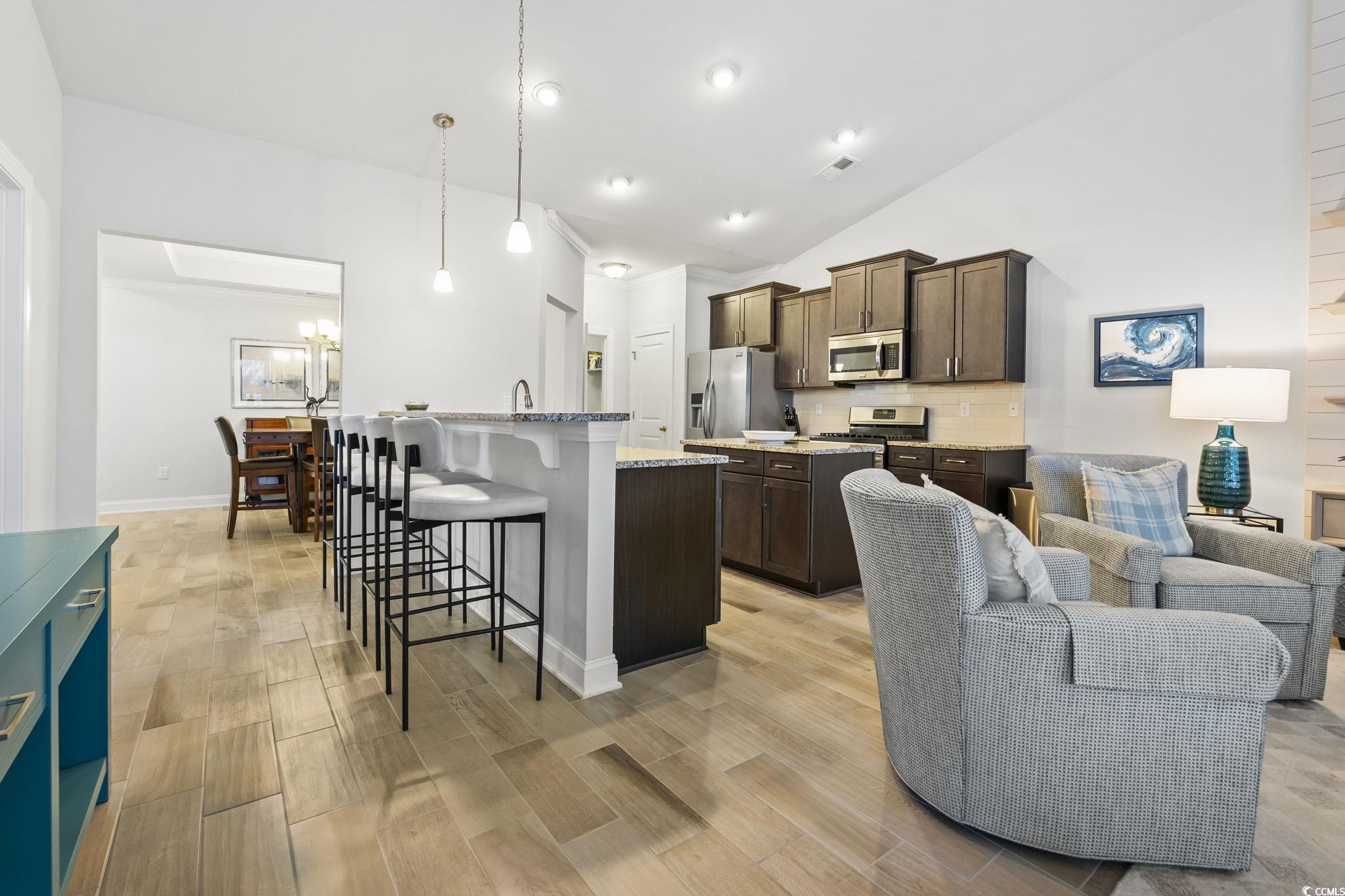 3-Bedroom Townhome Near Murrells Inlet Marshwalk - in Parmelee! Looking for a move-in-ready townhome close to the beach, golf, and great dining? This beautiful 3-bedroom, 3-bath end-unit townhome in the highly desirable Parmelee community of Murrells Inlet offers the perfect blend of Lowcountry charm and modern living - just 10 minutes from the Marshwalk and 3.5 miles from the Atlantic Ocean. From the moment you step inside, you'll feel the relaxed coastal comfort. The open-concept living area and kitchen feature a soaring vaulted ceiling, creating a bright and airy feel. A shiplap accent wall adds coastal character, while tile flooring runs through the main living spaces for style and durability. The formal dining room with its tray ceiling sets the scene for holiday dinners or casual gatherings. The kitchen is designed for both beauty and function - with granite countertops, stainless steel appliances, and a a breakfast bar, perfect for cooking or entertaining. The primary suite on the main level includes a walk-in closet, dual vanities, and access to the screened porch - a peaceful spot for morning coffee or evening relaxation. A second guest room is also found on the first floor with access to a full hallway bathroom. Upstairs, a spacious guest suite with its own private bath and walk-in closet provides a comfortable retreat for visitors. Bedrooms feature plush carpeting for a cozy feel. Outside, you'll appreciate the covered back patio with serene views of the tree line, also the attached two-car garage and the landscaped setting that surrounds this end unit. Parmelee residents enjoy access to a community pool and clubhouse, with plenty of open space for walking or cruising by golf cart to nearby shops, restaurants, and schools. Built for easy living and lasting quality, this townhome is ideal as a primary home, vacation retreat, or investment property. Conveniently located near Highway 17, this home puts all of Murrells Inlet, Garden City, and Myrtle Beach within easy reach - from shopping and dining to golf courses and the beach itself. Don't miss your chance to own a piece of coastal paradise where every day feels like a getaway. Contact today for a private tour! All measurements are approximate and not guaranteed. Buyer is responsible for verification.