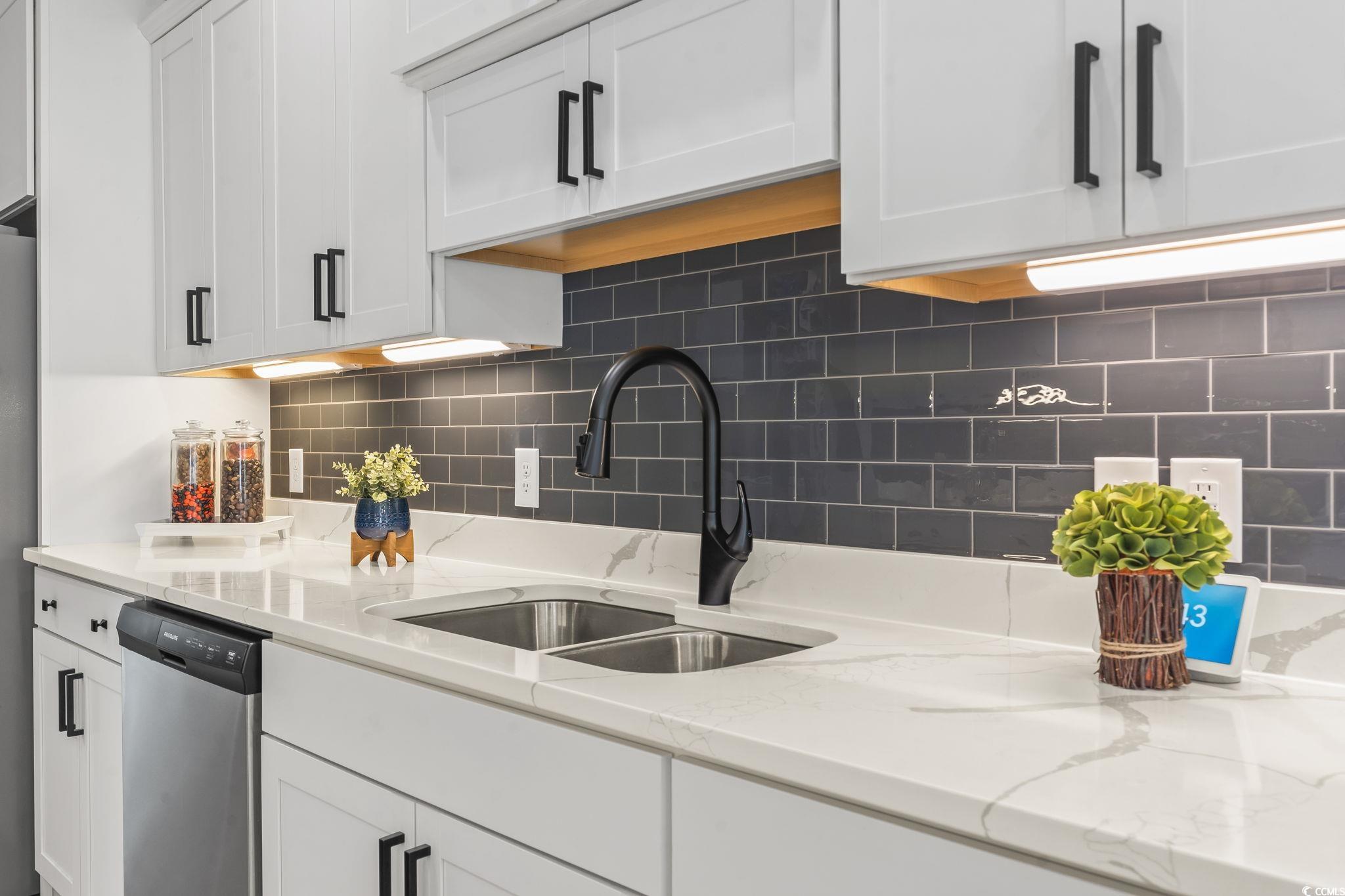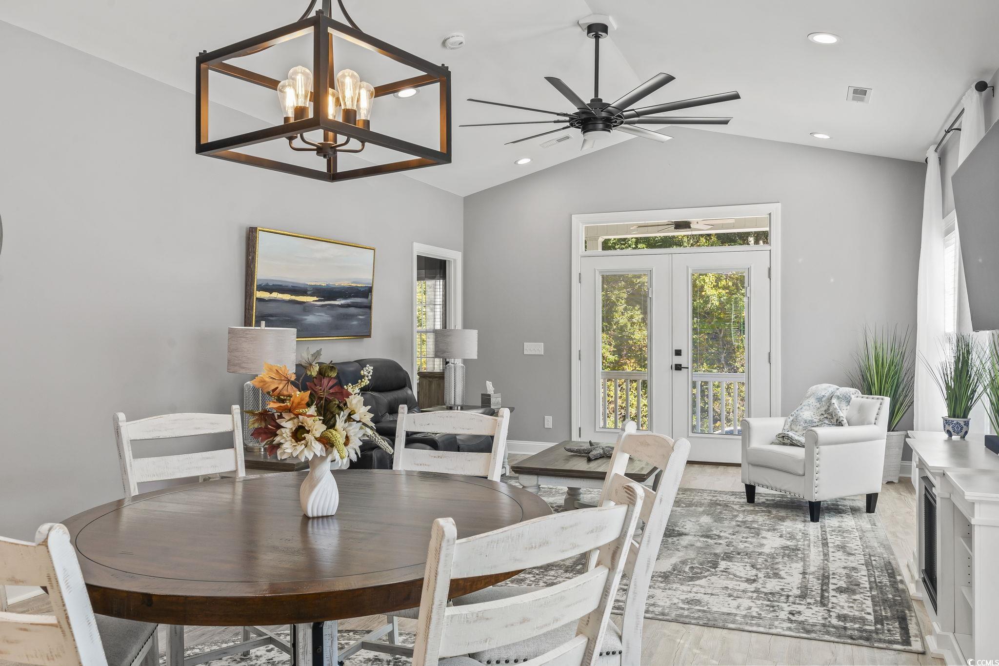 Coastal living at its finest - This Pristine 3 Bedroom, 3 Bath home with a Sunroom, Recreation Room, and Garage in Cherry Grove area of North Myrtle Beach offers ocean and saltwater marsh views! Stunning kitchen with stainless steel appliances, under-cabinet lighting, subway tile backsplash, quartz countertops, and a large walk-in pantry. Open living and dining areas with smooth vaulted ceilings and laminate flooring. Covered balcony (Trex deck) conveniently located off the living area. Bonus feature is the sunroom where you will love sipping coffee while enjoying ocean and marsh views. Sellers added rear steps for safety and convenience along with an upstairs patio. Spacious primary suite has a spa-inspired shower with full height tile surround and pebble stone floor, double sinks (quartz), linen closet, and a walk-in closet. Relax in the Jack and Jill bathroom: oversized soaking tub/shower, with tile surround to ceiling, and double vanity quartz sink. The third Bedroom was transformed into a dream closet/dressing room with a desk/makeup area, but can easily convert back. The downstairs recreation room with tile flooring features a full bath, storage closets and makes a perfect hobby, media room, or workout area. For your convenience, an Elevator shaft and wiring are in place. Garage is ideal for workshop, storage, or golf cart/motorcycle parking. Ample parking for guests including the additional side concrete pad (ideal for boat). Meticulously landscaped lawn with decorative rock detail, additional fill, premium Zoysia grass, irrigation system, accent lighting, and gutters with guards. No HOA and a detached storage building for tools and beach gear. Ideally located just minutes from the ocean, Intracoastal Waterway, and nearby boat ramps, this home offers a peaceful, nature-like setting surrounded by Coastal Beauty.