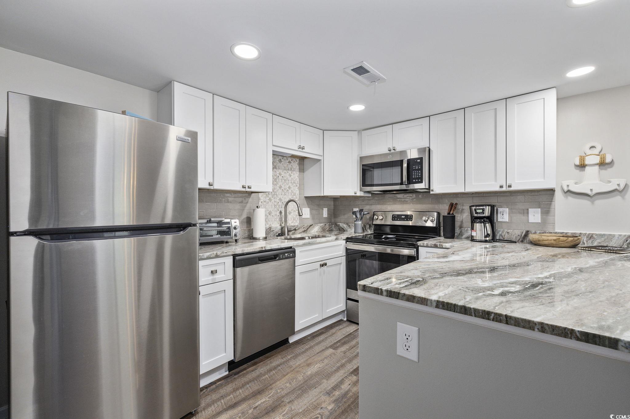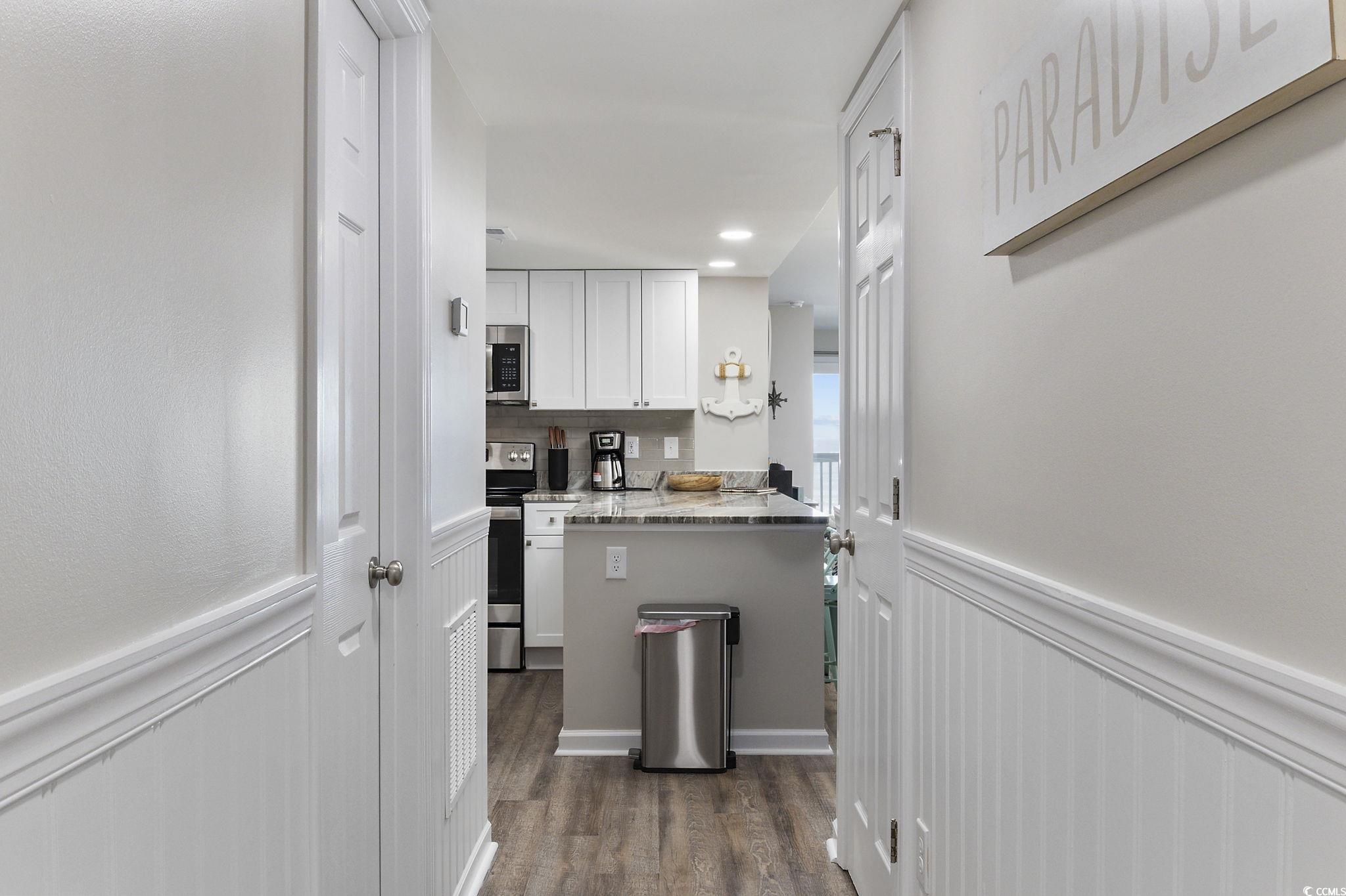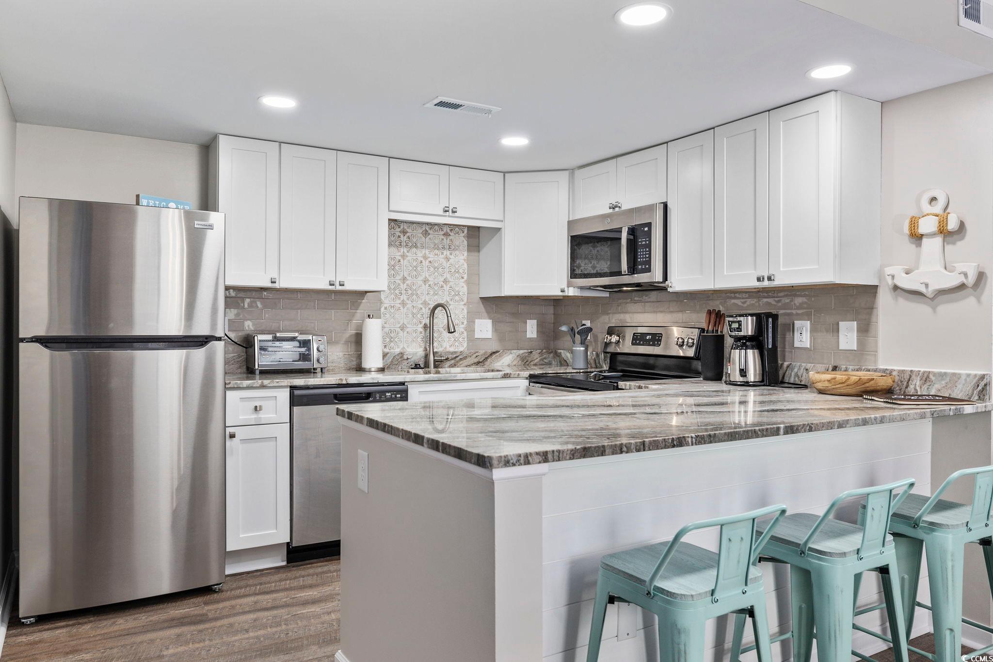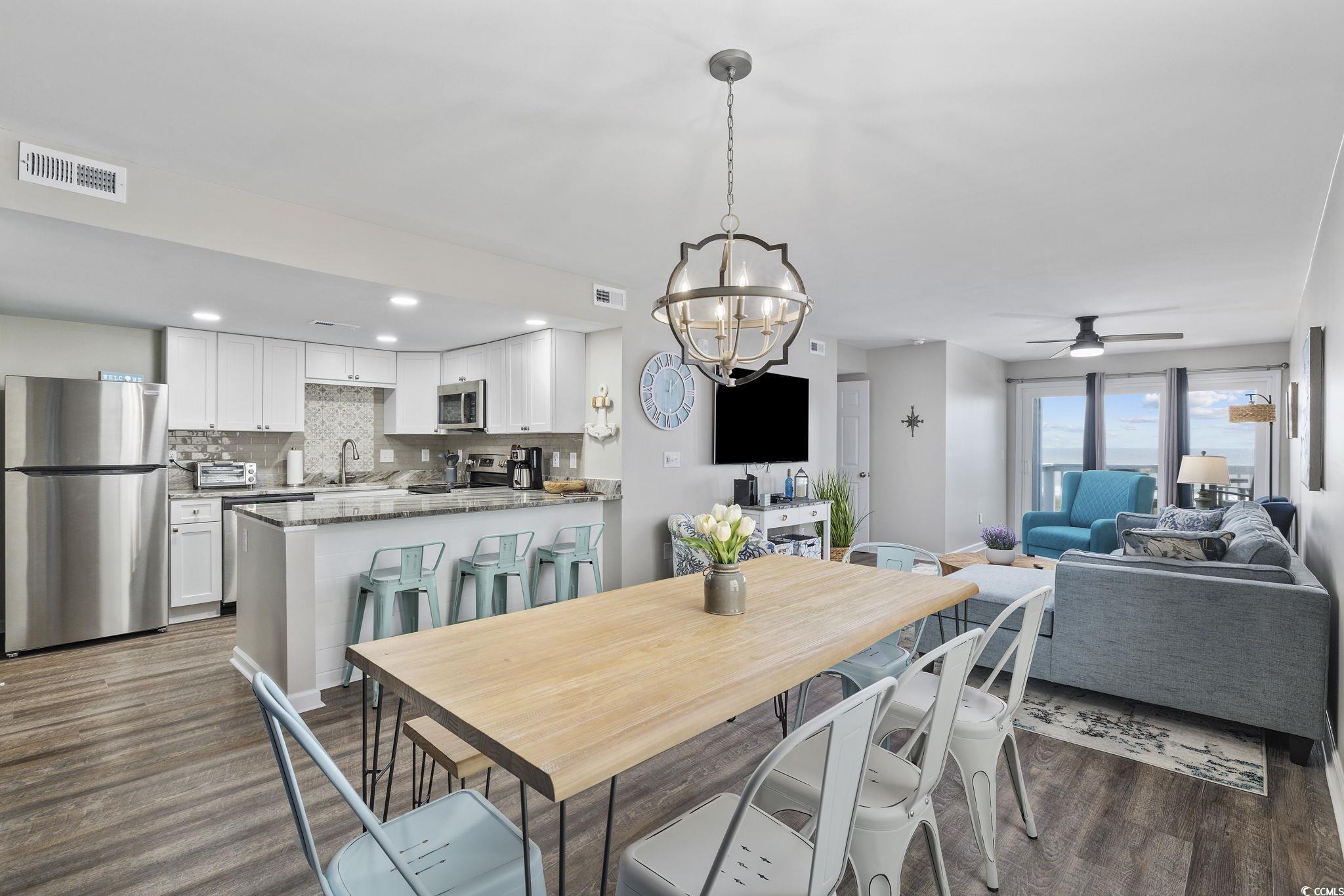 Welcome to oceanfront living at its finest! This stunning 4-bedroom, 2.5-bath oceanfront condo offers the perfect blend of luxury, comfort, and convenience. Located in a prime oceanfront community with a pool. Completely remodeled throughout, this unit features beautiful LVP flooring in all living areas and tastefully designed tile showers in each bathroom. Kitchen offer breakfast bar, stainless steel appliances, dining room area with accent wall, open living room space with ocean views. Two bedrooms offer bunk beds to maximize your sleeping space. Front bedroom offers king size bedroom and a private half bathroom. The master bedroom boasts spectacular ocean views, with direct access to a private balcony perfect for morning coffee or evening sunsets. Fully furnished and ready to generate income or enjoy as your personal oceanfront retreat! The community features amenities including a sparkling pool, perfect for relaxing with family and friends. This turnkey investment property combines the best of oceanfront living - spectacular views, luxury finishes, and a prime location in one of North Myrtle Beach's most sought-after communities. An exceptional opportunity not to be missed!