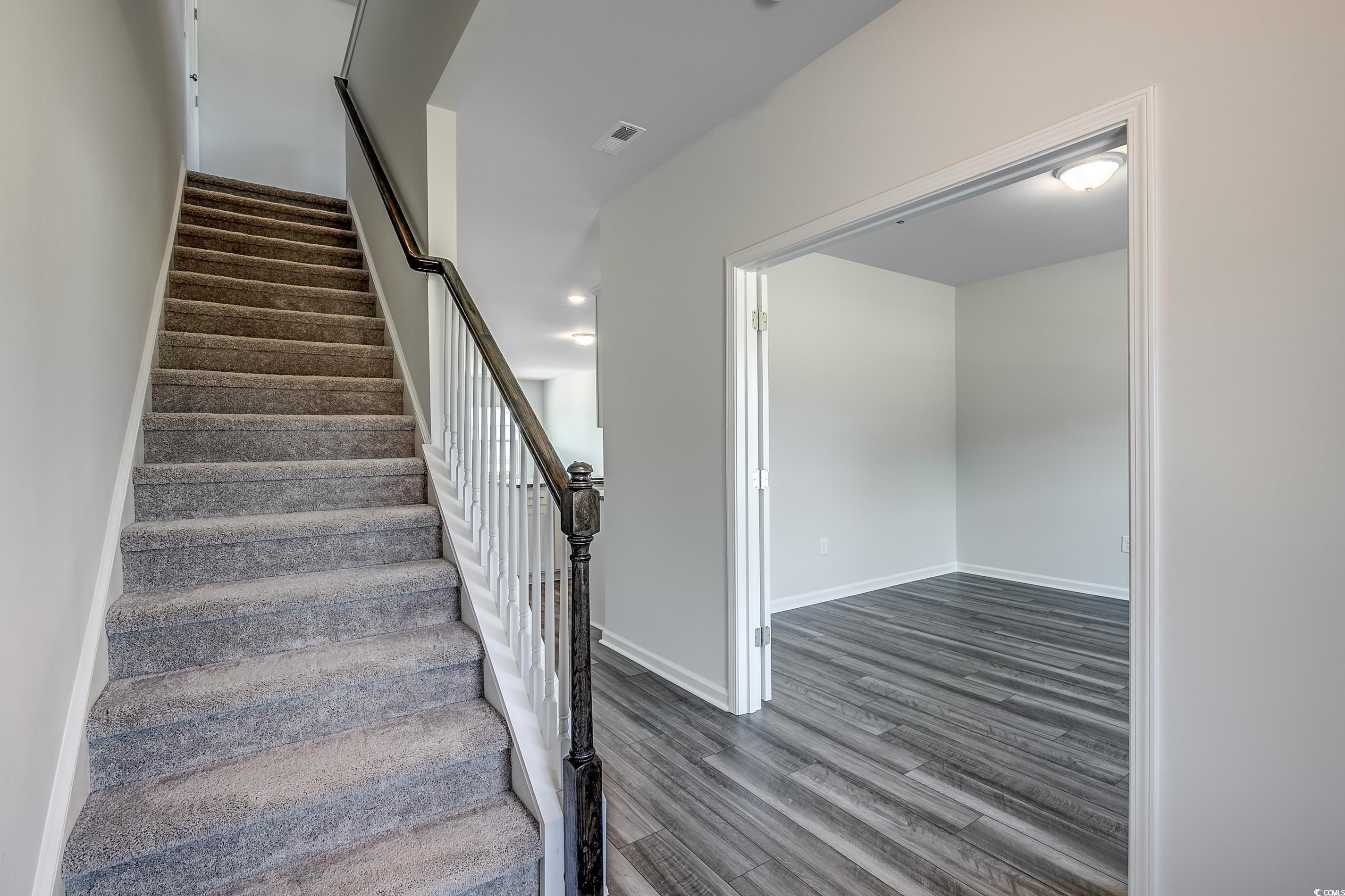 Welcome to The Pickens - Where Southern Comfort Meets Modern Living! This beautifully crafted two-story home offers 4 bedrooms, 2.5 bathrooms, and a thoughtfully designed layout that fits todays lifestyle with ease. Set on a spacious lot with a peaceful wooded view, this home combines comfort, charm, and functionality. Step inside and youll find the heart of the home on the main floorthe expansive primary suite. Its your personal retreat, featuring a vaulted ceiling, a spa-like en-suite with a double-sink vanity, a large walk-in shower, and an oversized walk-in closet. The open-concept living area ties the kitchen, dining space, and family room together perfectly, making it ideal for gatherings both big and small. The kitchen shines with bright white cabinetry, sleek quartz countertops, and ample prep spaceperfect for whipping up a family meal or hosting Sunday brunch. Youll also find a convenient powder room, laundry room, and a flexible office or study with elegant glass doors rounding out the first floor. Upstairs, a generous loft offers plenty of room for relaxing, gaming, or movie nights. Three spacious bedroomseach with walk-in closetsand a full bathroom with a double-sink vanity complete the second level, giving everyone their own space and comfort. Designed with luxury vinyl plank flooring in the main living areas and soft carpeting in the bedrooms, this home strikes the perfect balance between style and coziness. Step outside to your covered patio with a ceiling fan, where you can sip sweet tea and enjoy quiet evenings overlooking the woods. This home is under construction. Photos are of a similar model and are for illustration purposes only. Located in a welcoming new community just minutes from historic downtown Conway, this home puts you close to Myrtle Beach, local shopping, dining, and top-rated schoolseverything you love about Southern living, right at your doorstep!