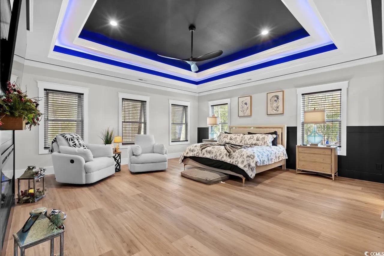 PrimaryBedroom: TrayCeilings, CeilingFans, Fireplace, MainLevelMaster, WalkInClosets