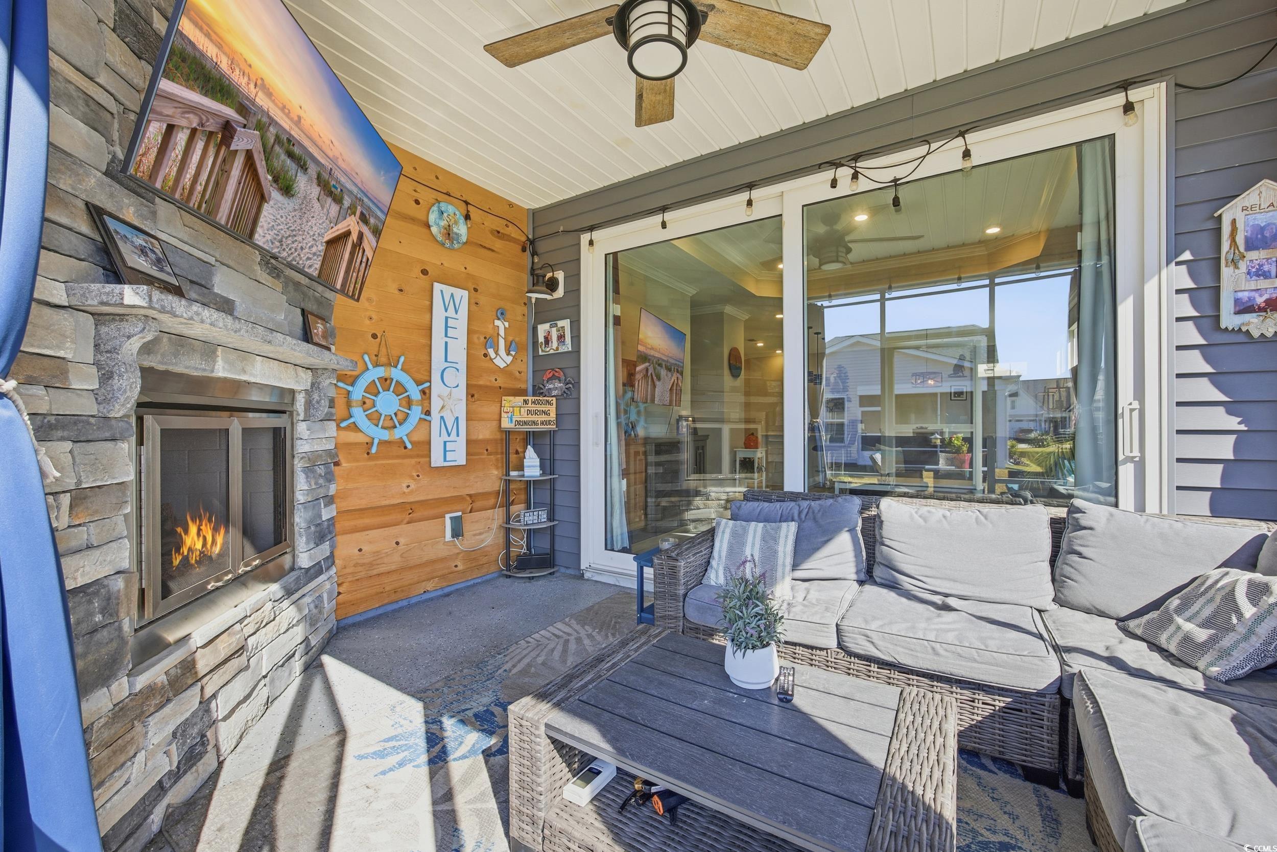 Welcome to 587 Cascade Loop, a charming 3-bedroom, 2-bath home in the highly sought-after Bridgewater community! The home is less than 3 years old. This beautifully designed home features an open concept living area, tray ceilings in the primary suite and main living area, laminate flooring throughout with cozy carpet in the bedrooms. There is a beautiful, oversized sliding glass door that lets in an abundance of light. The home has one very large pantry, and 2 other good-sized ones. The home also has a large drop zone in the hallway coming in from the garage. The primary bathroom is thoughtfully designed with a walk-in tiled shower and double sink. A highlight of the home is the screened, covered back patio complete with a beautiful gas fireplace and mantel. An additional gas connection is outside for grills. Both the garage and the porch have epoxy flooring. The home has been tastefully designed with neutral colors and is move in ready. The owners have had pest and termite control since they purchased the home. Bridgewater homes come equipped with modern smart-home technology, including gas heat and cooking, a tankless gas water heater, doorbell camera, and digital front door locks - which are accessible from your smartphone. The HOA fee covers trash, and cable and the fabulous amenities. This community boasts a recreation area with lots of community events, large community pool, large Gym for exercise, Bocce, and Pickleball courts. Community also features a walking path around the pond and two dog parks/run. One dog park is just steps down the street. Dont waitschedule your showing today!