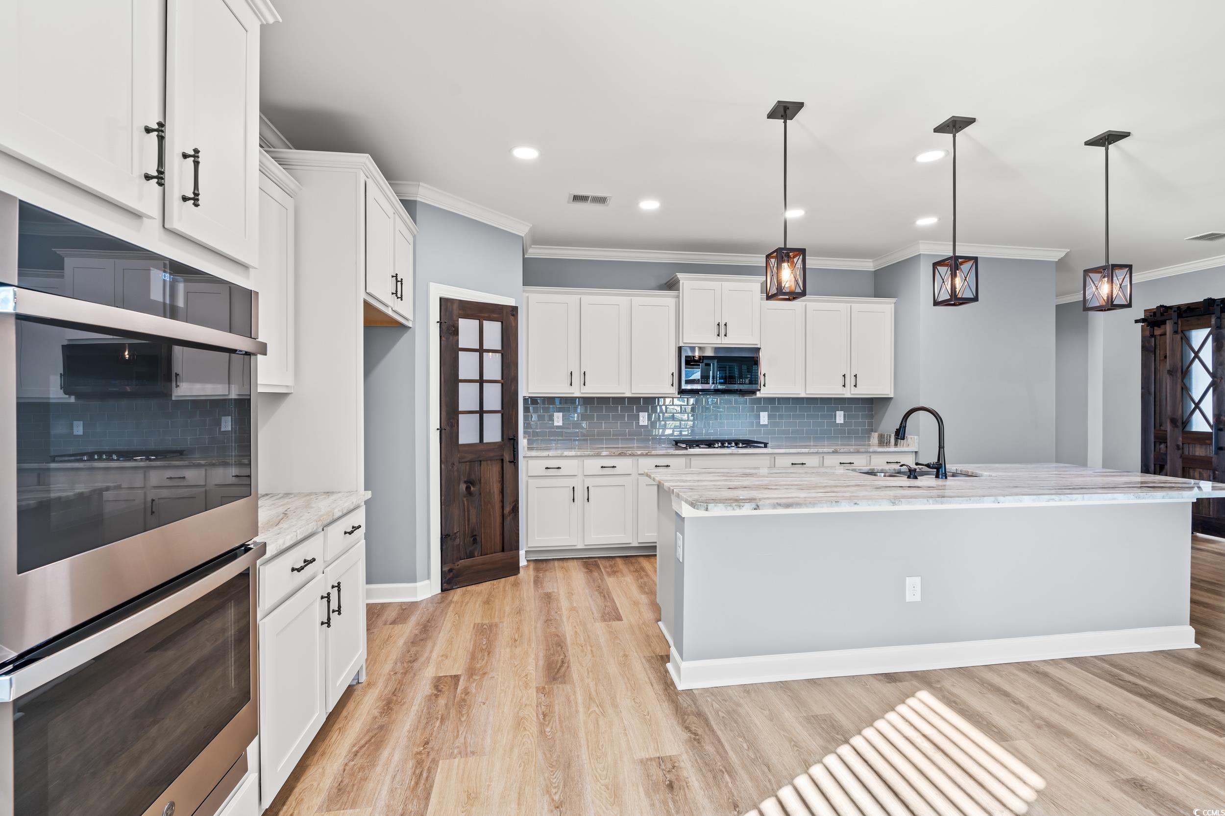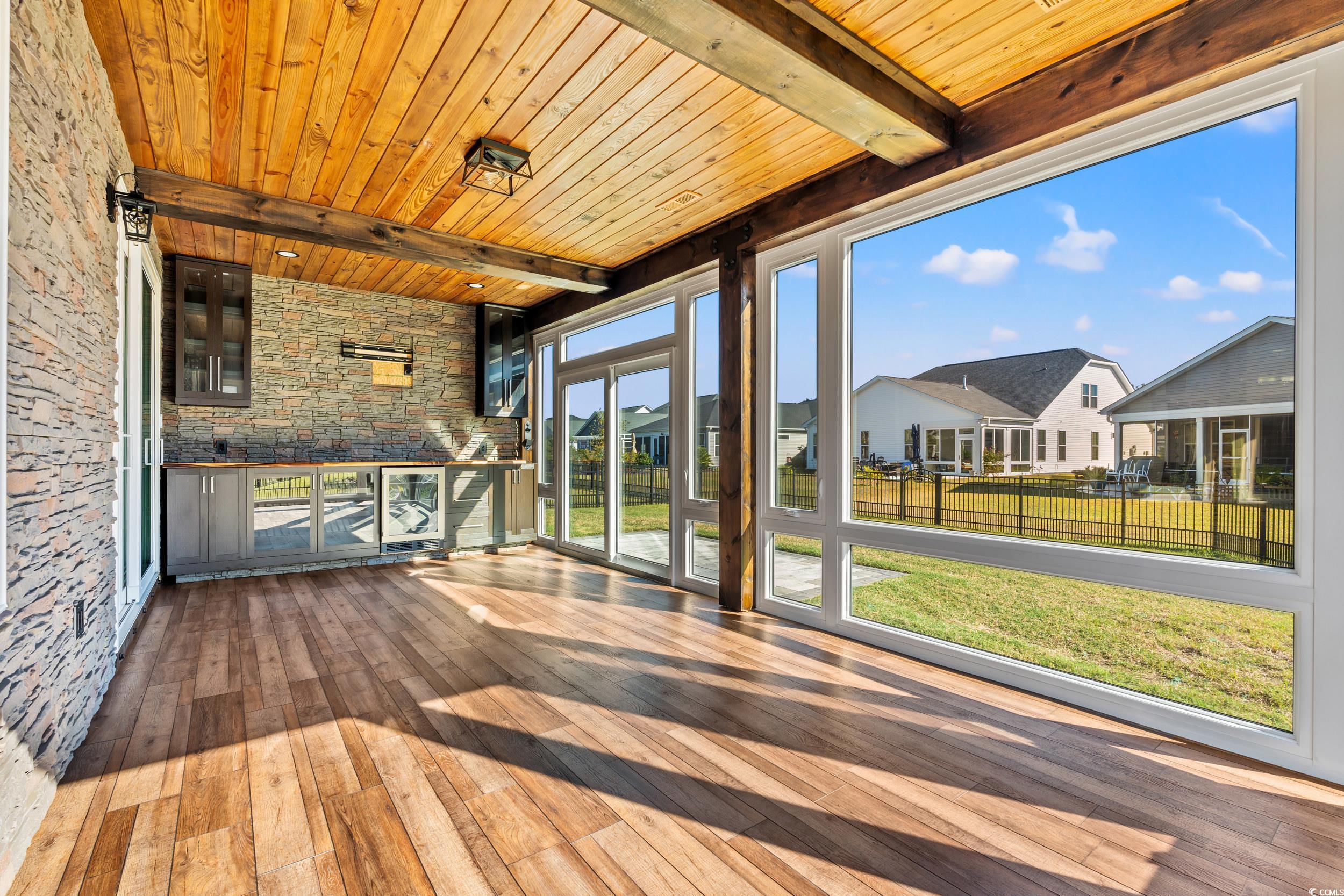 Welcome to 408 Feathergrass Way ""The Good Life"" a well-maintained home in top-notch condition with exceptional rustic charm and outstanding entertainment spaces, located in the highly sought-after community of Bridgewater in Little River, SC. Offering approximately 3,146 sq. ft. of living area, this 3-bed, 3-bath home also includes a separate flex room with a stunning barn door that can be used as an office, dining room, craft room, etc. It's an open-concept layout filled with natural light. The owners have thoughtfully maximized every space, making this a standout property. The kitchen is a true centerpiece, featuring a large center island, abundant cabinetry, a gas cooktop, dual ovens, stainless steel appliances, and Cree smart under-cabinet lighting. A walk-in pantry with a rustic pantry door adds both function and charm, making this kitchen ideal for cooking, entertaining, and gathering. The four-season party room is another highlight perfect for those who love to entertain. It includes a mini-split system, bar with refrigerator, stone accents, built-in cabinetry, rustic walls, and exposed beams. The primary suite offers a large walk-in closet, tray ceiling, and a bath with dual vanities. Additional details include shiplap accents in the laundry room and guest bath, as well as a barnwood focal wall along the staircase. Upstairs, youll find a custom banister, stone wall feature, and an oversized bonus room with its own zone control. This flexible space can serve as a media room, theatre room, private retreat, or hobby room. The garage is another impressive feature, fully heated and cooled with a 1.5-ton mini-split system. It includes NewAge Pro Series storage and tool cabinets, RaceDeck flooring, and a convenient man door leading directly outside ideal for hobbyists or year-round workspace needs. The exterior offers beautiful curb appeal with river rock landscaping, palm trees, curbscaping, a driveway extension, and a striking live oak tree with a distinctive growth pattern. The property also includes an aluminum fenced yard and irrigation system. Another super cool feature for the exterior of the home is the gemstone soffit lighting that can beautify this home with architectural lighting and can be utilized for all holiday your holiday displays. Located in Bridgewater, residents enjoy top-tier amenities including a gym, clubhouse, resort-style pool, three dog parks, pickleball courts, bocce ball, a pavilion, firepit, and a full monthly activities calendar. The HOA includes cable, trash, internet, and use of all amenities. The owners spared no detail when upgrading this home. The owners fixed all nail pops and repainted after moving out. For a full list of Luxury Upgrades and Distinctive Details, please have your agent review the associated documents. This home is priced to sell schedule your showing today!