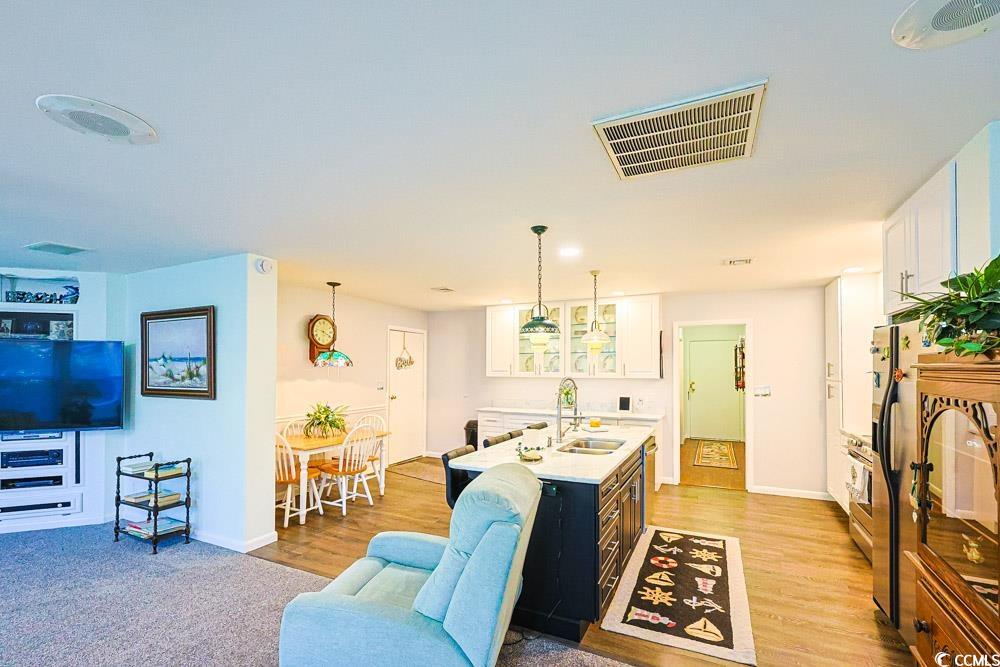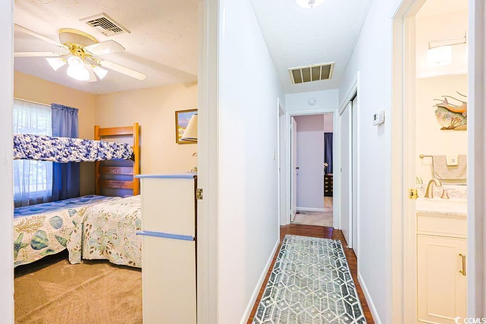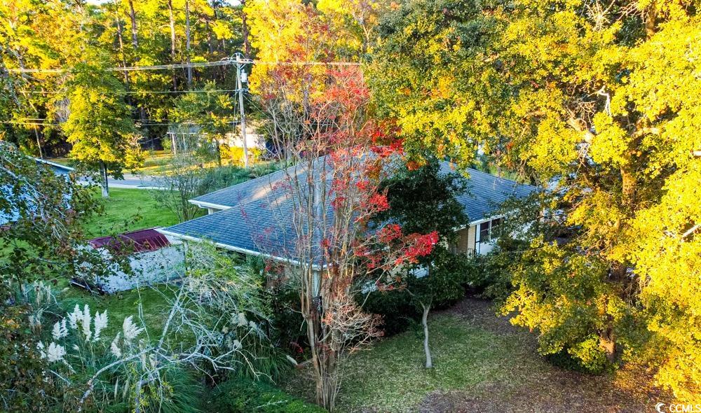 Just a half mile from the shore, this beautifully updated 3-bedroom, 3-bath mid-century home perfectly blends timeless charm with modern comfort. Ideally situated on a desirable corner lot, this residence offers a relaxed coastal lifestyle within walking distance of the beach and downtown Myrtle Beach attractions. Step inside to discover open living spaces and a thoughtfully designed layout that encourages easy living and entertaining. The inviting Carolina room is perfect for morning coffee or quiet afternoons, while the versatile flex area offers the ideal space for a guest suite, home office, or hobby room. Outside, unwind to the soothing sounds of the water feature and waterfall or enjoy evenings on the wraparound patio surrounded by lush palms. With its warm, welcoming atmosphere and the added benefit of no HOA, this home captures the essence of effortless beachside living in one of Myrtle Beachs most convenient locations.