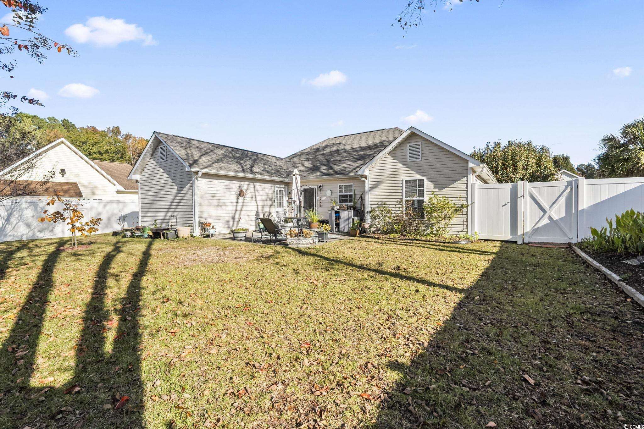 Coastal Comfort & Modern Upgrades Move-In-Ready 3BR Home in 57th Place Discover easy living just minutes from North Myrtle Beach in this beautifully updated 3-bedroom, 2-bath home at 407 Turtlehead Drive. Set in the welcoming community of 57th Place, this property blends modern finishes, a functional layout, and low-maintenance living in a location that keeps you close to everything. Step inside to an open, light-filled interior anchored by wide-plank Moran Oak LVP flooring throughout the main living areas. The kitchen features Alaska White granite countertops, stainless steel appliances, and a seamless connection to the dining and living spaces perfect for gatherings or quiet evenings at home. The split-bedroom layout ensures privacy, with a comfortable primary suite offering a dual-sink vanity and a stylish walk-in shower finished in Calacatta-marble-inspired tile. Two additional bedrooms provide flexibility for family, guests, or a home office. The fully fenced backyard is a true highlight, featuring an oversized patio ideal for outdoor dining, grilling, or simply relaxing in the Carolina sunshine. A 1-car garage, 2020 roof, 2-year-old water heater, and transferable termite bond give added confidence and convenience to the next owner. With quick access to Hwy 57, Hwy 31, and Hwy 9, you're never far from beaches, golf, shopping, dining, and the entertainment of North Myrtle Beach all while enjoying the quiet charm of a tucked-away neighborhood. This home offers the perfect blend of comfort, style, and location. Schedule your private showing today and see why 407 Turtlehead Drive is coastal living made easy.