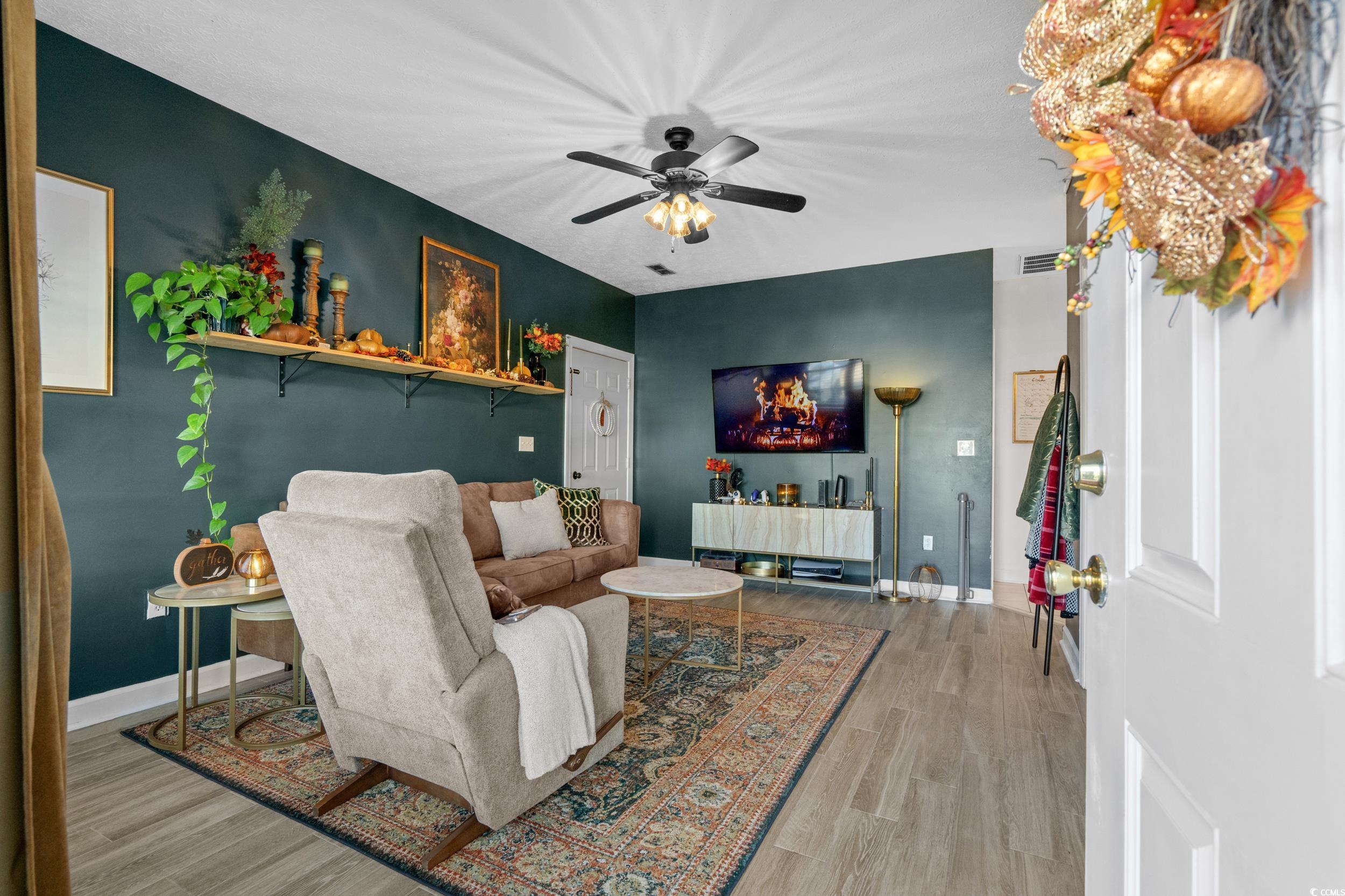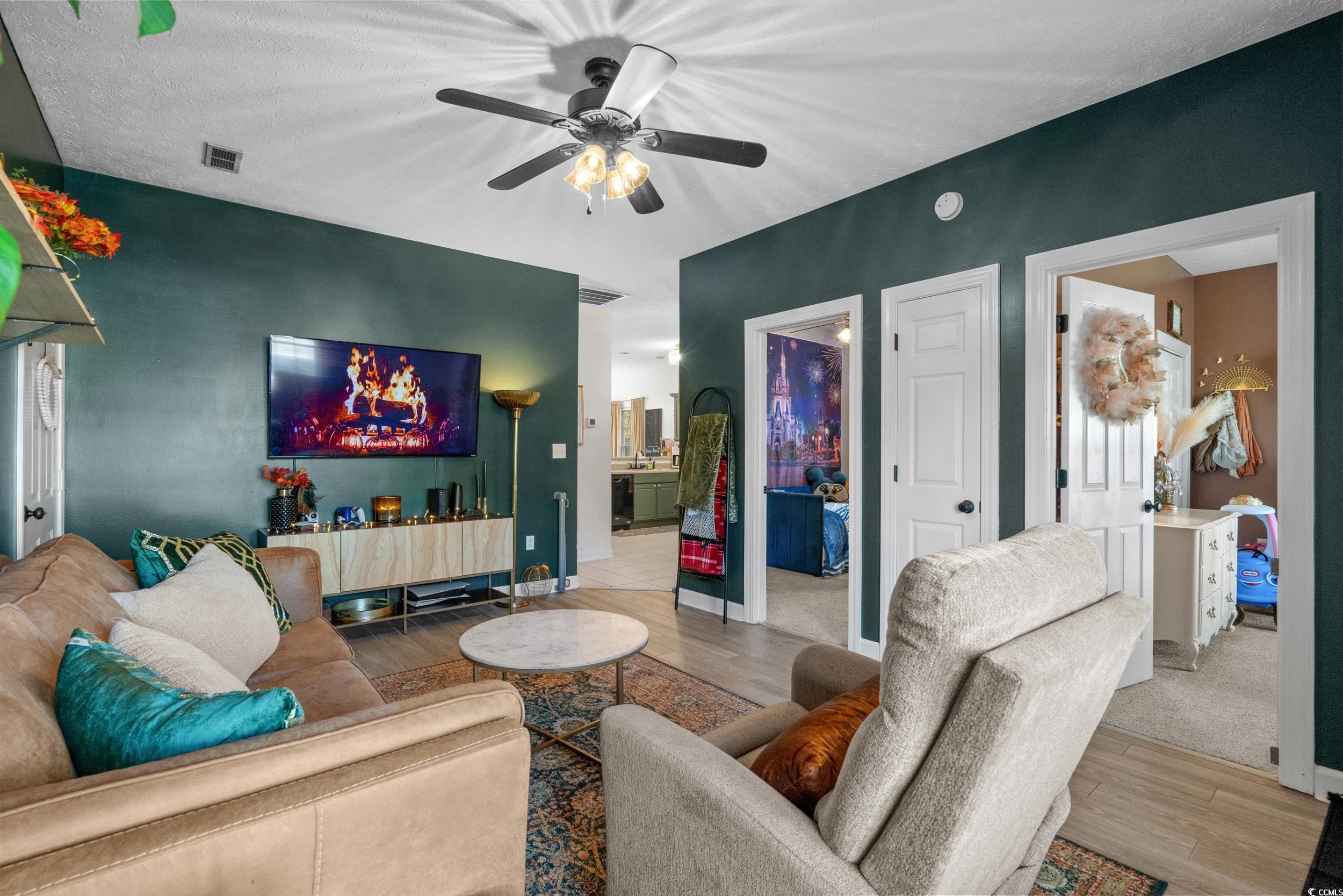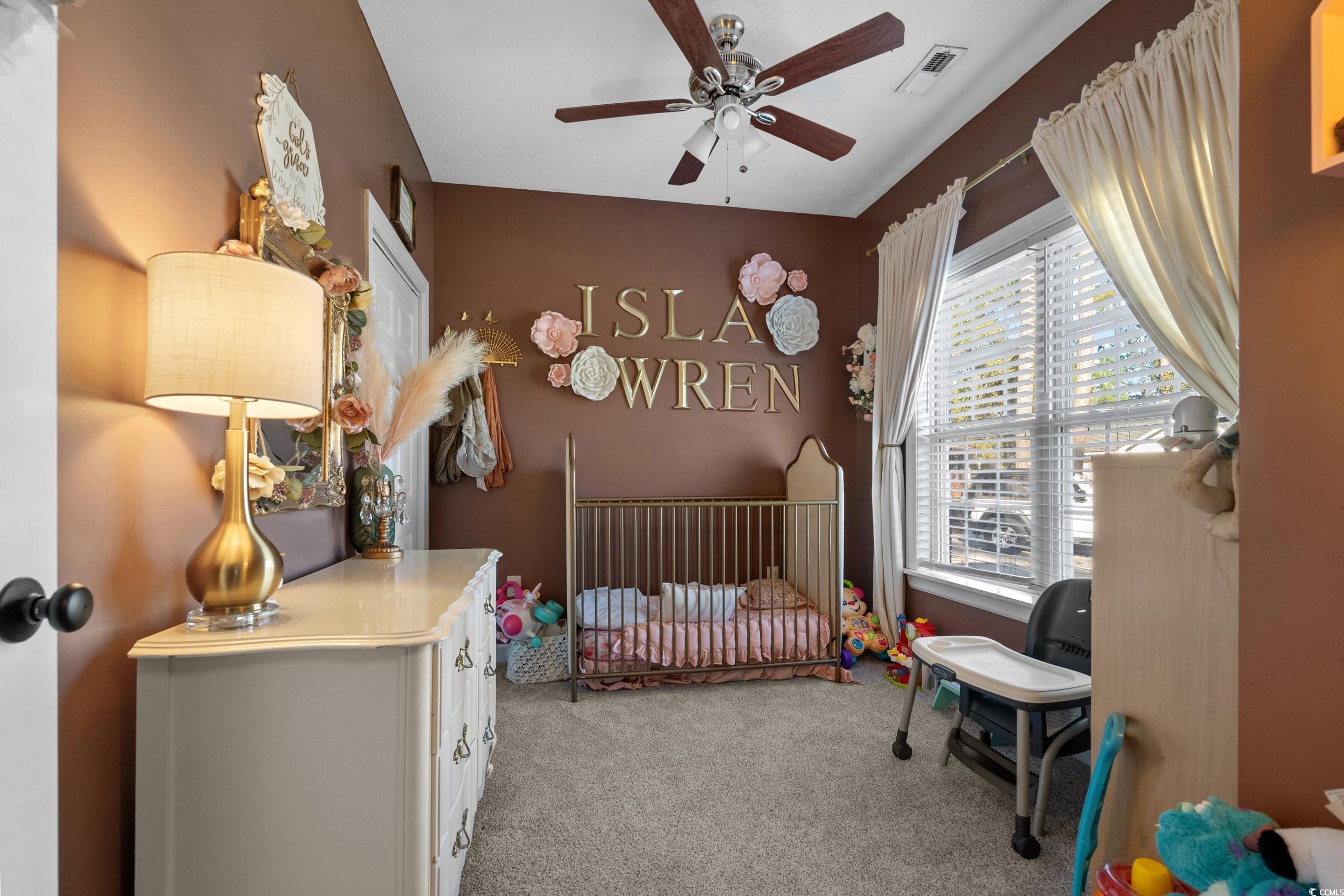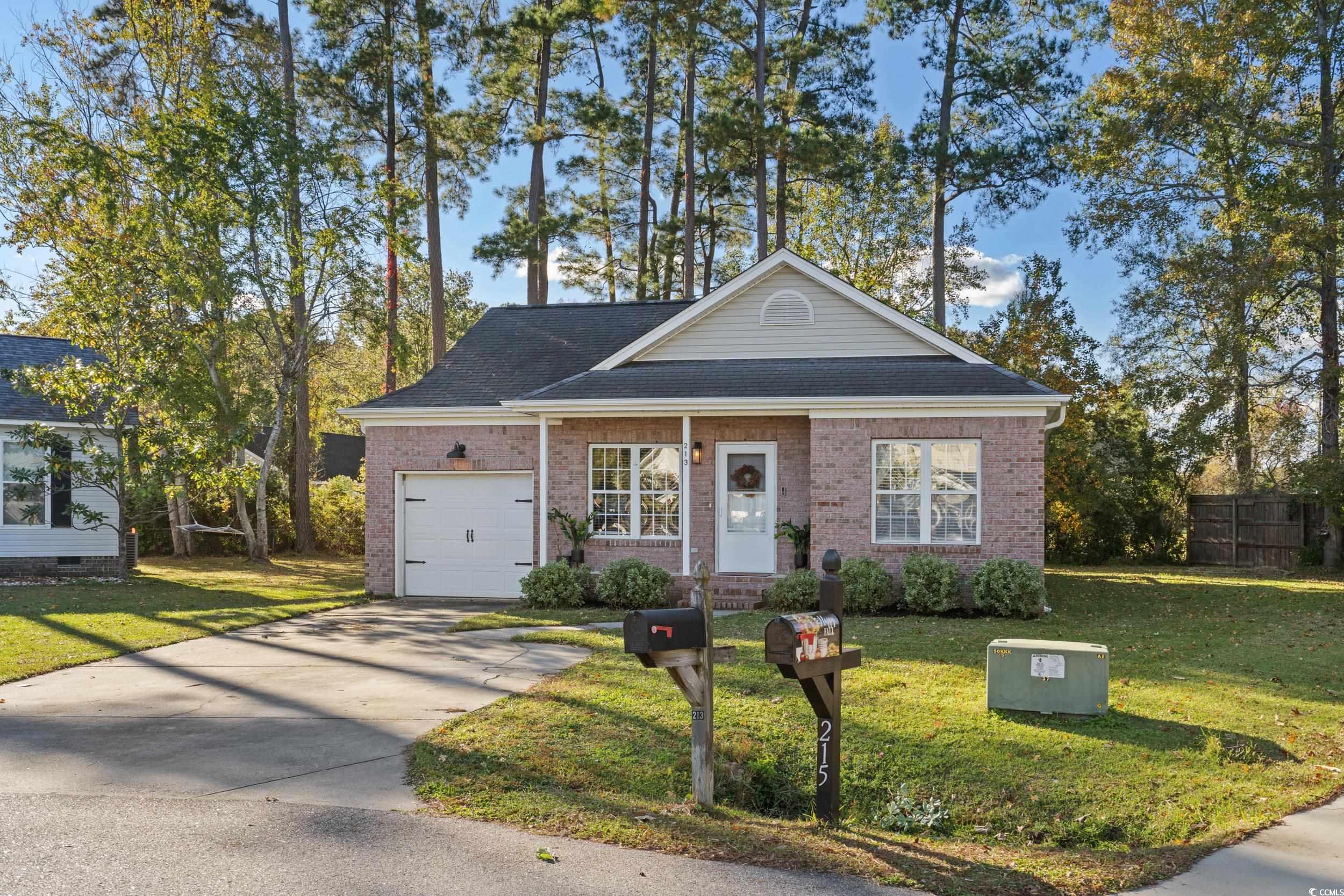 Bring your buyers to see this charming 3-bedroom, 2-bath home located on a cul-de-sac in the desirable Stonebridge subdivision! This lovely property offers a split-bedroom floor plan with ceiling fans in all bedrooms, the dining room, and the living room. The kitchen features tile flooring that continues through the bathrooms, and the living room boasts new wood-look tile flooring, giving the home a fresh, modern touch. Additional updates include a new stove August 2024 and a new HVAC compressor installed July 2025. The spacious, wooded backyard is perfect for entertaining family and friends. An outdoor storage shed conveys with the home, and the attached 11x23 one-car garage offers built-in wood shelving for extra storage. Enjoy the convenience of being close to Market Common, fine dining, shopping, and just minutes from the beach all with NO HOA fees!