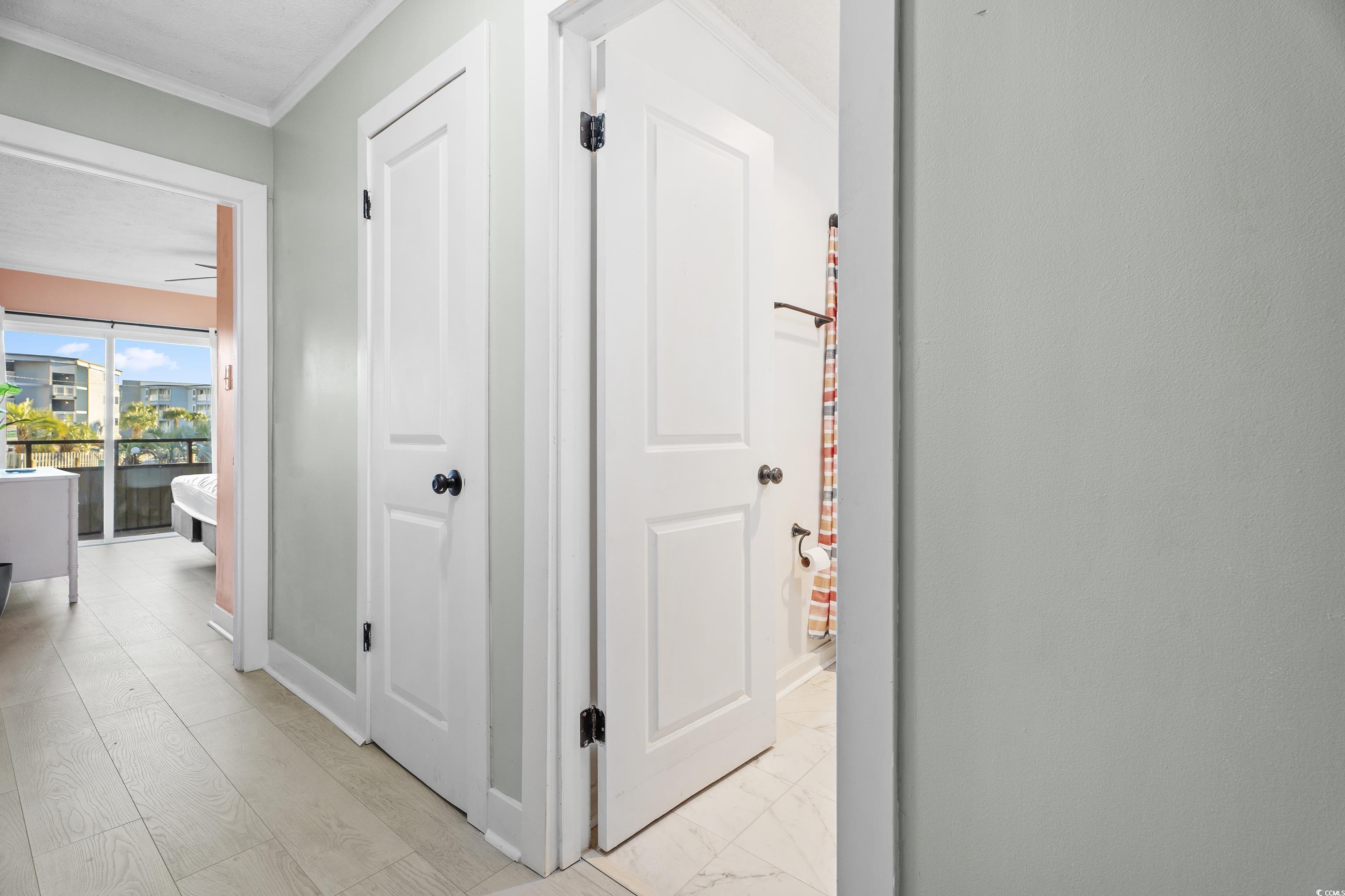 This easily accessible, first-floor condo offers convenience and modern upgrades. The unit features two bedrooms and two bathrooms, and has been fully renovated with fresh paint, new luxury vinyl flooring, and updated bathrooms. The bright living room opens directly onto a screened-in porch, providing a perfect spot to relax in the evenings and enjoy music from nearby Ocean Annie's. This property presents an excellent opportunity for either a full-time residence or an investment property. Located just a short walk from the beach and popular spot Ocean Annie's, Mariners Cove is a highly desirable community. Residents and guests can enjoy amenities such as a spacious outdoor pool, a sun deck, and a clubhouse. The community is conveniently situated near numerous bars and restaurants and is only a few minutes' drive from some of the best dining, shopping, golf, and entertainment options the Grand Strand has to offer. Both short- and long-term rentals are permitted.
