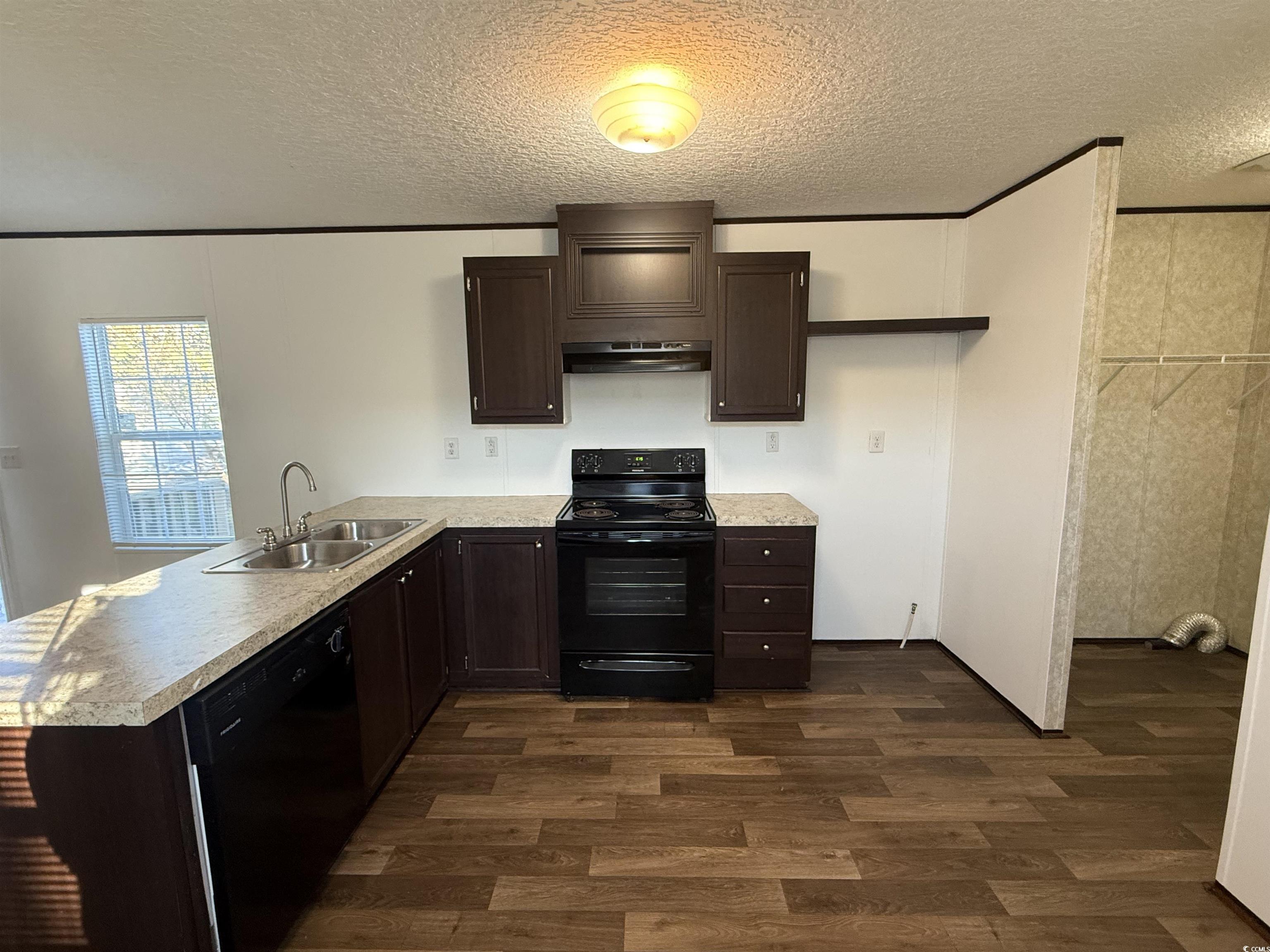 Welcome to your new home in Market Village! This beautifully maintained single-section home sits on a desirable end lot, providing extra privacy and breathing room. Inside, you'll find an open layout with laminate flooring running throughout the entire home along with other modern finishes, including sleek black kitchen appliances, a double-basin stainless steel sink, and range hood. The conveniently located laundry room is situated just off the kitchen, and the split-bedroom floor plan offers excellent separation and comfort. The primary bedroom features its own en-suite bath, creating a private retreat. This turn-key home is truly move-in ready, offering effortless, low-maintenance living in an unbeatable locationjust minutes from The Market Commons shops and dining, Myrtle Beach International Airport, and approximately a 7-minute drive to the nearest public beach access. Experience coastal living at its best in a home that feels like new!
