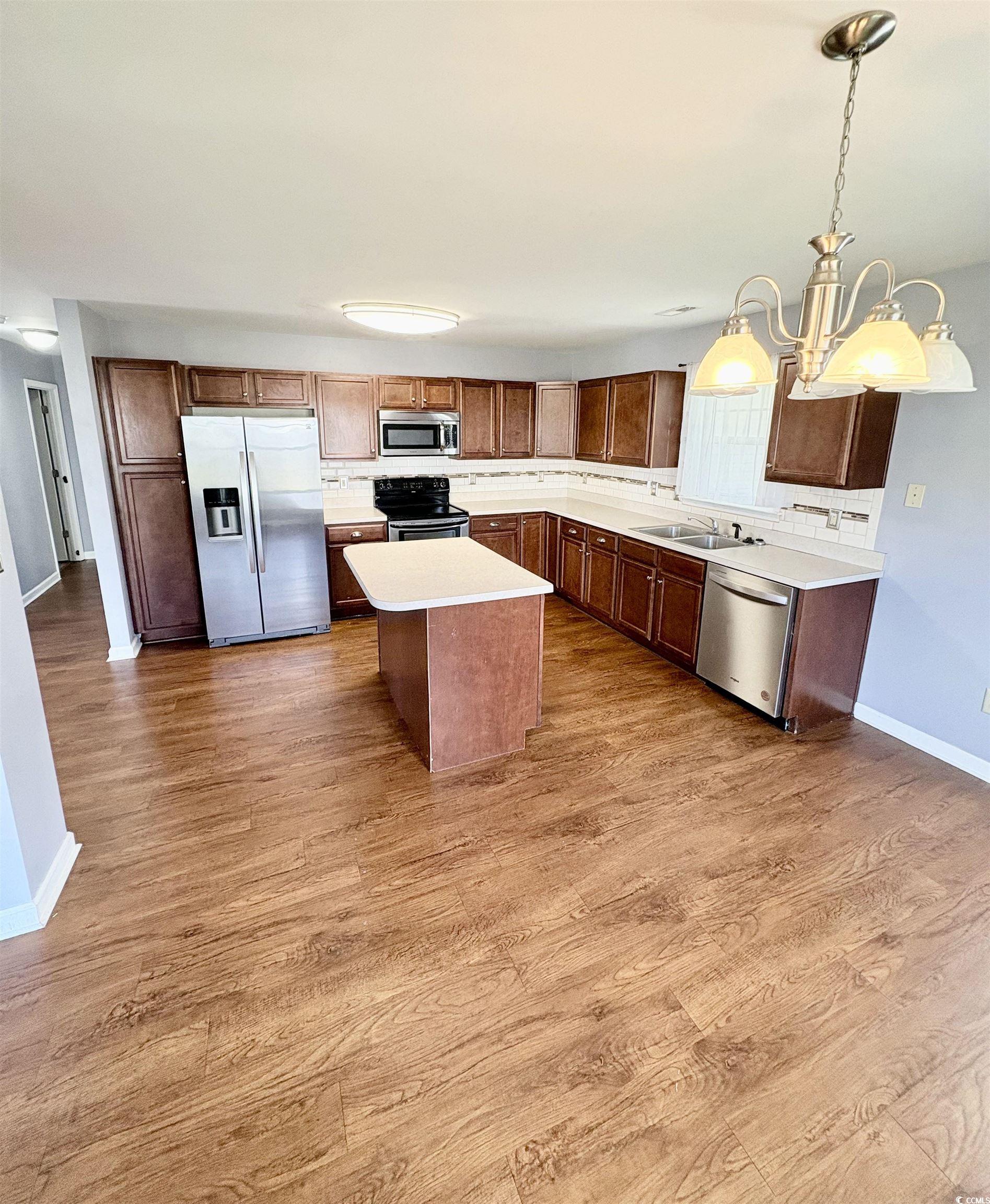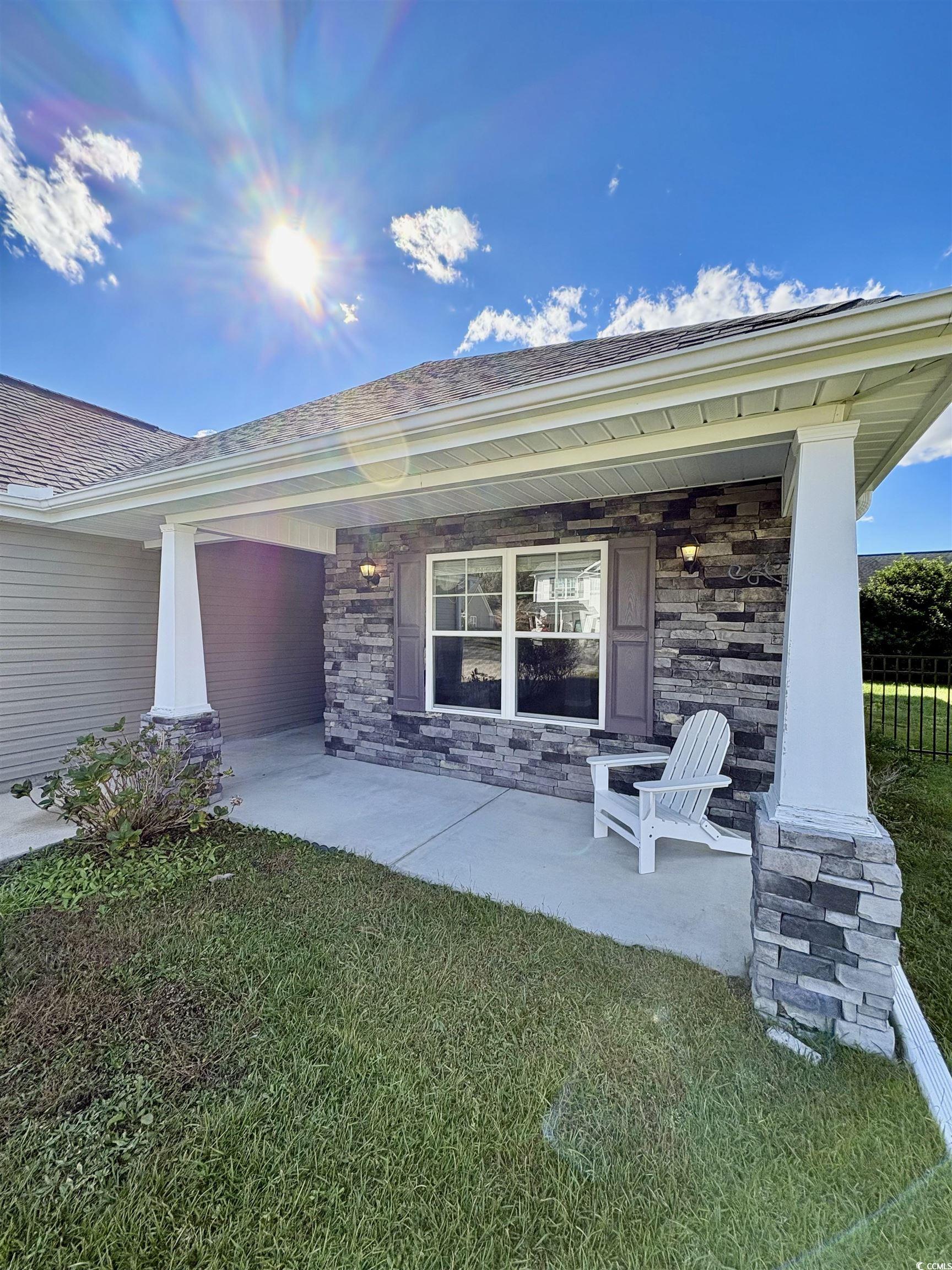 Welcome home to this CHARMING three bedroom, two bath home located in Pine Needles Estates! This house sits on 0.18 acres and has a two car garage, with an extended driveway. The covered front porch gives this home so much character with 2 large columns and stone veneer accents! The spacious living room has a ceiling fan and four large picture windows letting in tons of natural light, perfect for entertaining the whole family! The kitchen is equipped with stainless steel appliances, tiled back splash, tons of cabinet space, dining room combo, a movable work island/breakfast bar. The master bedroom is located in the rear of the house with ceiling fan, walk in closet, and large picture windows with views of the back yard. The private master bath has a shower/tub combo, vanity, and large picture window letting in natural light. The other two rooms are located down the hall from the master bedroom. Both have ceiling fans and share the hall bathroom with vanity and shower tub combo. Step outside the kitchen door and you have the sizable rear covered patio, that can also be screened in for extra living space, or the flexibility to do as you please! Pine Needles Estates is located far enough away from the summer time crowds of Myrtle Beach, yet close enough to all of the attractions, dining and shopping that North Myrtle Beach has to offer!! Call your agent today to book a showing of this quaint country home! Some images are virtually staged.