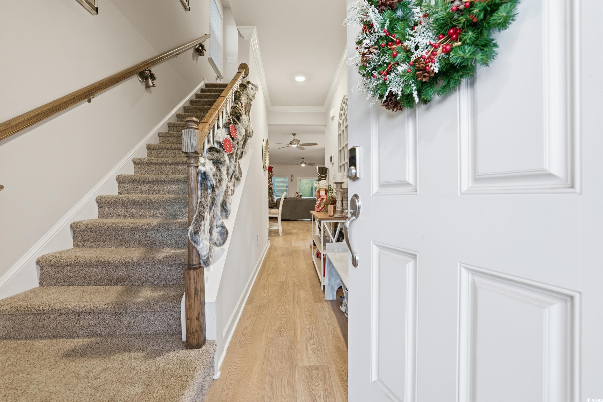 This 4-bedroom, 3-bath energy-efficient home in the sought-after Clear Pond community of Myrtle Beach offers 2,352 sq. ft. of modern comfort, space, and style. Built in 2023, this home feels brand new and showcases an open-concept layout designed for both entertaining and everyday living. The spacious living room flows seamlessly into a bright, upgraded kitchen featuring pendant lighting, a large island, smart black stainless appliances, a walk-in pantry, and ample cabinetry, the perfect setting for family gatherings. On the main level, youll also find a guest bedroom and full bath, ideal for visitors, home office or even Mom! Upstairs, the primary suite serves as a luxurious retreat. The highlight is an impressive custom walk-in closet with floor-to-ceiling shelving, a dressing table, and a chandelier, a beautifully converted fifth bedroom offering both elegance and functionality. There's even room for the shoes! The primary bath includes a tiled shower and dual vanities for added comfort with a private commode. Two additional bedrooms and a second full bath, also with dual sinks provide plenty of space for family or guests. The laundry room is conveniently located upstairs, eliminating the need to carry clothes up and down the stairs. A large loft area overlooking the front of the home offers flexibility as a playroom, sitting area, or home office. Additional upgrades include fresh interior paint, ceiling fans with lights throughout, three additional closets, climate-controlled attic storage with spray foam, garage shelving, and a white privacy fence enclosing a backyard with no homes directly behind for added privacy. A 2-car garage and smart home features, including a smart pet door and smart kitchen appliances, provide added convenience. The Clear Pond community offers resort-style amenities including two swimming pools, a fitness center, sidewalks, playgrounds, and walking trails. Conveniently located near top-rated schools, shopping, dining, medical facilities, the airport, and beautiful Myrtle Beach beaches, this home blends lifestyle, comfort, and location. Move-in ready and priced below market value - skip the wait for new construction and start enjoying your new home today...just in time for the holidays! Ladies, this is a dream come true!