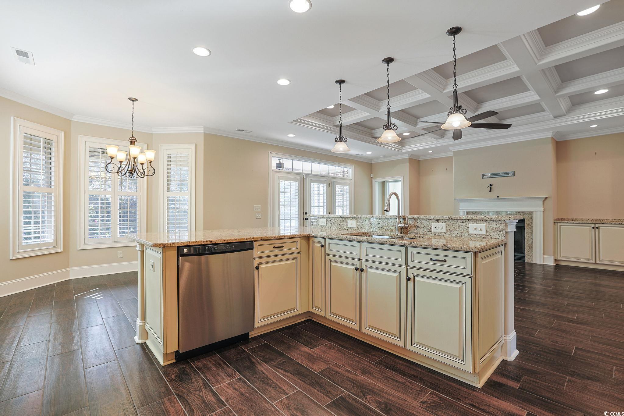 Introducing this upscale 3 bedroom 2.5 bath home located in the popular & gated Seaside Plantation community. As you enter this captivating home you take notice of the elegance of this bright open floor plan that features wood look tile & carpet flooring, plantation blinds, smooth flat ceilings with crown moulding, a guest powder room, a graceful formal dining area with a single step tray ceiling & wainscoting, a comfortable living room with a coffered ceiling along a cozy gas log fireplace, showcases a 3 panel patio door that opens up to the enchanting screened-in back porch. The modern kitchen is equipped with stainless steel appliance package with a gas range, granite counter tops, cabinets topped with crown moulding, tile back splash, a breakfast bar, a kitchen pantry, and a sunlit breakfast nook. The primary bedroom offers a single step tray veiling with a fan, a large walk-in closet, private access to the primary bath hosting vanity with dual sinks, a water closet, and a deluxe step-in shower. This delightful home is completed with two additional bedrooms, a full guest bath, a laundry room, and a two car side load attached garage. This home affords you easy access to the beach and golfing along with all of the other activities and happenings in North Myrtle Beach & Myrtle Beach including fun eateries, award winning off-Broadway shows, public fishing piers, and intriguing shopping adventures along the Grand Strand. Conveniently located to your everyday needs, including grocery stores, banks, post offices, medical centers, doctors offices, and pharmacies. Check out our state of the art 3-D Virtual Tour. Some photos have been virtually staged.