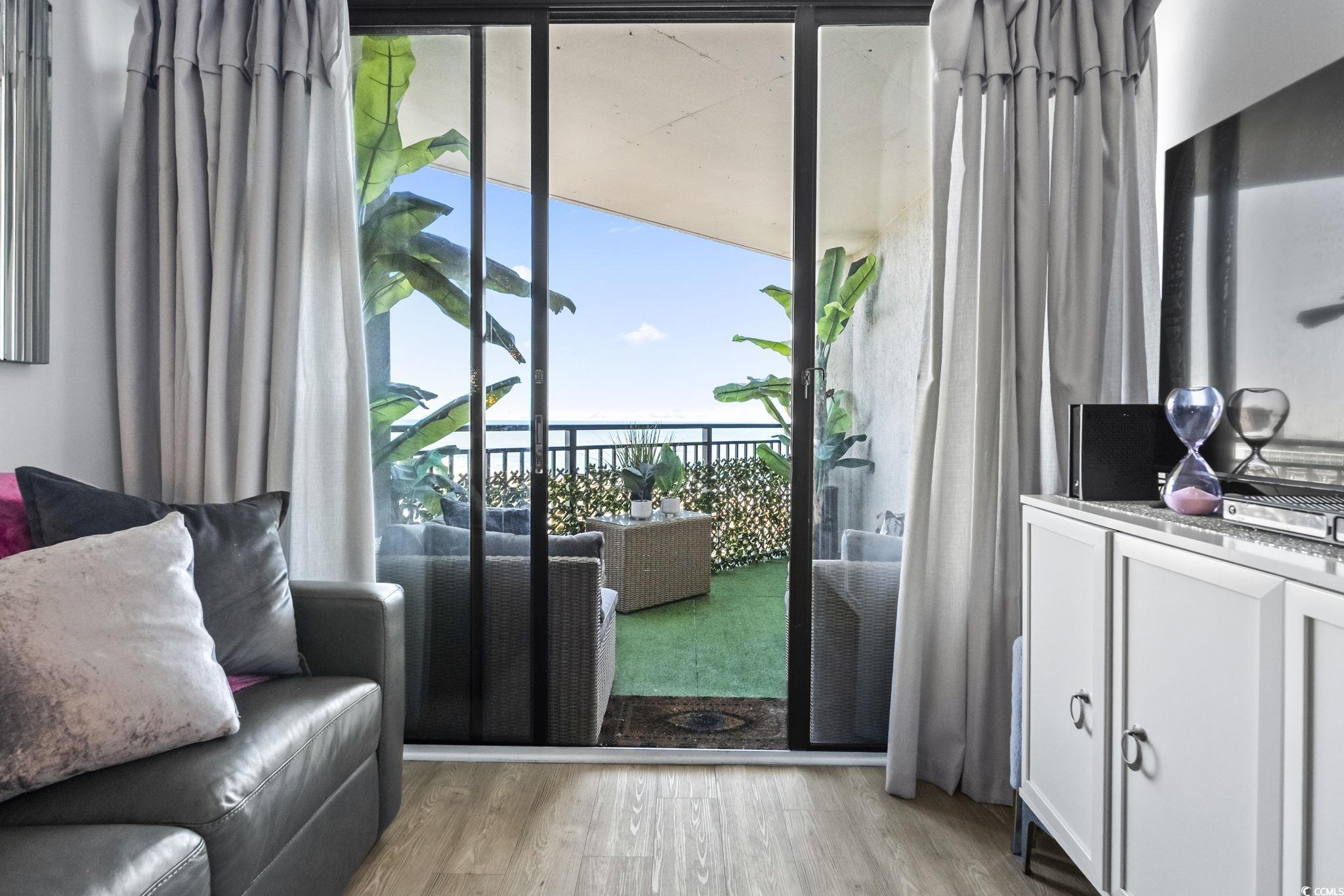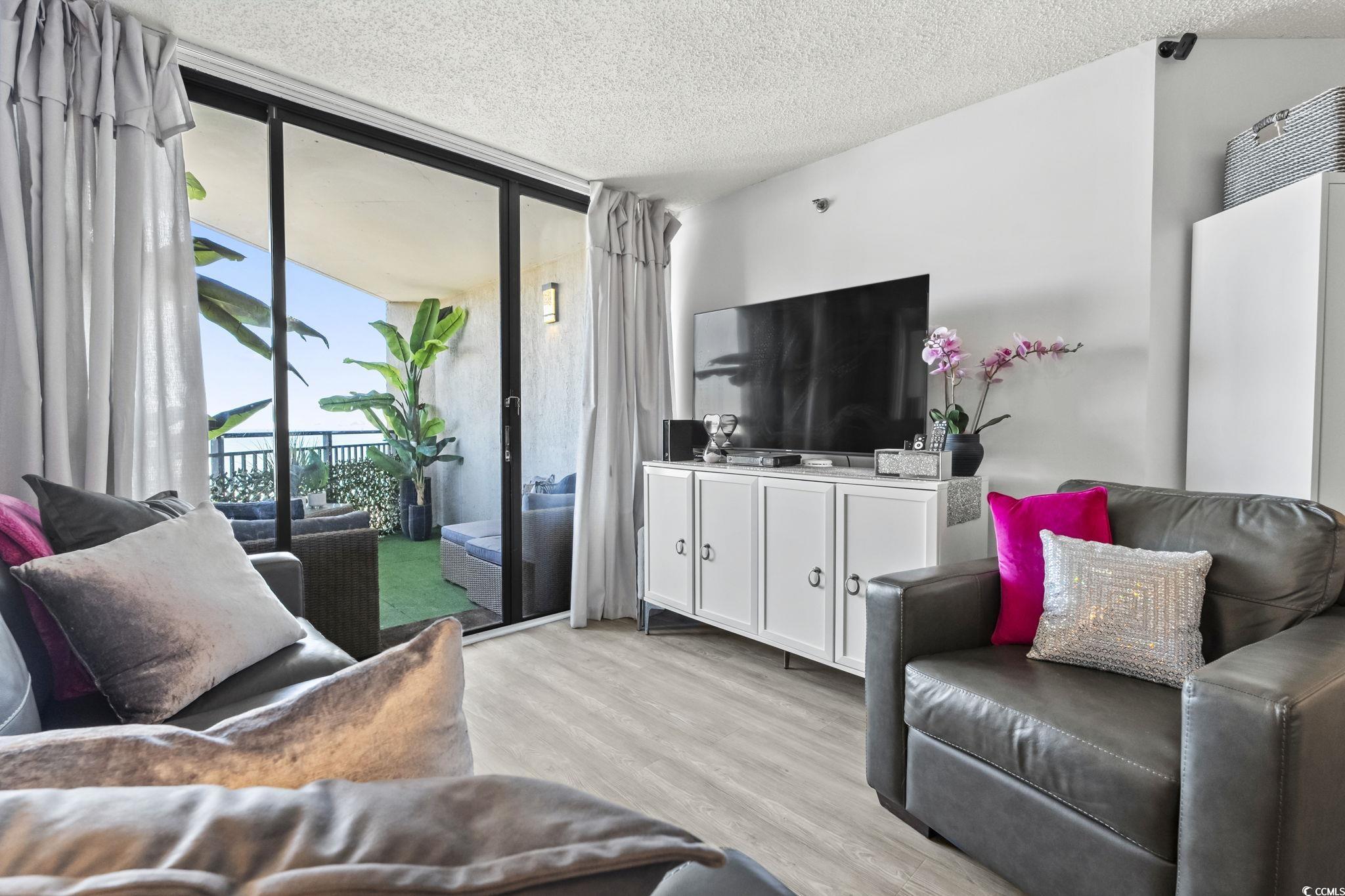 Experience coastal sophistication in this beautifully furnished 9th-floor residence at Ocean Forest Plaza, ideally located in the exclusive Golden Mile of Myrtle Beach. This elegant 1-bedroom, 1-bath condominium showcases stunning side ocean views from a private balcony and an inviting open-concept design that blends comfort with style. Thoughtfully furnished and impeccably maintained, this home offers a serene coastal ambiance perfect for refined beach living or a luxurious second home. Enjoy an exceptional array of resort-style amenities, including an indoor pool and hot tub, outdoor pool, fitness center, sauna, and owners laundry on the 7th floor. Steps from the sand and moments from fine dining, boutique shopping, and entertainment, this residence offers the perfect balance of relaxation and sophistication.