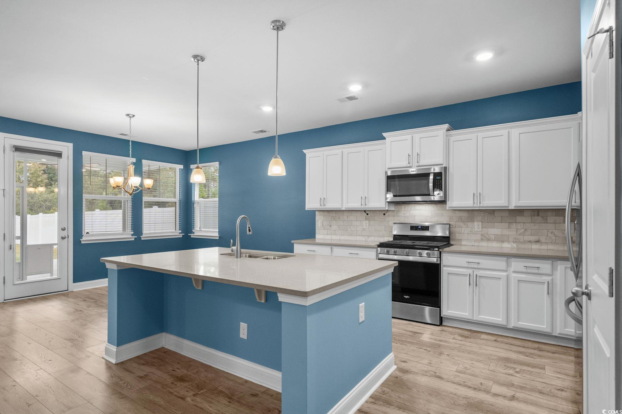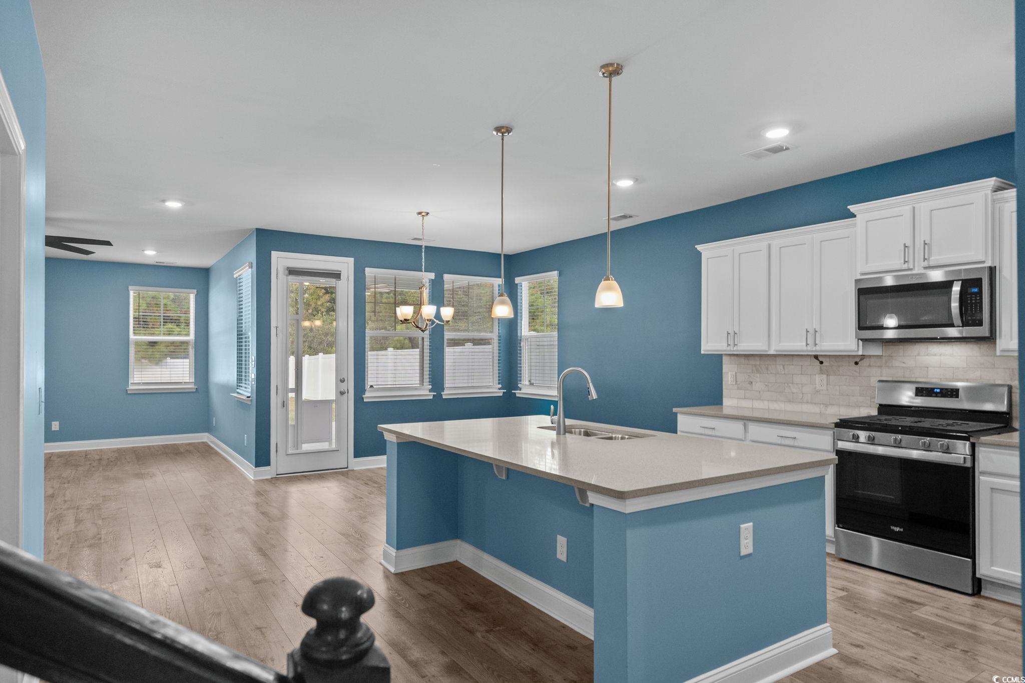 8068 Fort Hill Way is a spacious 5 bedroom, 3.5 bath home in The Parks of Carolina Forest. One bedroom is currently used as an office. This home is beautifully maintained with a white vinyl privacy fenced yard and screen room located off the back. Inside is an easy, open concept floor plan that is spacious for all family activities and entertaining. The kitchen is equipped with a gas range, a pantry, beautiful quartz countertops, an oversized island, and ample beautiful white cabinetry with gas range and modern stainless appliances. The 12x14 non conforming bedroom is being used as an office and is on the main level. The primary bedroom is also located on the main level and has a large walk-in closet, walk-in shower and also separate tub and dual vanities. Upstairs the home has three bedrooms and two full bathrooms with a loft common area approximately 14 x 14. Stepping out from the screened porch, youll find a spacious, privacy-fenced backyard complete with a patioperfect for grilling, relaxing, and spending quality time with family. Living in Carolina Forest also means enjoying top-rated schools, outstanding resort style community amenities, and an unbeatable location. Schedule your showing today!