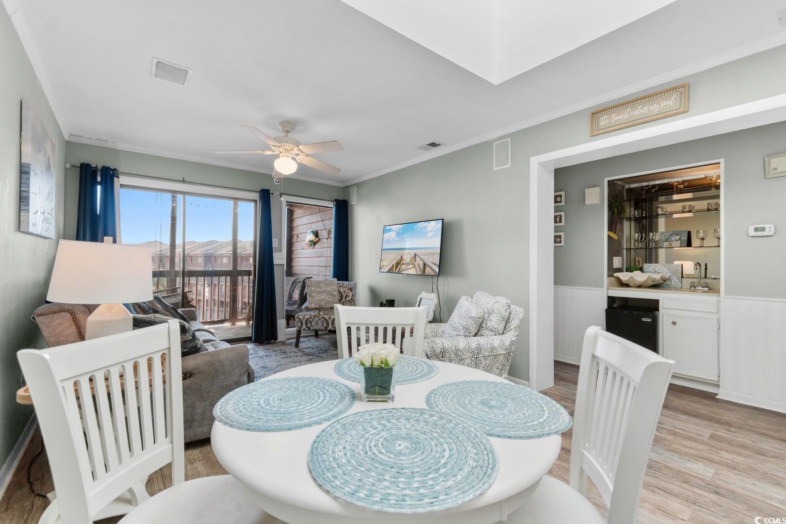 If you've been dreaming of an easygoing place by the beach, this top-floor condo might be exactly what you've been waiting for. It sits just a row back from the ocean, so you can still catch those refreshing sea breezes and even a glimpse of the water, all while enjoying the peace of being slightly tucked away. The moment you walk in, the natural light from the skylight really brightens the whole space, giving it a relaxed, open feel. The layout is split for privacy, and the mix of tile, laminate, and brand-new carpet in the bedrooms makes everything feel clean and comfortable. The kitchen has everything you need---stainless steel appliances, granite countertops, and plenty of room to cook without feeling cramped. Since the condo comes fully furnished, you can settle in and start enjoying the beach life right away. One of the standout features is the two newer screened-in balconies. They overlook Ocean Boulevard, which means you've got the perfect spot to unwind, people-watch, or soak in the local energy whenever North Myrtle Beach has something going on. Updates like the 2022 HVAC system and the newer washer and dryer (conveniently located in the owners closet just across from the front door) make daily living even easier. And when you're ready to head out, everything is close by---Main Street's restaurants, nightlife, shopping, and yes, the famous S.O.S. events. The community itself offers two pools, hot tubs, tennis courts, and an HOA that covers most of the essentials except electricity and H06 insurance. It's also pet-friendly for owners, golf-cart friendly, and welcoming to both short- and long-term rentals. Whether you're planning to live here full-time, use it as a getaway, or share it as a rental, this condo combines location, convenience, and that laid-back coastal vibe that makes North Myrtle Beach feel like home!