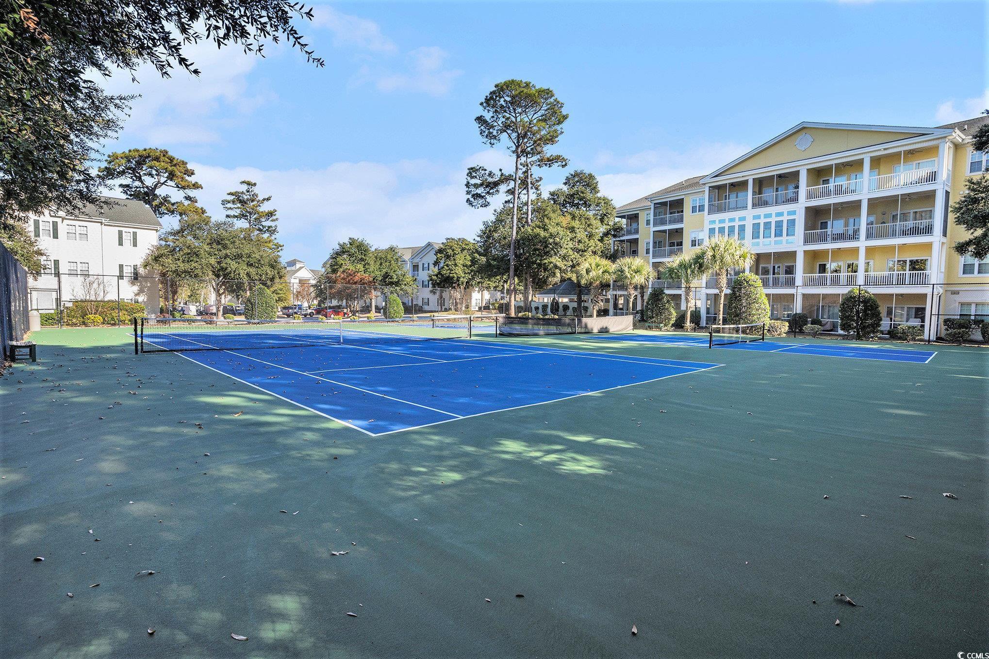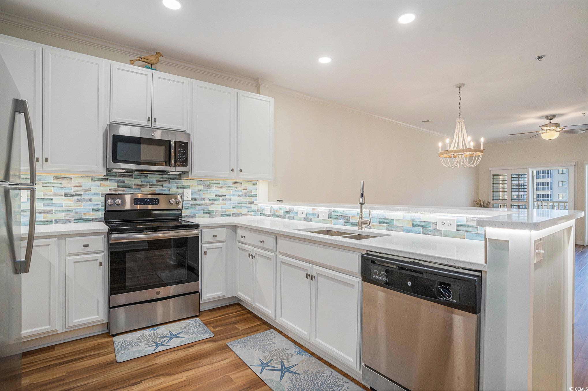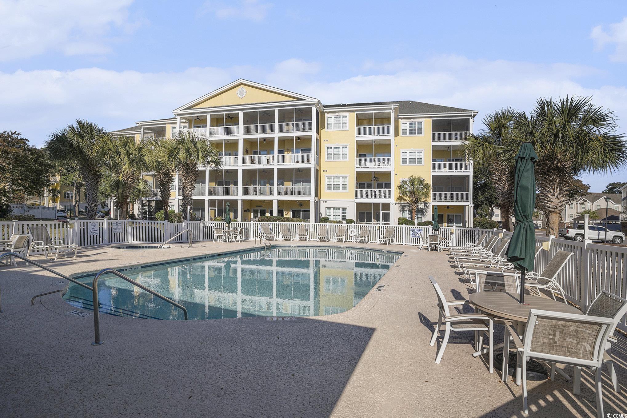 Discover coastal luxury in this pristine 3-bedroom, 2-bath, first-floor residence, located in one of Ocean Keyes' newest and most sought-after buildings. This unit, lovingly maintained as a second home, is move-in ready. Enjoy exquisite details like custom finished kitchen cabinetry, a lighted breakfast bar, LVP flooring in the living area, and elegant plantation shutters throughout. The expansive screened-in porch offers tranquil lake views and is equipped with roll-down blinds for comfort. This building provides unique advantages, including elevator access from the secure under-building parking garage and the rare ability to store a golf cart on-site from day one. This condo is a versatile must-see, perfect for a primary home, a relaxing vacation getaway, or a smart investment opportunity. The prestigious, gated Ocean Keyes community is perfectly positioned just a short stroll from the ocean and the vibrant Main Street area. Residents enjoy resort-style amenities including multiple pools, tennis courts, and pickleball, ensuring a premier beach lifestyle.