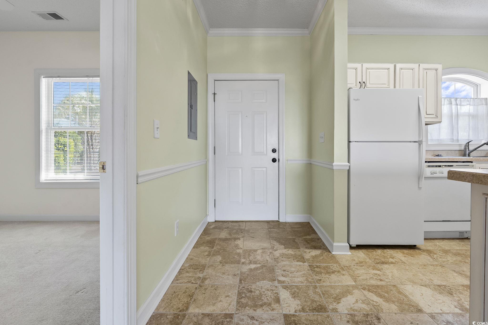 Discover effortless coastal living in this beautifully maintained 2-bedroom, 2-bathroom first-floor condo at 3973 Forsythia Ct., Unit 103, in Myrtle Beach. Located in the highly sought-after Azalea Lakes community, this inviting home offers a bright, open floor plan filled with natural light, a spacious living area, and a freshly upgraded kitchen featuring new wellborn cabinets, brand-new countertops, a replaced refrigerator, a new tile backsplash, and tile flooring updated just five years ago. The primary suite provides a comfortable retreat with a walk-in closet and private en-suite bath, while the second bedroom is ideal for guests or a home office. Additional updates include a washer and dryer that the use of it is only equivalent to one year and recently cleaned carpeting throughout the home. This condo has never been rented, ensuring it has been gently lived in and well maintained. Step outside to your private porch overlooking the peaceful pond, offering the perfect spot to relax and enjoy the serene surroundings. Azalea Lakes residents enjoy a variety of amenities, including indoor and outdoor pools, a fitness center, and scenic lakes. Conveniently located near shopping, dining, golf, and just minutes from the beach, this condo offers the ideal blend of comfort, convenience, and coastal charm. Schedule your showing today!