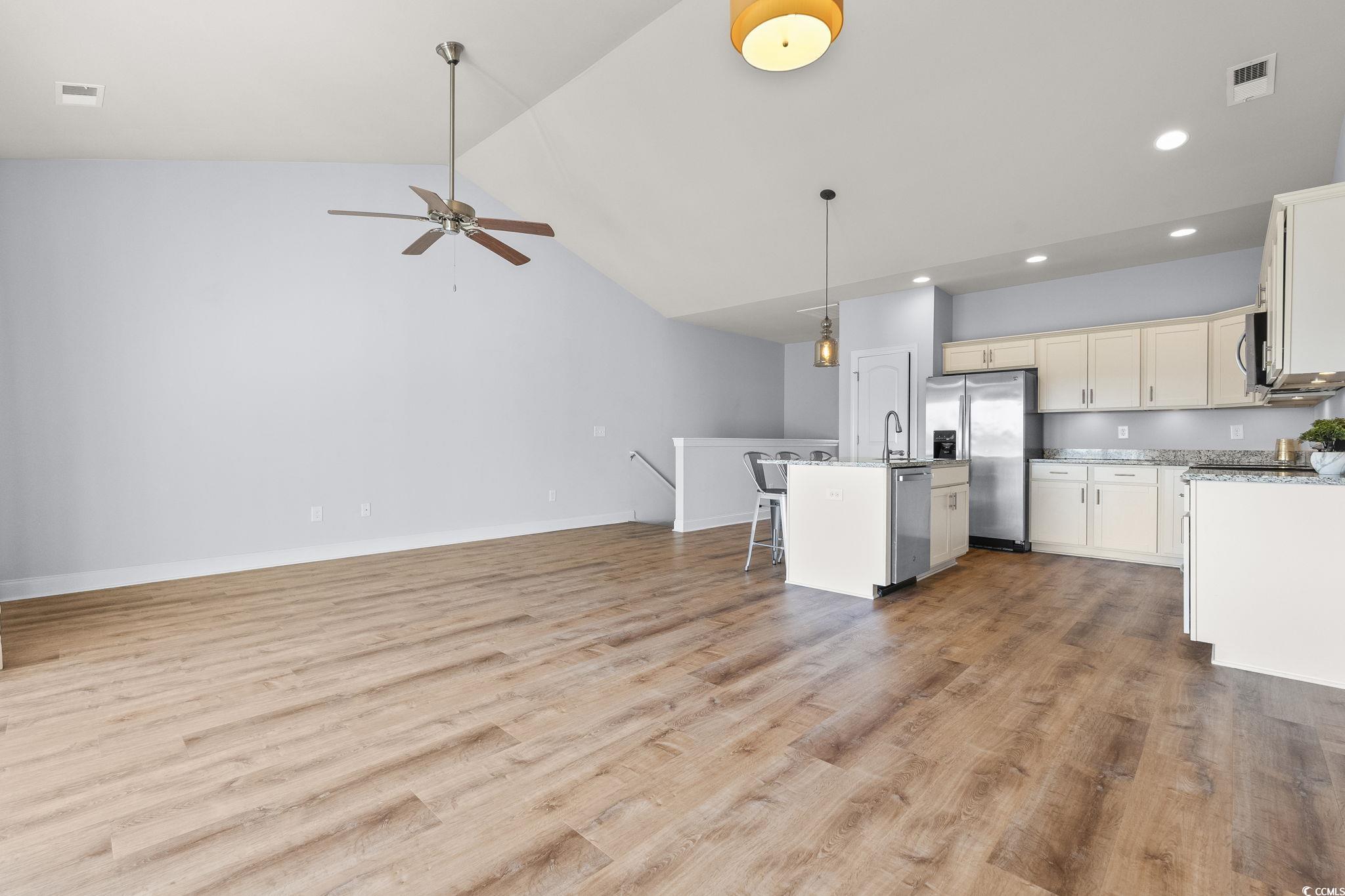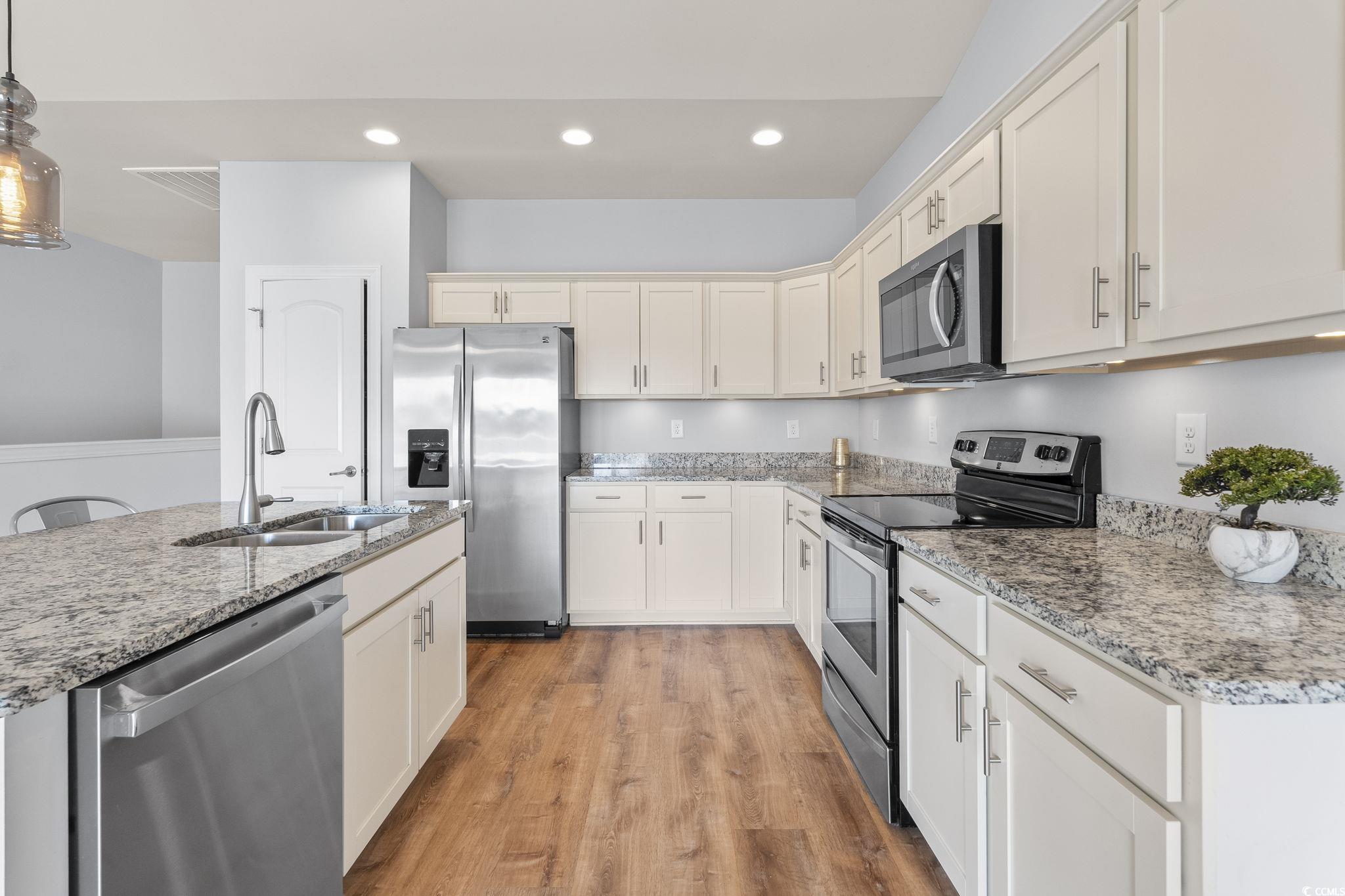 Beautifully updated townhouse-style condo in one of Myrtle Beachs most sought-after areasjust 4 miles from the ocean! This inviting townhome features a modern open-concept layout, a spacious owners suite, granite countertops in the kitchen and bathrooms, and stainless steel appliances. Enjoy low-maintenance, carpet-free living with luxury plank flooring installed in 2024. Additional upgrades include a new large-capacity washer and dryer, a stainless-drum dishwasher (2025), and a whole-house water filtration and purification system with ionic conditioner (2024). Relax outdoors on the generous private upper-level deck or the welcoming ground-level patio. The low monthly fee covers exterior maintenance, high-speed internet, professional pest control, and so much more. Whether youre seeking a full-time residence, a vacation escape, or an investment property, this townhouse offers the perfect Myrtle Beach retreat. The community also features convenient BBQ areas and multiple nearby parking spaces close to the unit in addition to your own private garage parking. Enjoy a peaceful setting while still being just minutes from new shopping centers, great dining, McLeod Hospital, medical offices, the YMCA, golf, the beach, and the Intracoastal Waterway. With quick access to Highways 31 and 17 off International Drive, this child- and pet-friendly neighborhood is ideal for a primary home or a vacation getaway. Contact your agent today to schedule a showing and step into your spotless new home at the beach!