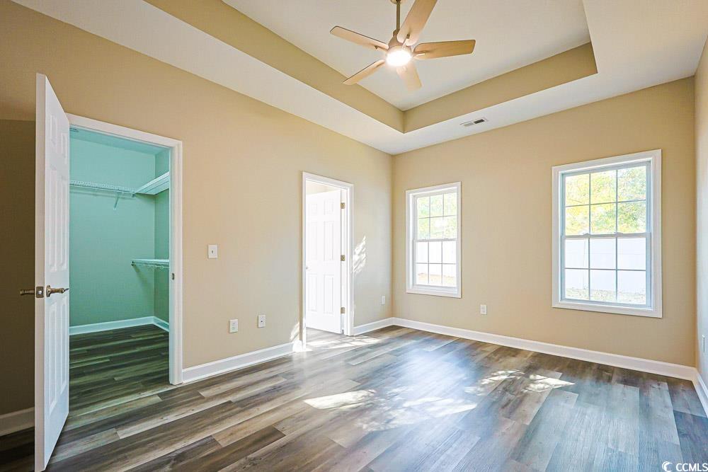 PrimaryBedroom: TrayCeilings, CeilingFans, MainLevelMaster, WalkInClosets