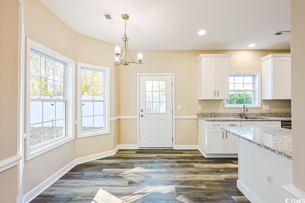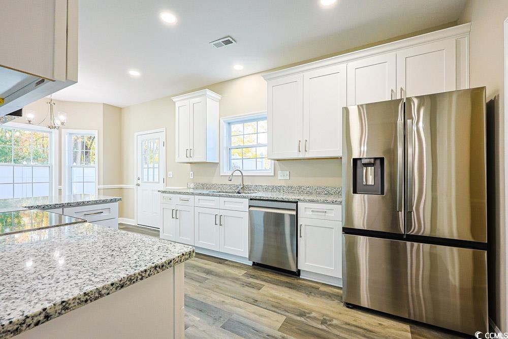 Beautifully updated and move-in ready, this 4-bedroom, 2.5-bath ranch-style home offers modern living in the highly desirable Carolina Forest High School district. Renovated from end to end in 2025, this 2,236 sq. ft. property showcases a long list of brand-new upgrades, including a roof, HVAC system, luxury vinyl plank flooring, custom kitchen cabinetry with granite counters, stainless steel appliances, updated lighting, refreshed bathrooms, new sliding doors, and interior paint throughout. The former garage has been thoughtfully converted into a versatile fourth bedroom with its own walk-in closet and plenty of natural lightideal for a private office, studio, or learning space. The main living area features soaring vaulted ceilings and a warm fireplace, creating an inviting atmosphere for gatherings and everyday relaxation. Situated on a .24-acre corner lot in Jessica Lakes, the home offers mature landscaping and a fenced backyard perfect for pets, outdoor living, or play. Just minutes from charming Historic Downtown Conwayrecognized by HGTV as one of the 40 Most Charming Downtownsand close to Coastal Carolina University, this location combines convenience with character. Completely updated and full of modern appeal, this home is a rare find in an established community. Dont miss the opportunity to see it!