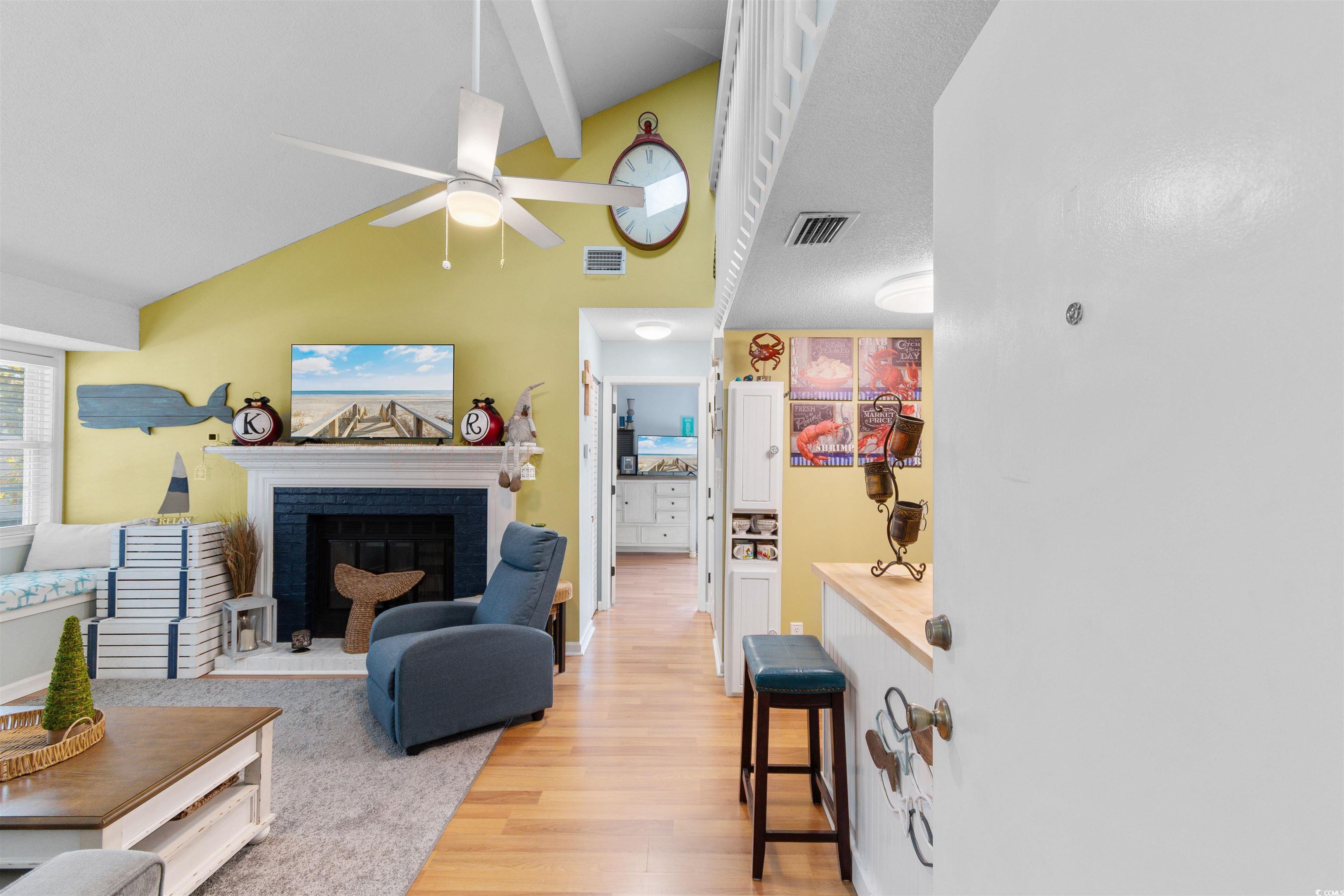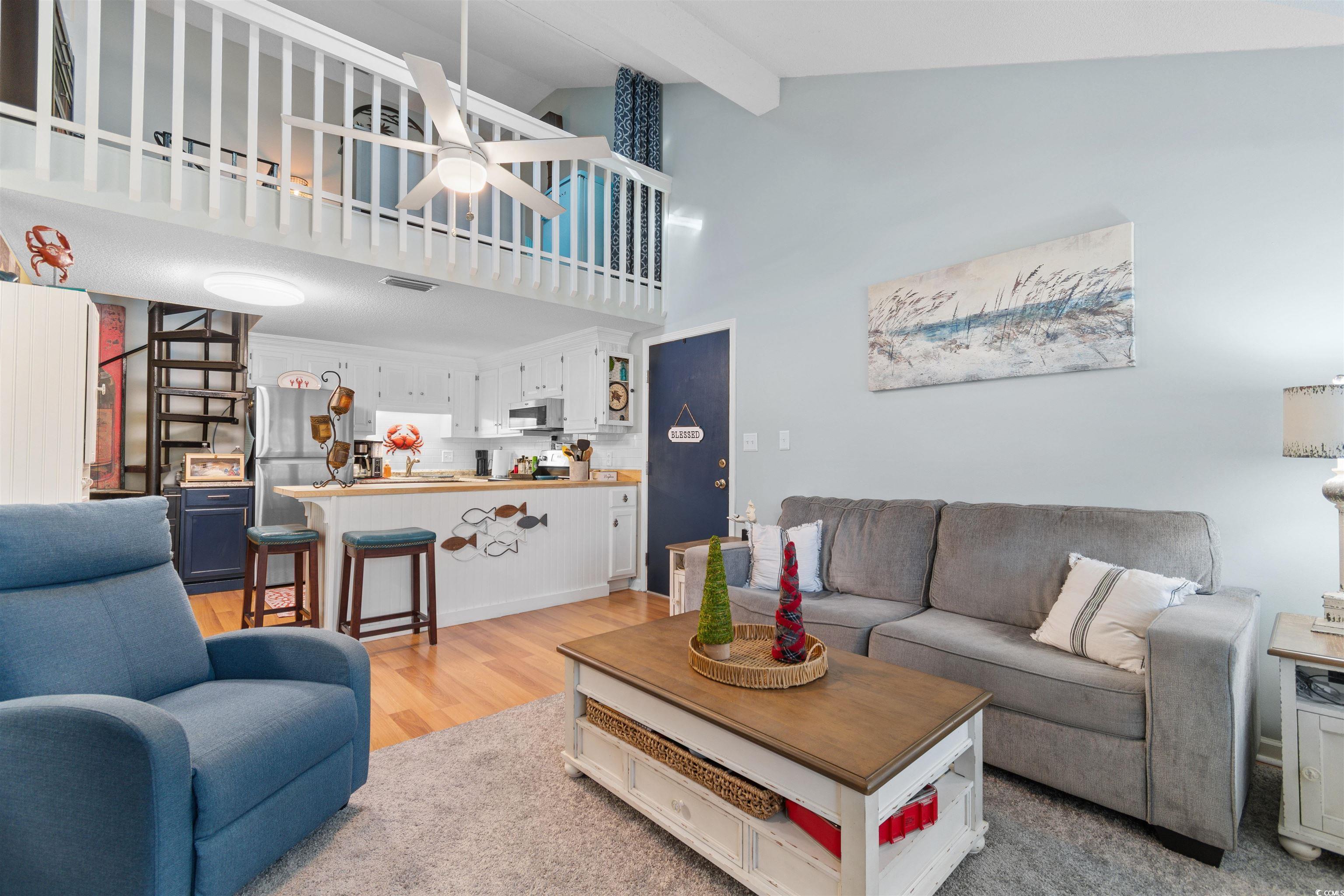 YOUR PERFECT BEACH RETREAT AWAITS! Super cute 2-bedroom, 2-bath condo in the heart of Myrtle Beach! If you're looking for a great condo just blocks from the beach, this is it. This charming end-unit features vaulted ceilings, a cozy fireplace in the living room, a tile backsplash and adorable kitchen design, an oversized closet in the primary bedroom, plus an in-unit washer and dryer. Enjoy your morning coffee on the private deck off the primary bedroom or unwind there in the evenings. Take the spiral staircase upstairs to a spacious loft currently being used as a second bedroom, along with a full second bathroom. Located in the popular community of Sterling Village III, where the HOA has approved construction for a brand-new community pool and has plans to add a community gate, making Sterling Village III a gated community soon. Just a few blocks from the beach and minutes from restaurants, shopping, and entertainmentthis condo truly has it all. This one wont last long! Schedule your showing today. Perfect as a primary home, vacation getaway, or investment property!