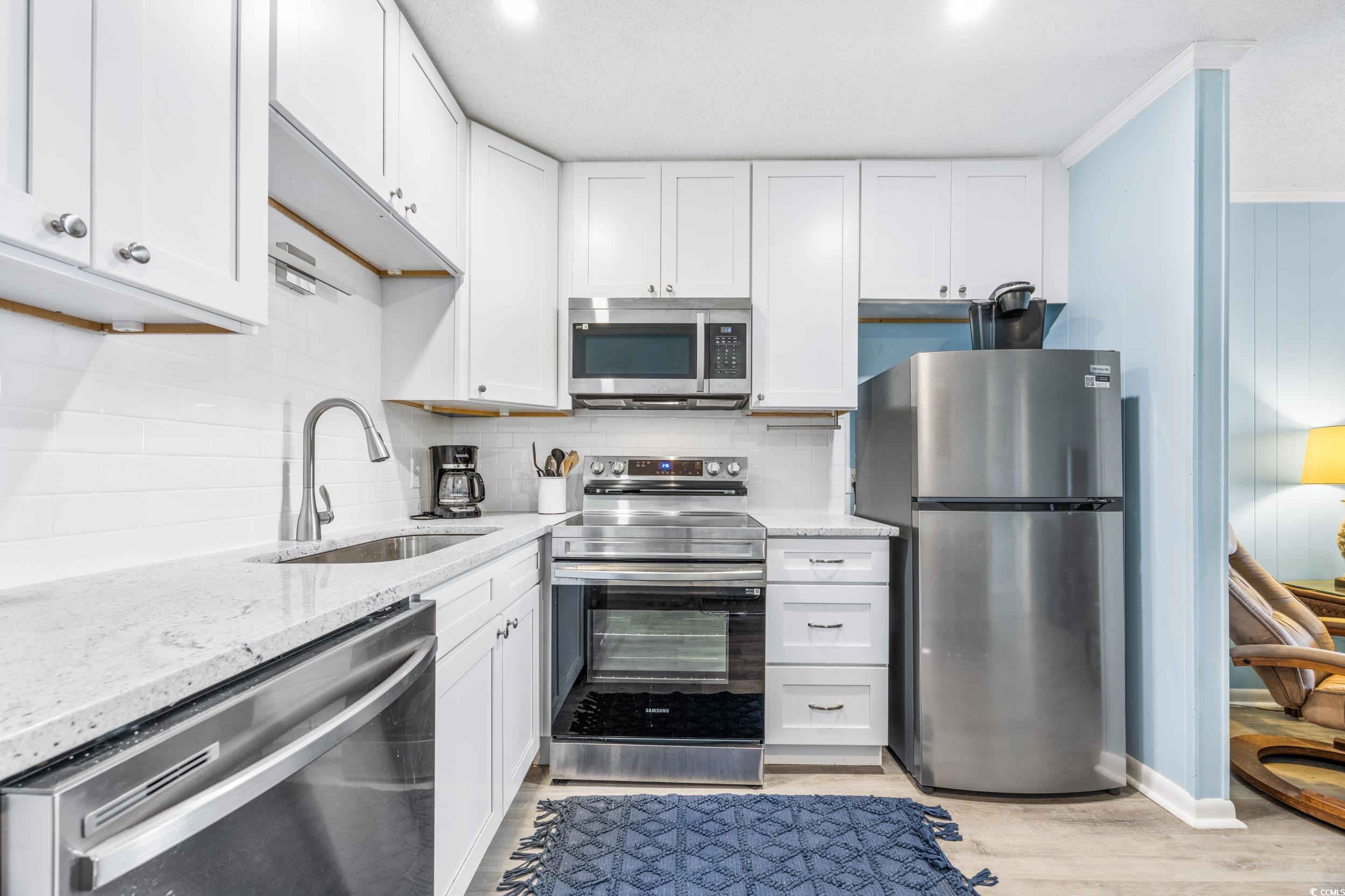 Come see this remodeled beauty in the heart of Cherry Grove! Fully furnished 2-bedroom, 2-bath condo at A Place at the Beach II. Brand new kitchen with recessed LED lighting, tons of space in the new 42? cabinets, new white tile backsplash and granite countertops, updated undermount sink with new faucet, new stainless appliances (still under warranty), fresh paint throughout, 2 full baths with updated vanities and push button sinks stoppers. Large primary en suite bedroom with updated lighting, surprising amount of storage, locking owners closet, updated LVP flooring throughout, new sliding doors to balcony with amazing views of the marsh. Recent rubber roof replacement and updated pool. 100 feet to the ocean, only a few blocks to the Cherry Grove Boat landing, Heritage Shores Nature Preserve, The Point, restaurants, and shopping.