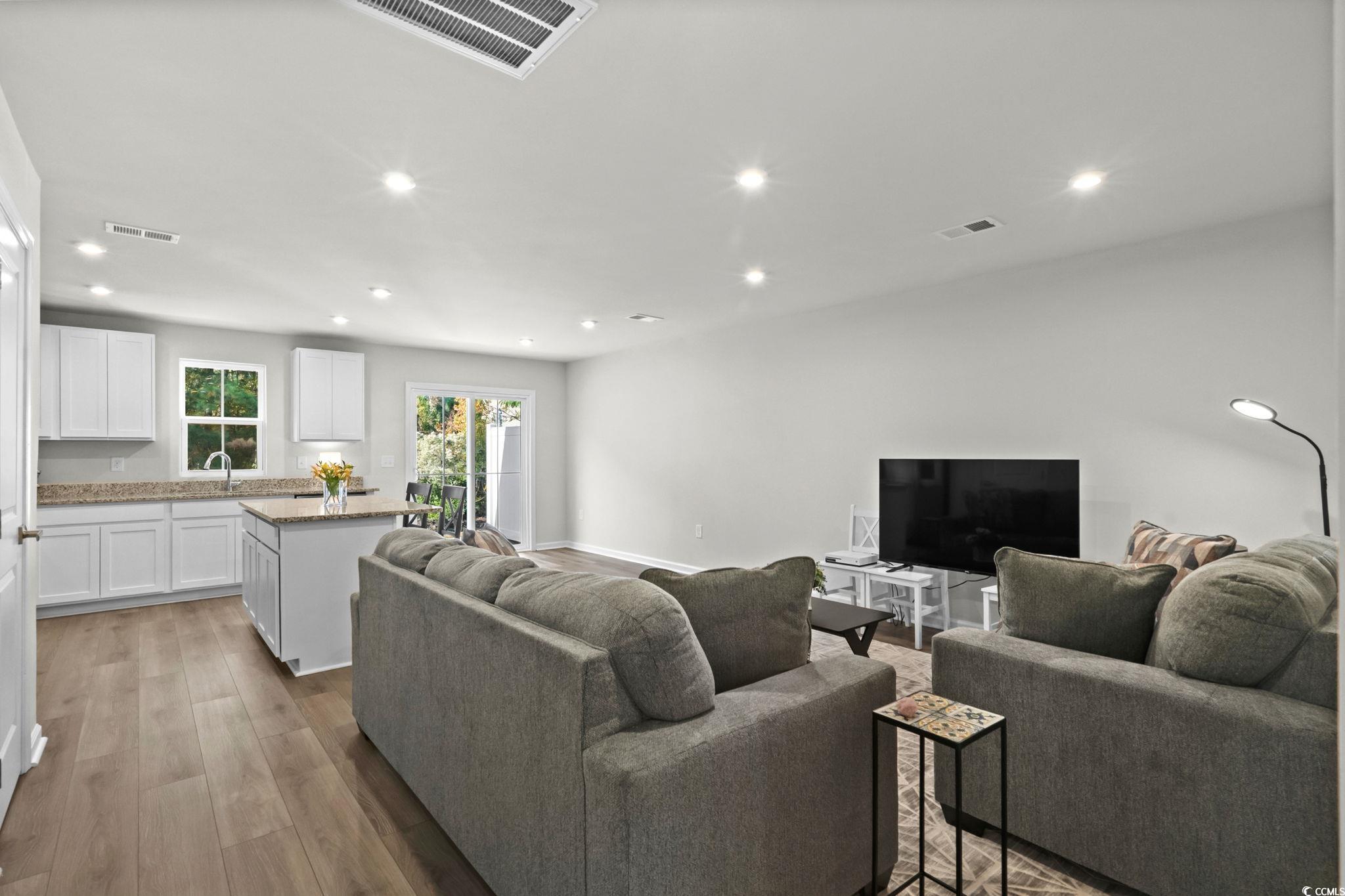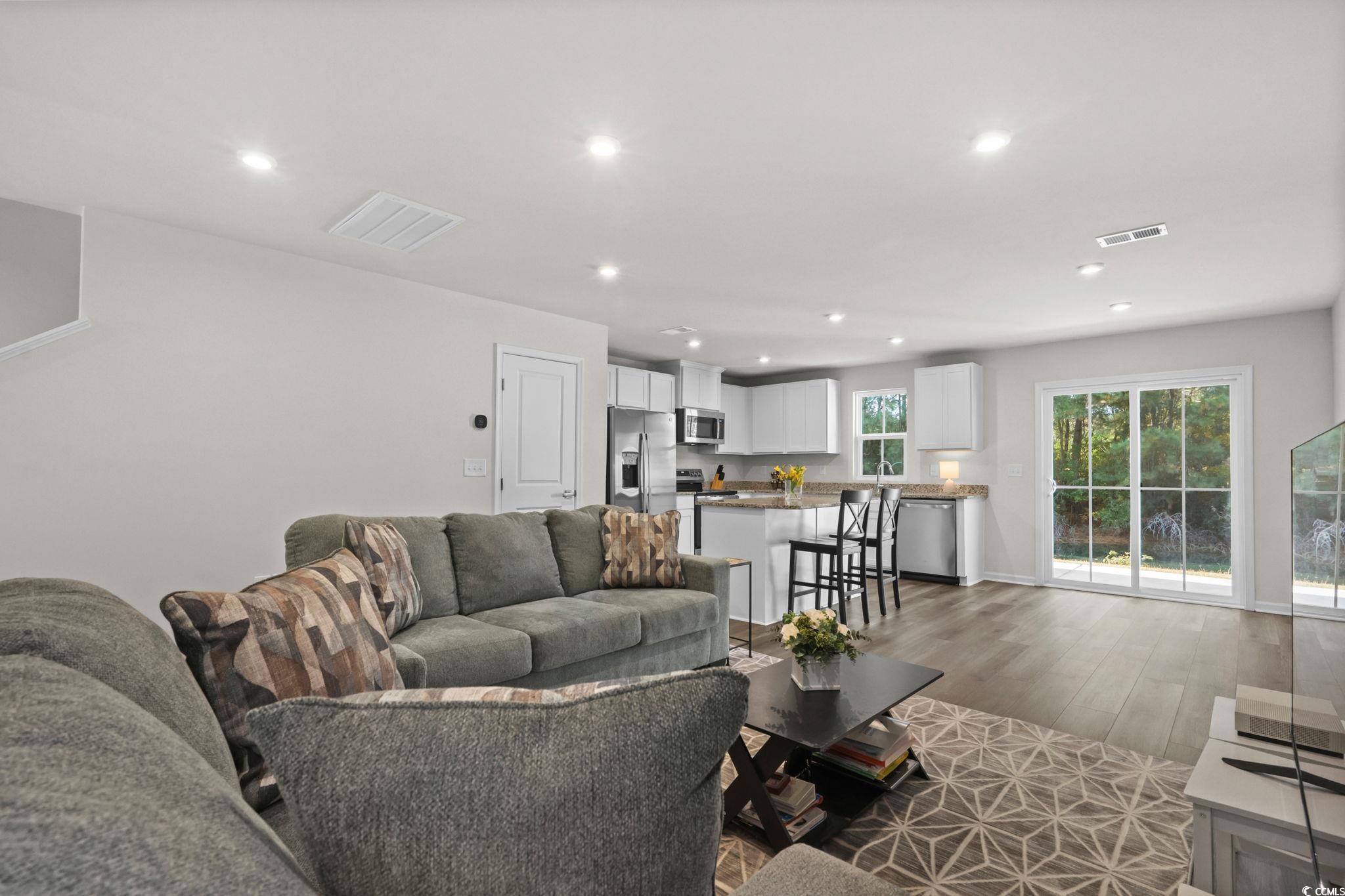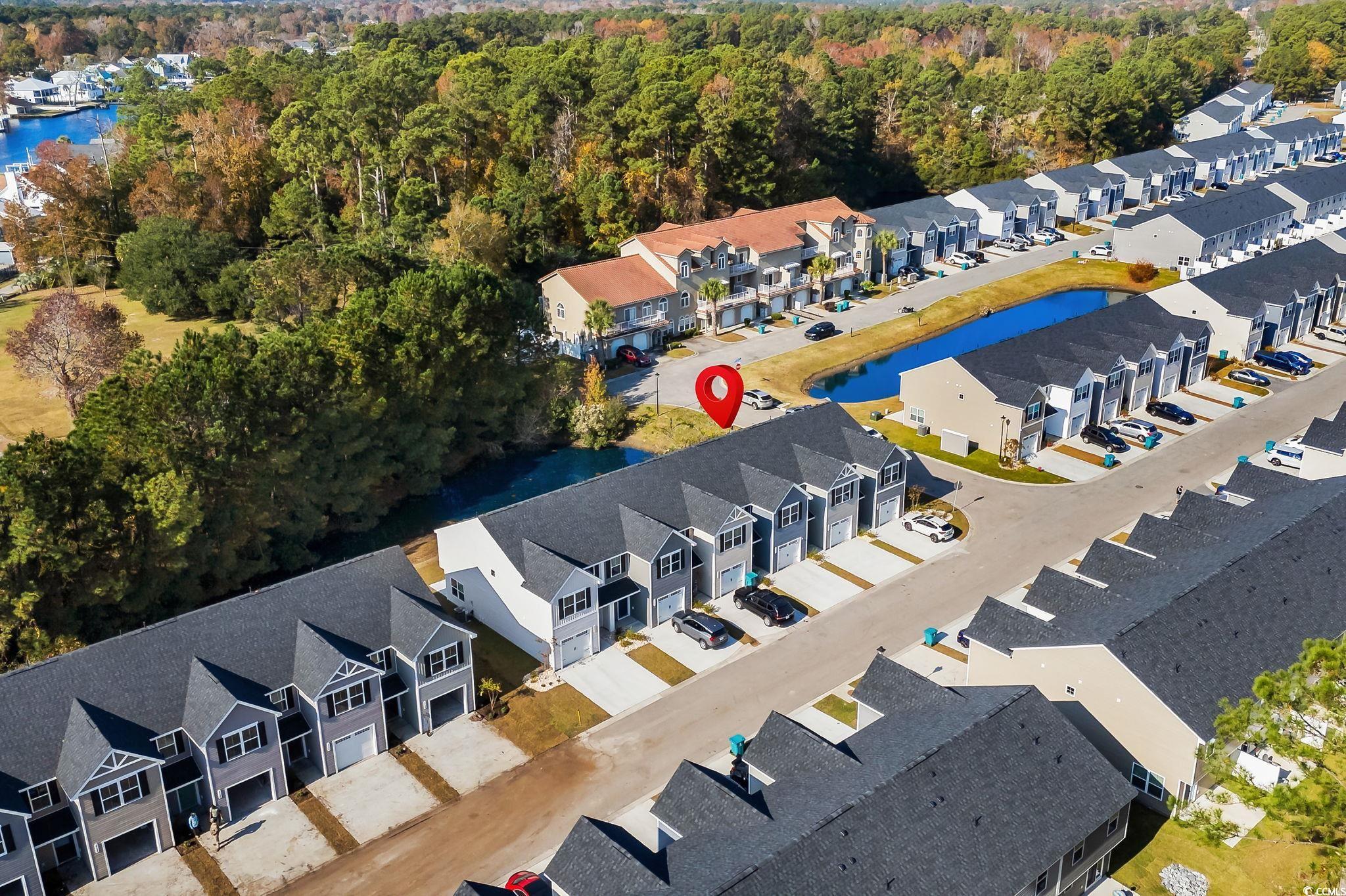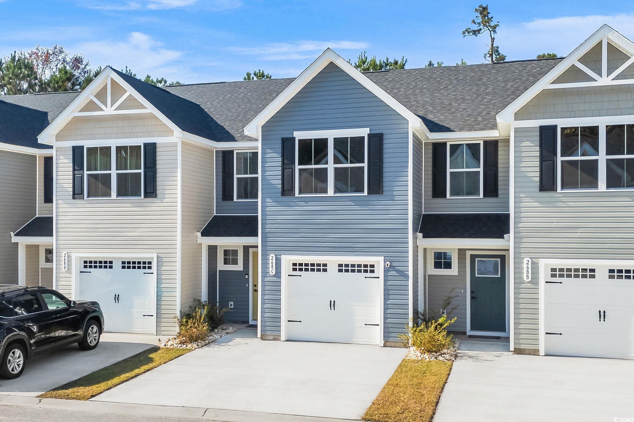 Welcome to 268 Christiana Lane, Unit C in Forestbrook Townhomes - a few months young, like-new new construction offering modern style, water views, and an unbeatable central location. Perfectly positioned on a pond and wooded-view lot, this spacious townhome-style floorplan features an inviting open-concept layout and todays most desired finishes. Step inside to find LVP flooring, high ceilings, and a beautifully designed kitchen complete with granite countertops, an expansive pantry, a large center island, and modern touches throughout. The living and dining areas offer excellent flow, opening to a private backyard setting with peaceful pond views, wooded backdrop, and a large concrete patio slab perfect for outdoor lounging. The first floor also features a convenient powder room and access to the one-car garage. Upstairs, youll find three generously sized bedrooms, a well-appointed full guest bath, and the impressive primary suite measuring approximately 15 x 12. The primary bedroom includes an enormous walk-in wardrobe closet with a window, plus a generous primary bath with double-sink vanity, linen closet, and a tub/shower combo. Residents of Forestbrook Townhomes enjoy a low-maintenance lifestyle with HOA services that include building insurance, landscaping, garbage collection, plus access to community amenities such as a playground and dog park. At the end of the neighborhood, explore scenic hiking trails that lead directly to the Intracoastal Waterway. Move-in ready and exceptionally maintained, this townhome offers the perfect blend of privacy, convenience, and modern comfort. Located in the highly sought-after Forestbrook area, youre just minutes from Coastal Grand Mall, gorgeous beaches, shopping, dining, and all the everyday conveniences of Myrtle Beachwhile still enjoying the tranquility of this tucked-away community. This one checks all the boxes - location, condition and value. Contact your agent today and schedule a showing!