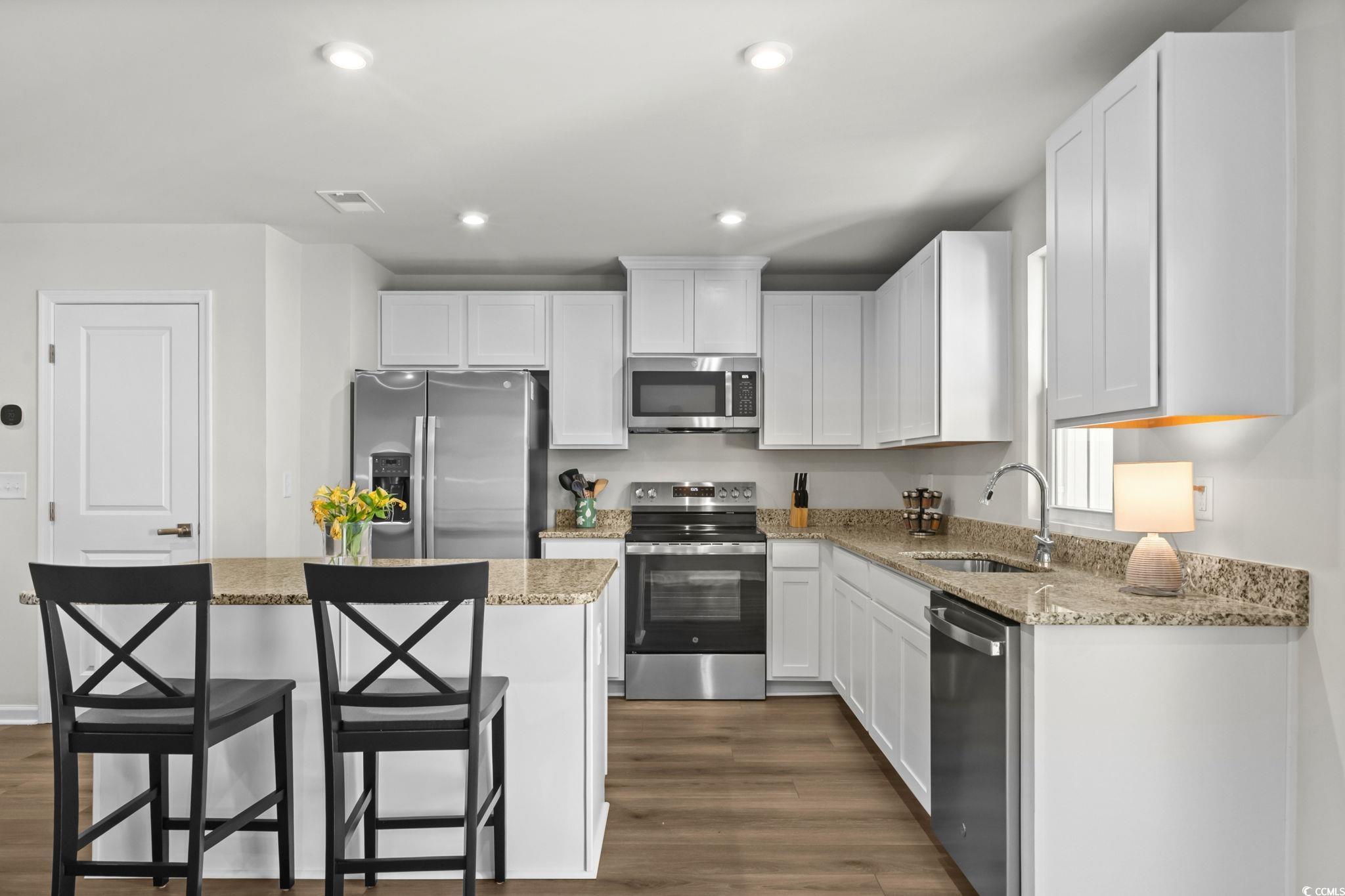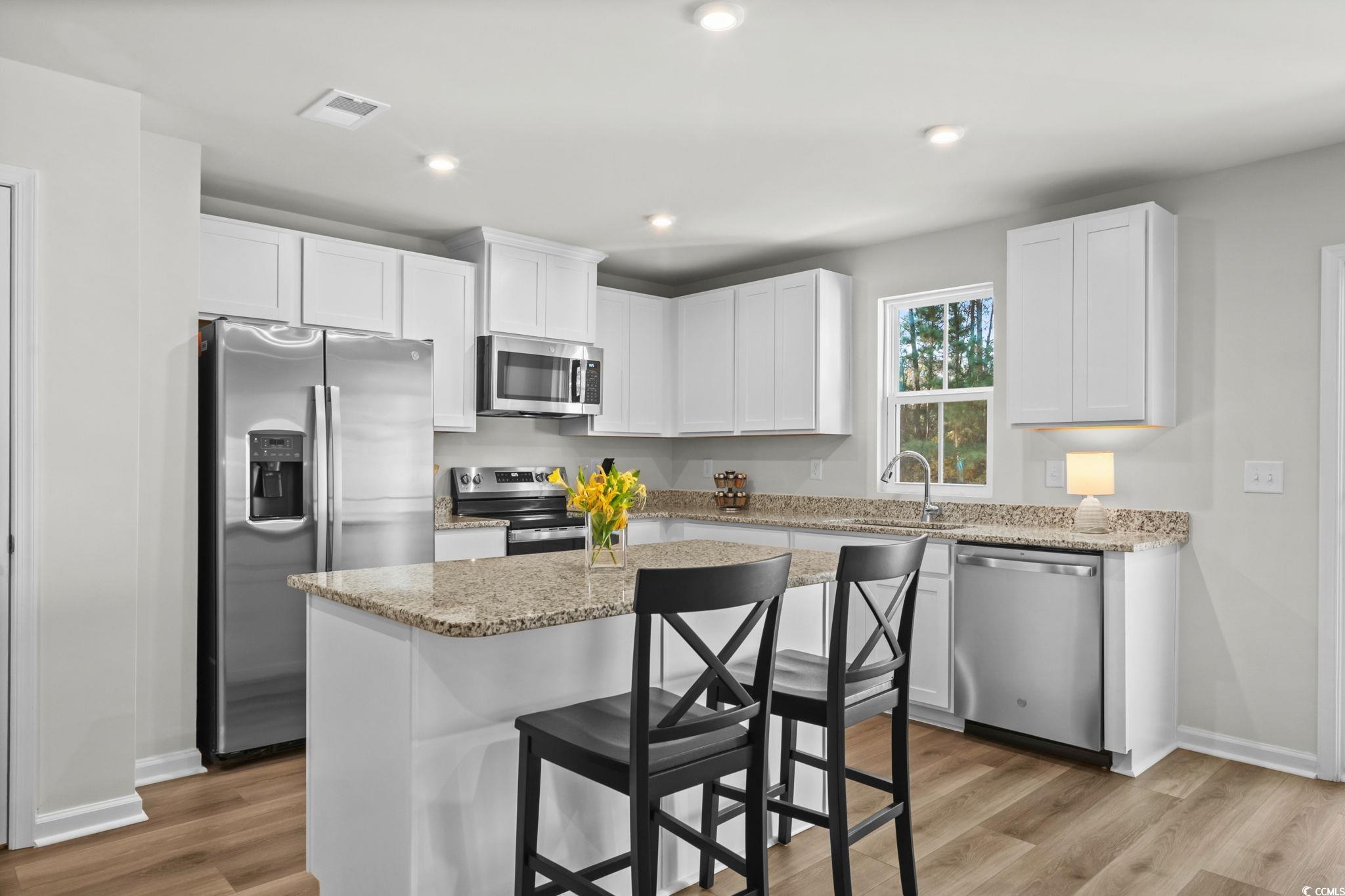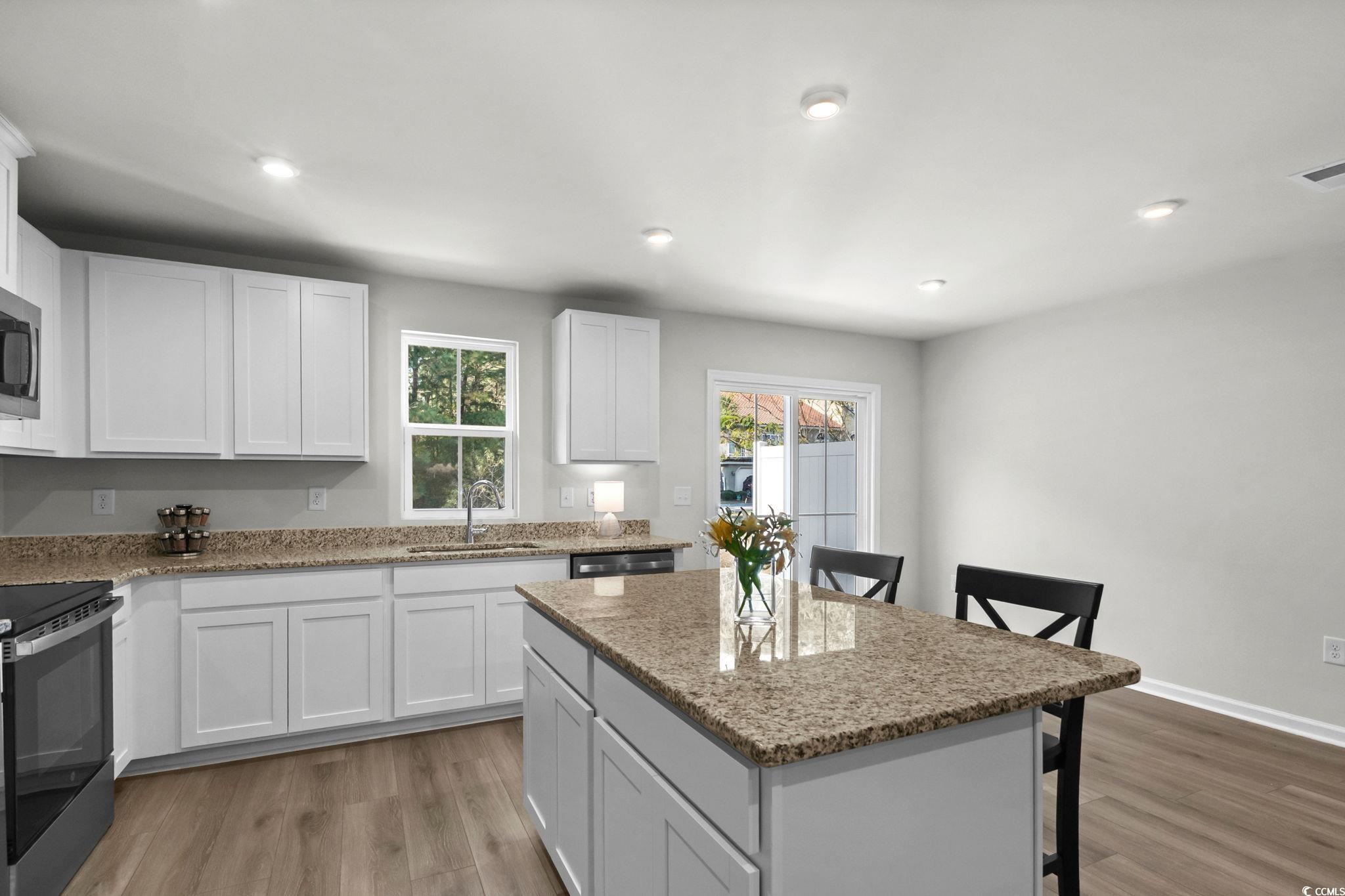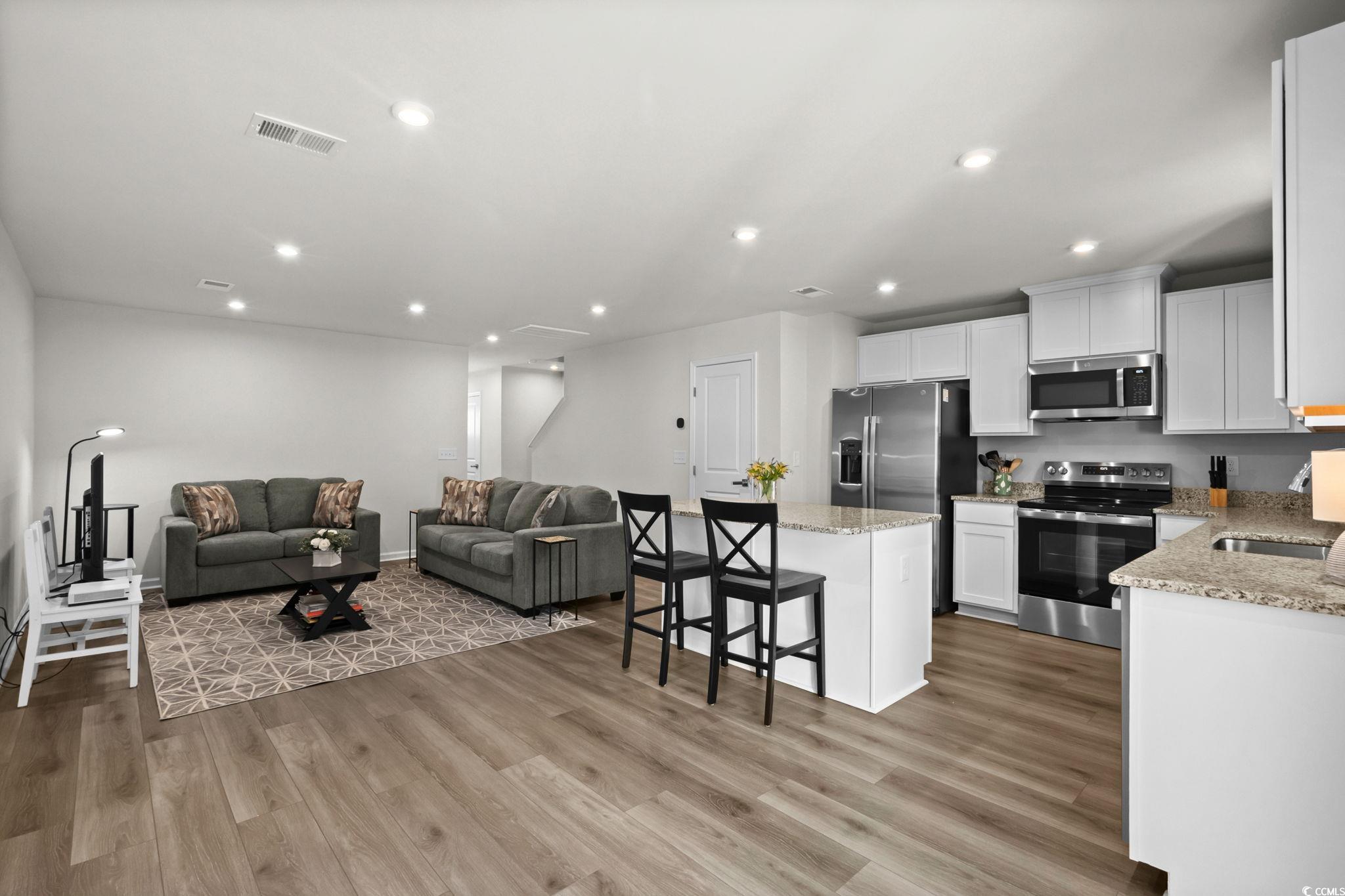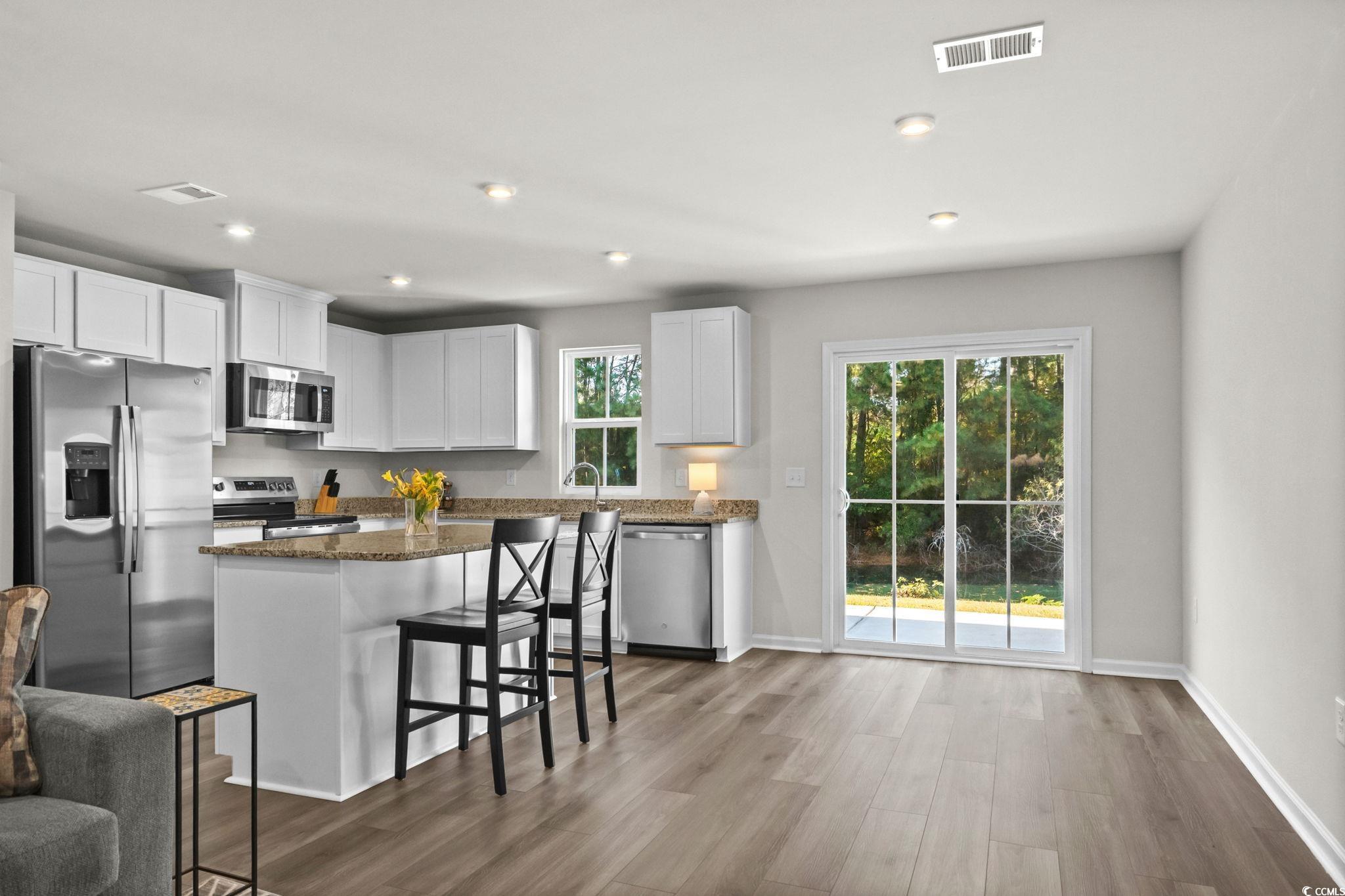 Welcome to 268 Christiana Lane, Unit C in Forestbrook Townhomes - a few months young, like-new new construction offering modern style, water views, and an unbeatable central location. Perfectly positioned on a pond and wooded-view lot, this spacious townhome-style floorplan features an inviting open-concept layout and todays most desired finishes. Step inside to find LVP flooring, high ceilings, and a beautifully designed kitchen complete with granite countertops, an expansive pantry, a large center island, and modern touches throughout. The living and dining areas offer excellent flow, opening to a private backyard setting with peaceful pond views, wooded backdrop, and a large concrete patio slab perfect for outdoor lounging. The first floor also features a convenient powder room and access to the one-car garage. Upstairs, youll find three generously sized bedrooms, a well-appointed full guest bath, and the impressive primary suite measuring approximately 15 x 12. The primary bedroom includes an enormous walk-in wardrobe closet with a window, plus a generous primary bath with double-sink vanity, linen closet, and a tub/shower combo. Residents of Forestbrook Townhomes enjoy a low-maintenance lifestyle with HOA services that include building insurance, landscaping, garbage collection, plus access to community amenities such as a playground and dog park. At the end of the neighborhood, explore scenic hiking trails that lead directly to the Intracoastal Waterway. Move-in ready and exceptionally maintained, this townhome offers the perfect blend of privacy, convenience, and modern comfort. Located in the highly sought-after Forestbrook area, youre just minutes from Coastal Grand Mall, gorgeous beaches, shopping, dining, and all the everyday conveniences of Myrtle Beachwhile still enjoying the tranquility of this tucked-away community. This one checks all the boxes - location, condition and value. Contact your agent today and schedule a showing!