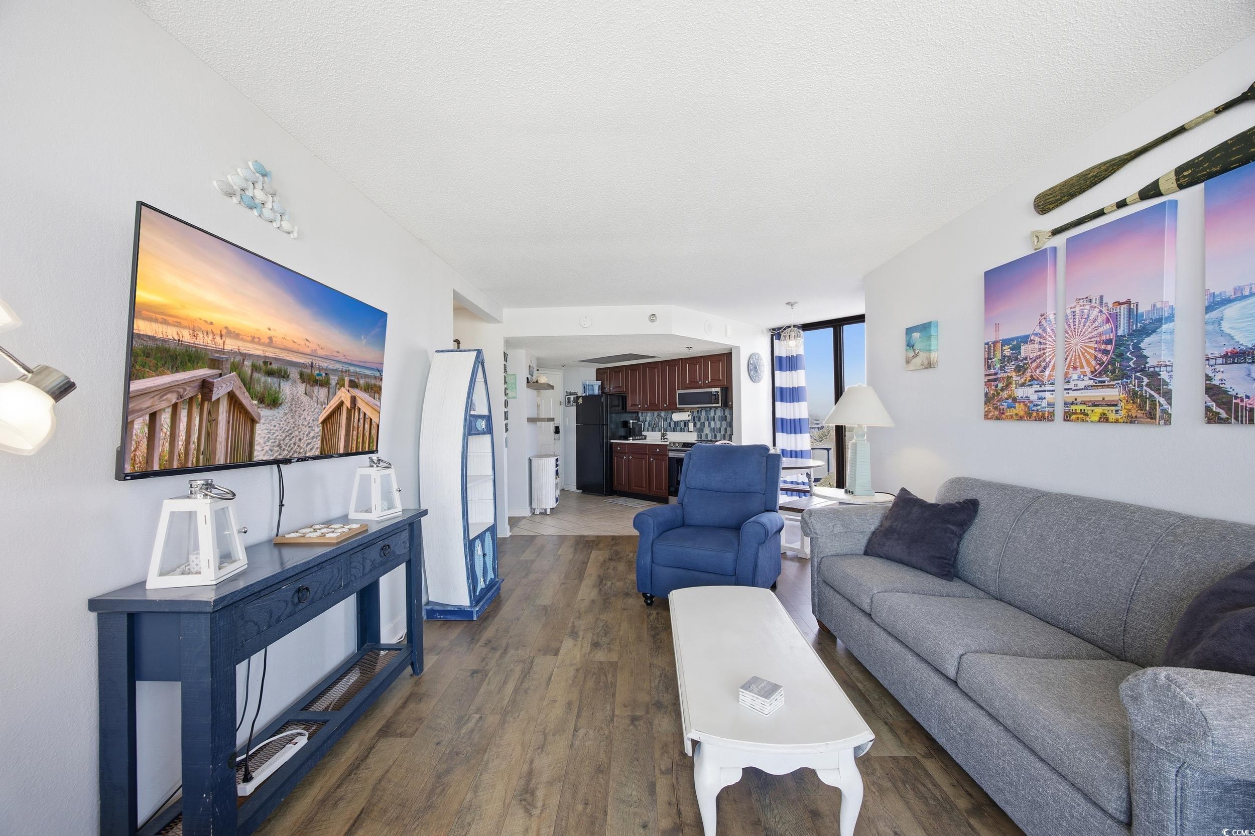 Welcome to your coastal retreat at The Patricia Grand Resort! This beautiful 1-bedroom, 1-bath condo on the 7th floor offers sweeping ocean and city views, perfectly framed by a spacious balcony that extends from the living room to the bedroom, ideal for relaxing mornings and unforgettable sunrises. Inside, you'll find an inviting open floor plan with charming nautical dcor throughout. The living room features durable engineered hard flooring and a mounted TV, with sliding doors that lead right onto the balcony. The bedroom includes two comfortable beds and its own TV, making the space perfect for both personal use and rental guests. The kitchen is beautifully appointed with granite countertops, stainless steel appliances (including a microwave and stove), a stylish blue-tiled backsplash, and tile flooring. A cozy breakfast nook offers peaceful views of the city from within the unit. This condo is being sold fully furnished and is pet-friendly for pets up to 20 lbs, an added perk for travelers and a smart advantage for investors looking to attract more bookings. Investors, this beauty has 5-star reviews on Airbnb. The Patricia Grand offers a wide range of amenities, including indoor and outdoor pools, a lazy river, a poolside bar, a fitness center, and even a Starbucks conveniently located on the property. Guests and owners can also enjoy Indigo Coastal Kitchen, the on-site oceanfront restaurant known for its top-notch breakfast buffet and relaxed evening dining. The resort is also ideally located just minutes from top Myrtle Beach attractions such as Broadway at the Beach, the SkyWheel, and the Myrtle Beach International Airport, making it an exceptional choice for vacationers and owners alike. Whether you're seeking a second home, a primary residence, or a strong investment opportunity, this condo offers the perfect blend of comfort, convenience, and coastal charm.