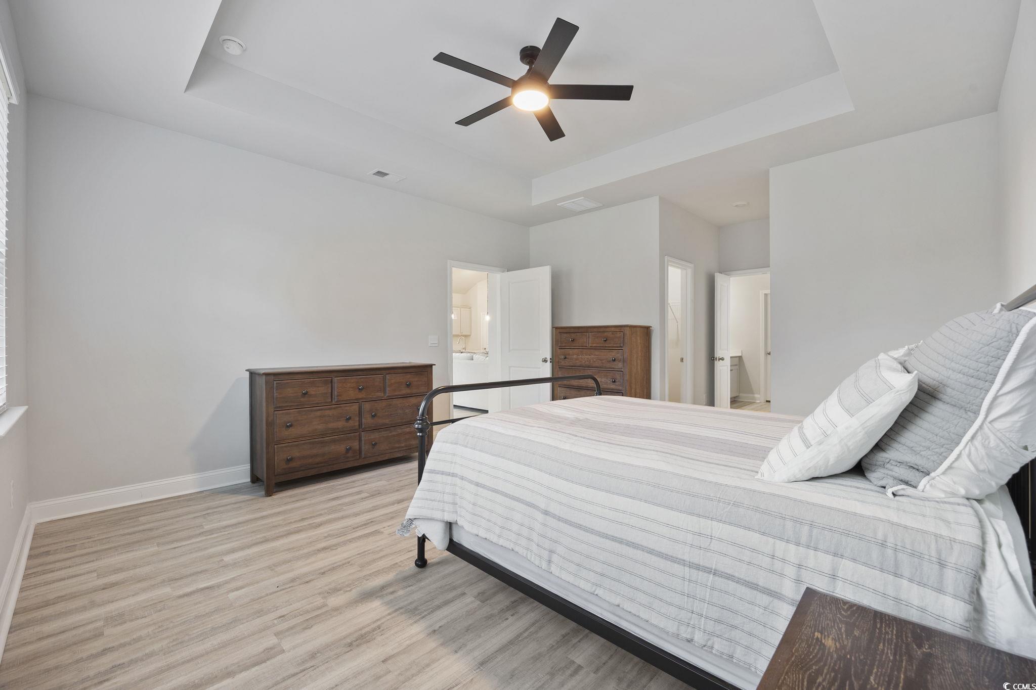 PrimaryBedroom: TrayCeilings, CeilingFans, MainLevelMaster, WalkInClosets