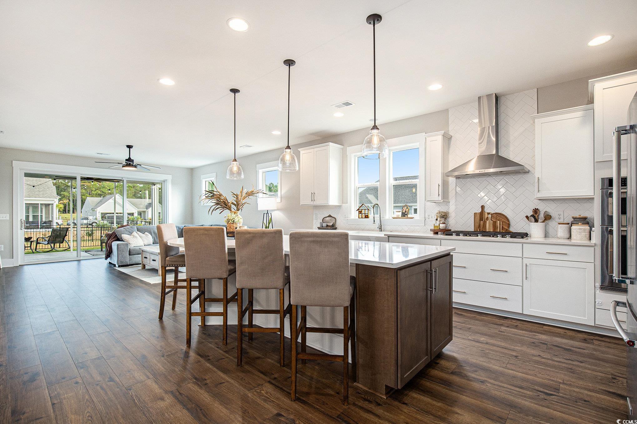 This stunning 4 bed 3 bath home located in the highly sought after Berkshire Forest community is the desirable Martin Ray plan and just built in 2023 with fantastic upgrades throughout! Flowing open floor plan is enhanced with hardwood flooring in the living, dining and kitchen areas and features French doors leading to the office off the foyer, a spacious living room with ceiling fan, fireplace and triple slider leading to the screen porch, and a formal dining area accented with wainscot wall panels. The impressive gourmet kitchen is a chef's delight with KitchenAid stainless appliances, abundant white cabinetry, quartz counters, recessed lighting, natural gas cooking with range hood, a farmhouse sink, tile backsplash, a butler prep area and walk in pantry with extra shelving, and a breakfast bar. The first-floor master suite is a luxurious retreat with tray ceilings and crown molding, ceiling fan, a triple window showcasing backyard views, a large walk-in closet, and bath with double sink vanity, tub and separate 5' tiled shower with seat. Two generous sized bedrooms with ceiling fans and a second full bath with vanity and tub/shower and a laundry room with front load washer and dryer and shelving complete the first floor. Upstairs, the loft area with double ceiling fans is the perfect spot for a playroom or media room and the fourth bedroom with ceiling fan, walk in closet and full bath with vanity and tub/shower is ideal as a guest suite. An additional great feature is the large walk in storage closet just off the upstairs hall which could be utilized in so many ways. The expansive screened porch, just off the living room, has a 72"" aluminum blade ceiling fan and blends indoor and outdoor living and provides a quiet spot to savor your morning coffee, favorite book or gather with friends and family. Outside, your kids and pets will love the fenced yard with double gates, and a nice sized 10' x 12' patio has plenty of space for grilling and dining al fresco. In addition, the home also has a convenient built-in drop zone, gutters, a Nest doorbell, 2 Nest thermostats and 2 Nest Smoke and CO2 alarms and an oversized two car garage with 4' extension, extra outlets, and walk-up access to floored attic storage. The resort style amenities at Berkshire Forest are superb and include a clubhouse, fitness center, 2 outdoor pools, lazy river, a hot tub, picnic and grilling areas, 32-acre private lake for non-motorized boats, fishing dock, walking trail, basketball, tennis, bocce and pickleball, a fire pit area and a dog park. There are also weekly activities and events throughout the year. Located in an award-winning school district with easy access to Highways 501 and 31and close to shopping, including Tanger Outlets, exceptional dining options, golf courses, medical facilities, the airport, entertainment and attractions plus you are just minutes from the beach and everything the Grand Strand has to offer. If you are looking for your dream home, your search ends here! Schedule your private showing today to discover everything this lovely home has to offer!