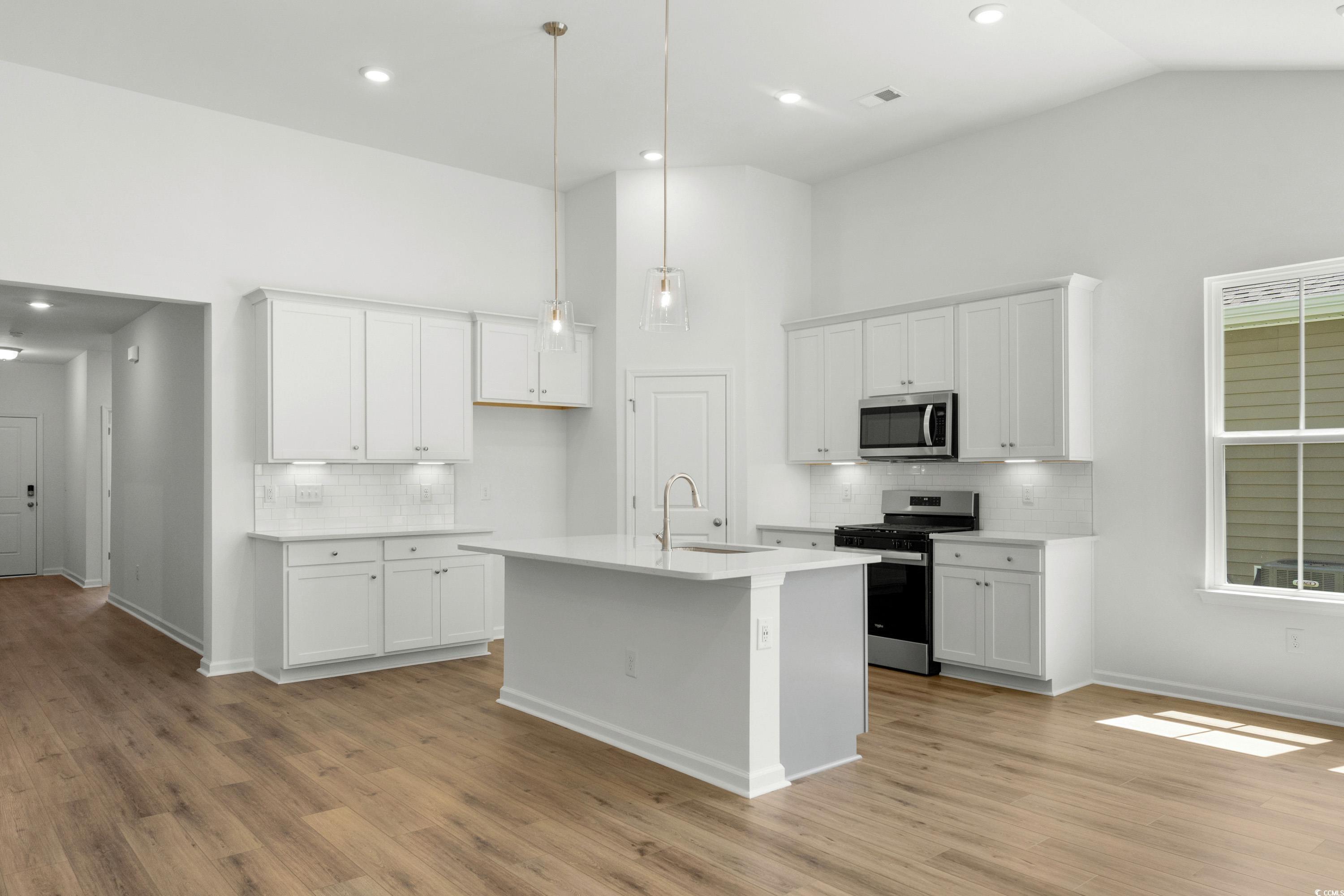 Ready January 2026! This beautiful single story Avondale floor plan is light, bright, and airy, thanks to the 12-foot gathering room ceiling and 6-foot windows. As the winter months approach, you can warm up in front of this home's electric fireplace with adjustable heat and temperature controls, perfect for those cool southern evenings. The primary suite showcases a tray ceiling, additional windows, and flows through to the ensuite bathroom, which has a walk in tiled shower, and two walk in closets. Bedrooms two and three have both been expanded to provide extra living space. The kitchen is equipped with quartz countertops, 42-inch cabinets with crown molding, pendant lights over the island, subway tile backsplash, an extra large walk in pantry, and stainless steel appliances. The home is fitted with a high quality LVP throughout; no carpet! Enjoy your evenings out back on the large extended covered porch. The Bluffs at Sun Colony is also a natural gas community, and each home comes with a gas operated furnace, stove, and tankless hot water heater. Come visit The Bluffs at Sun Colony, a hidden gem of the Grand Strand, this home provides a private setting just 10 minutes from Cherry Grove Pier. Reach out to schedule a showing today! ***Photos are for marketing purposes only. Actual structural features, design features, and colors may vary.***